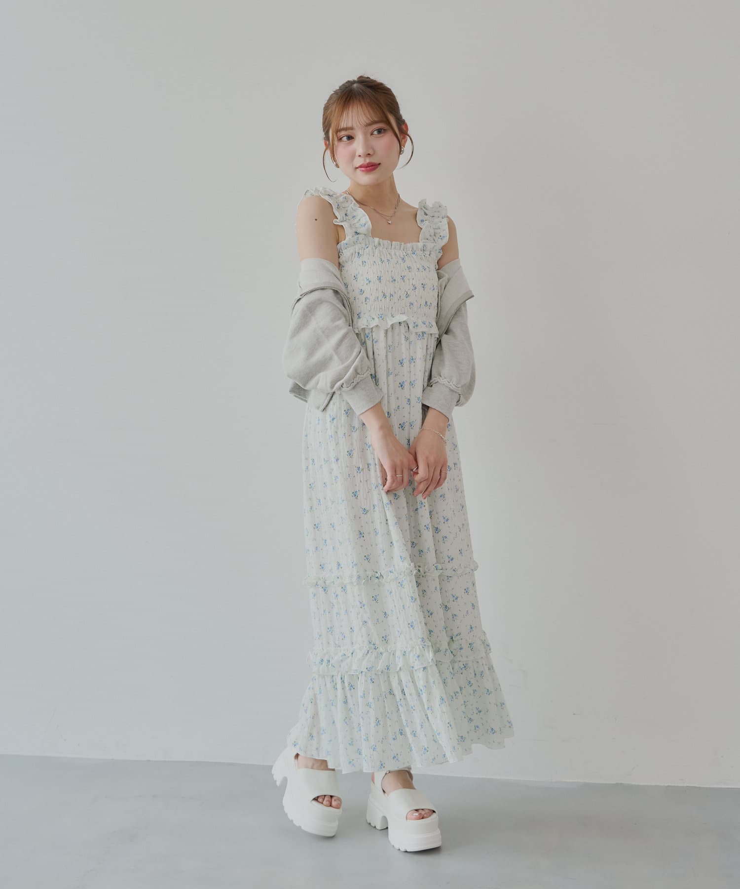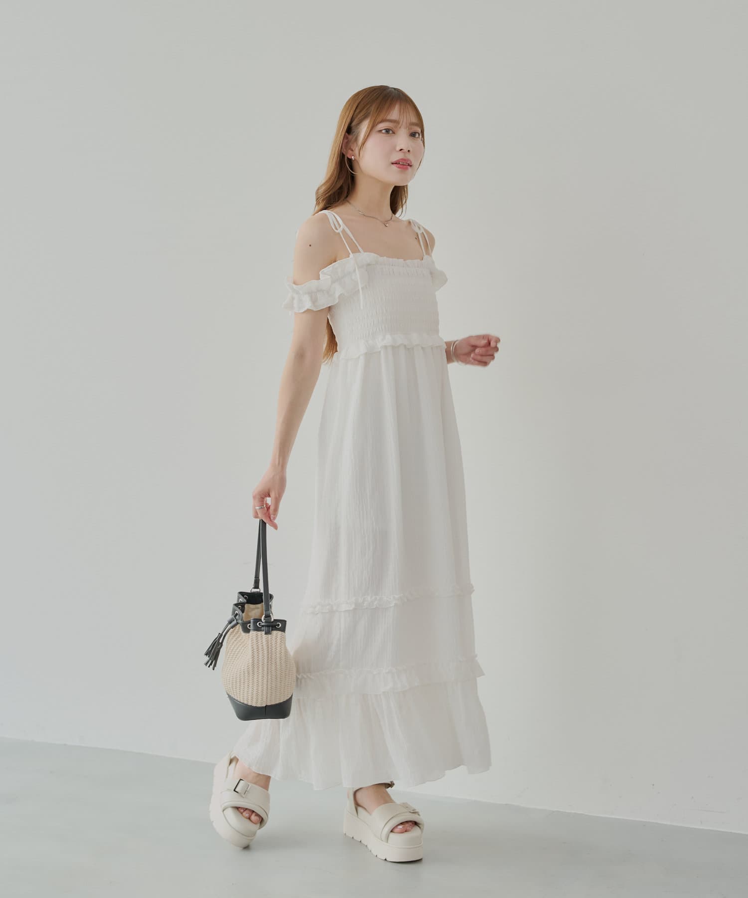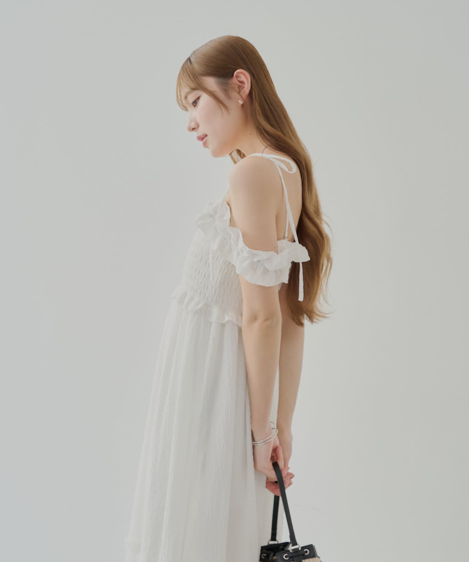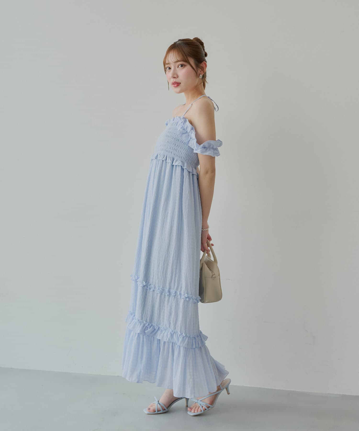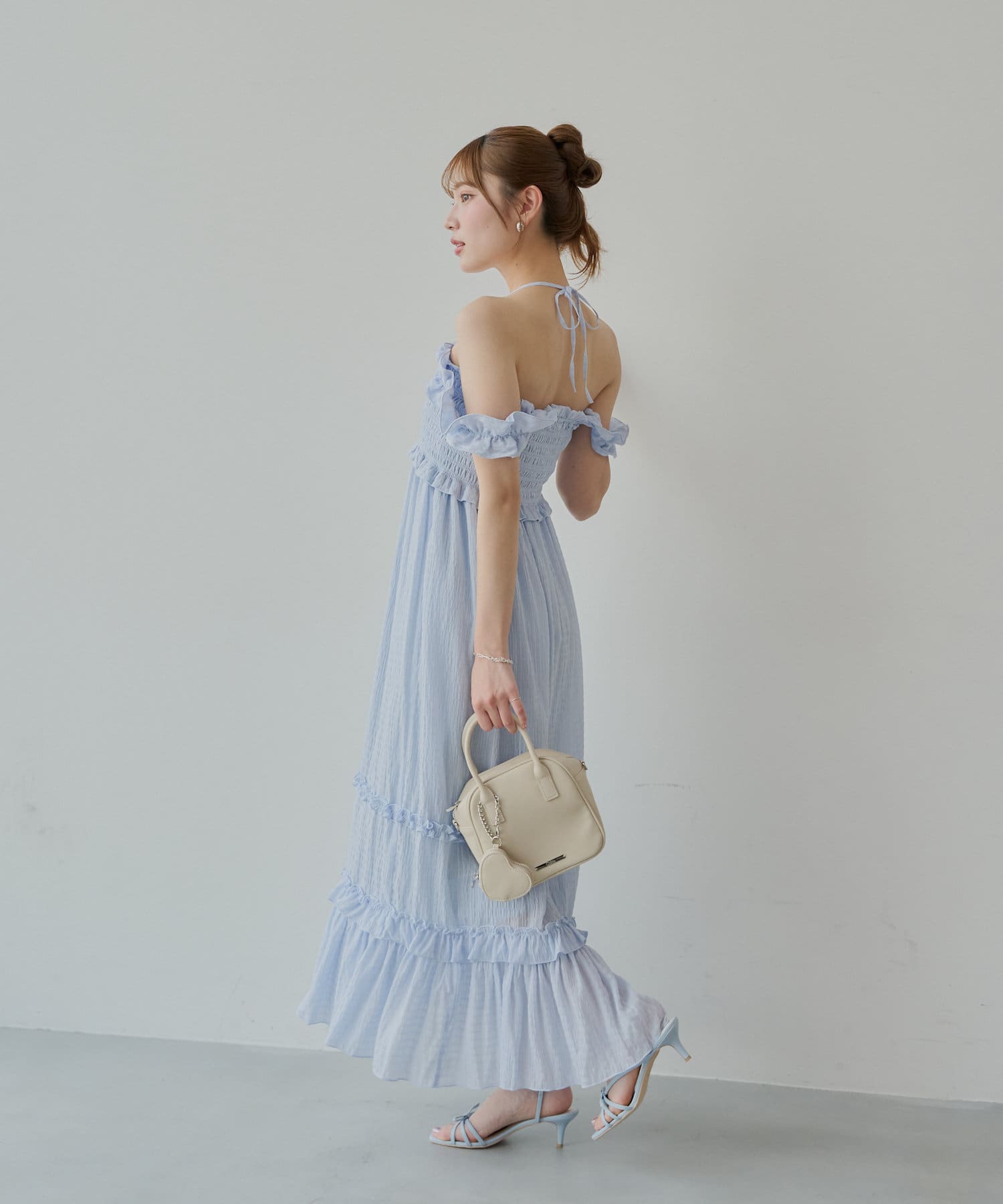 ・一枚で映えるワンピースなので小物やアクセを使ってお楽しみいただけます。