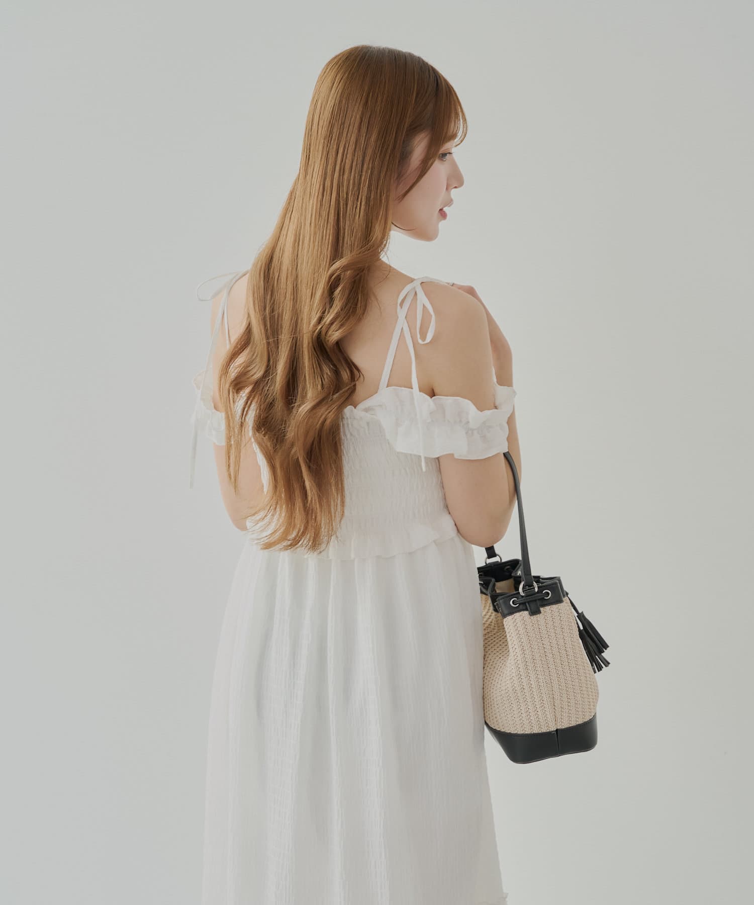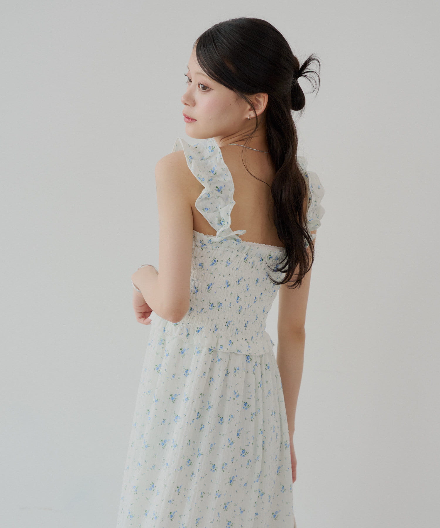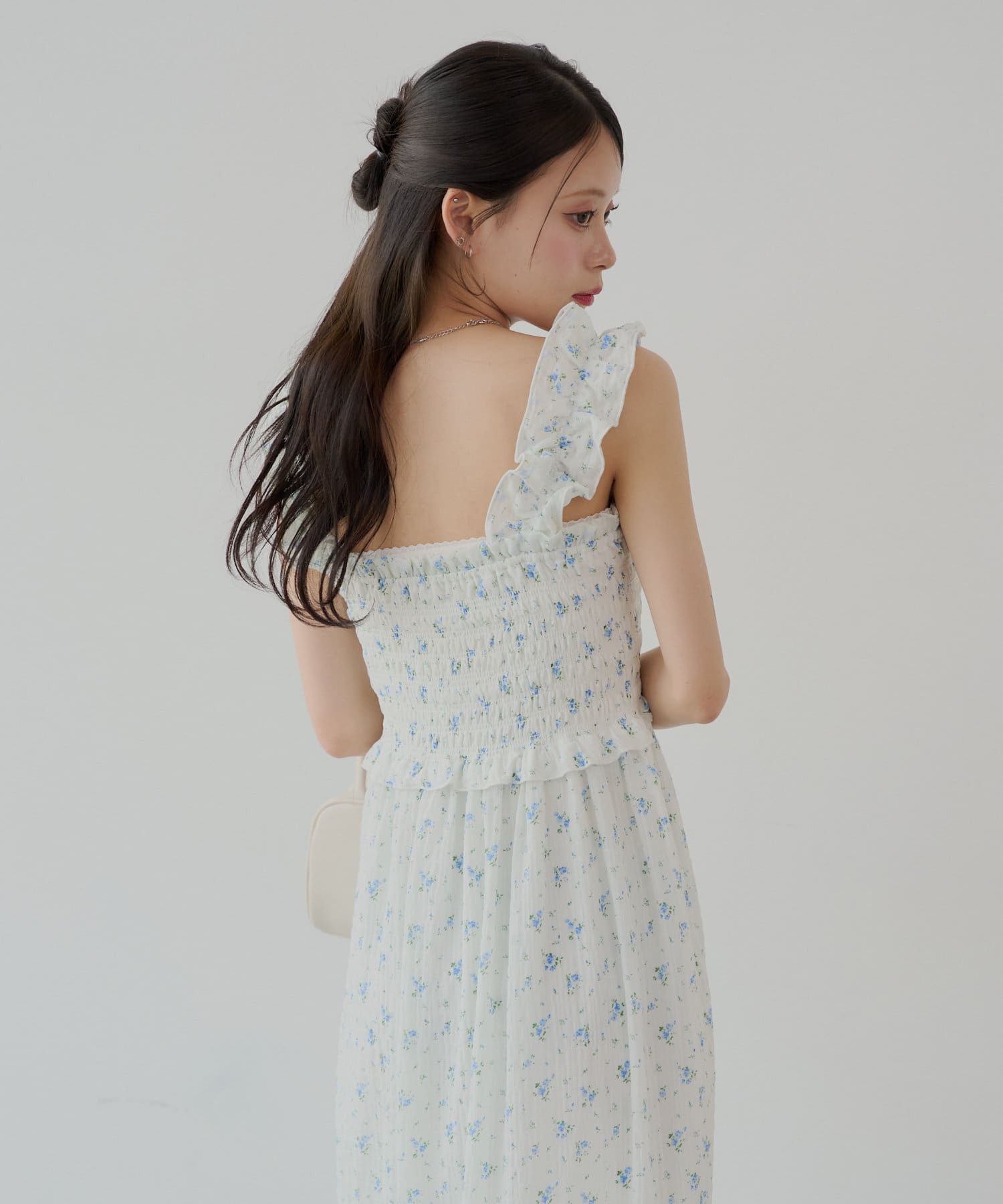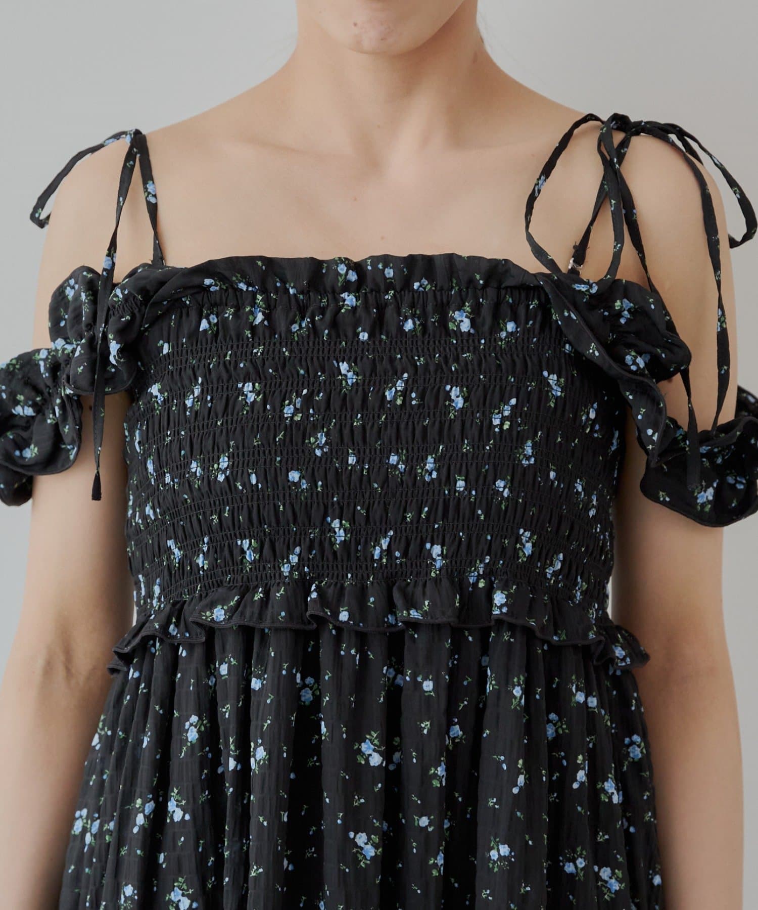 ・肩紐のリボンは長さ調節可能で、取り外しもできます。首の後ろで結んで着るのも可愛くておすすめです。