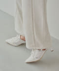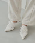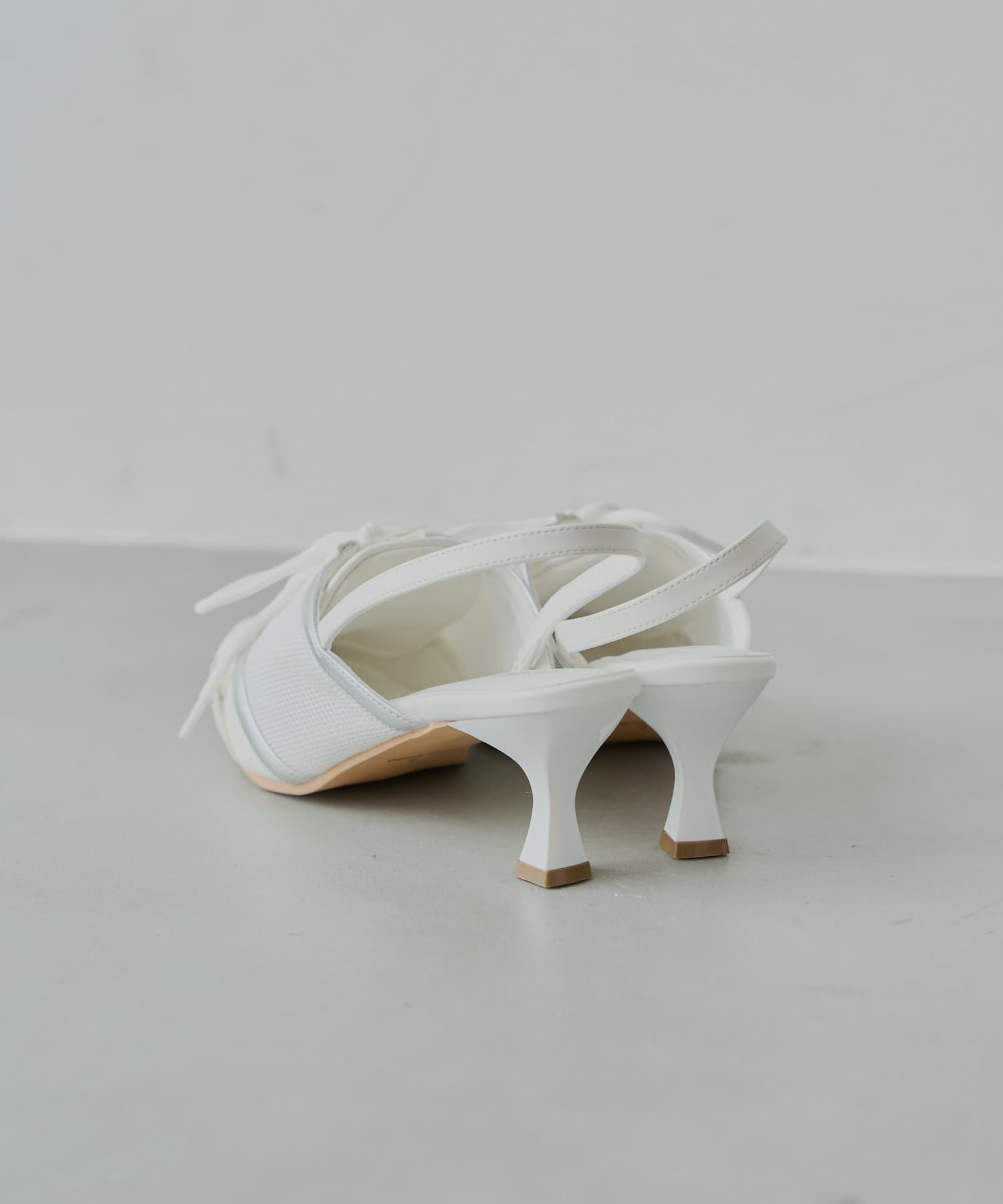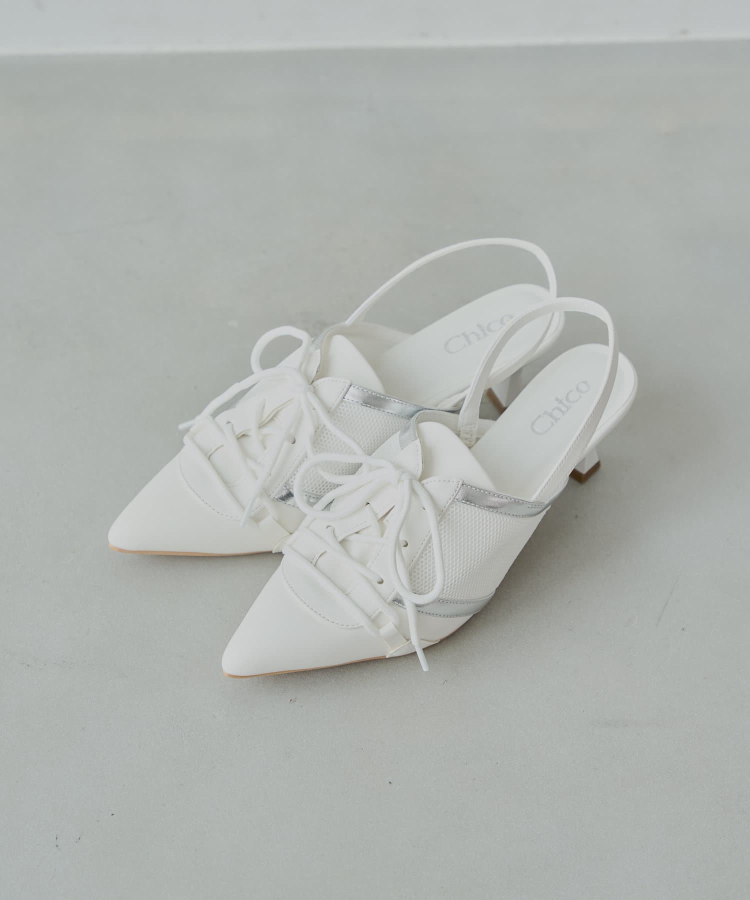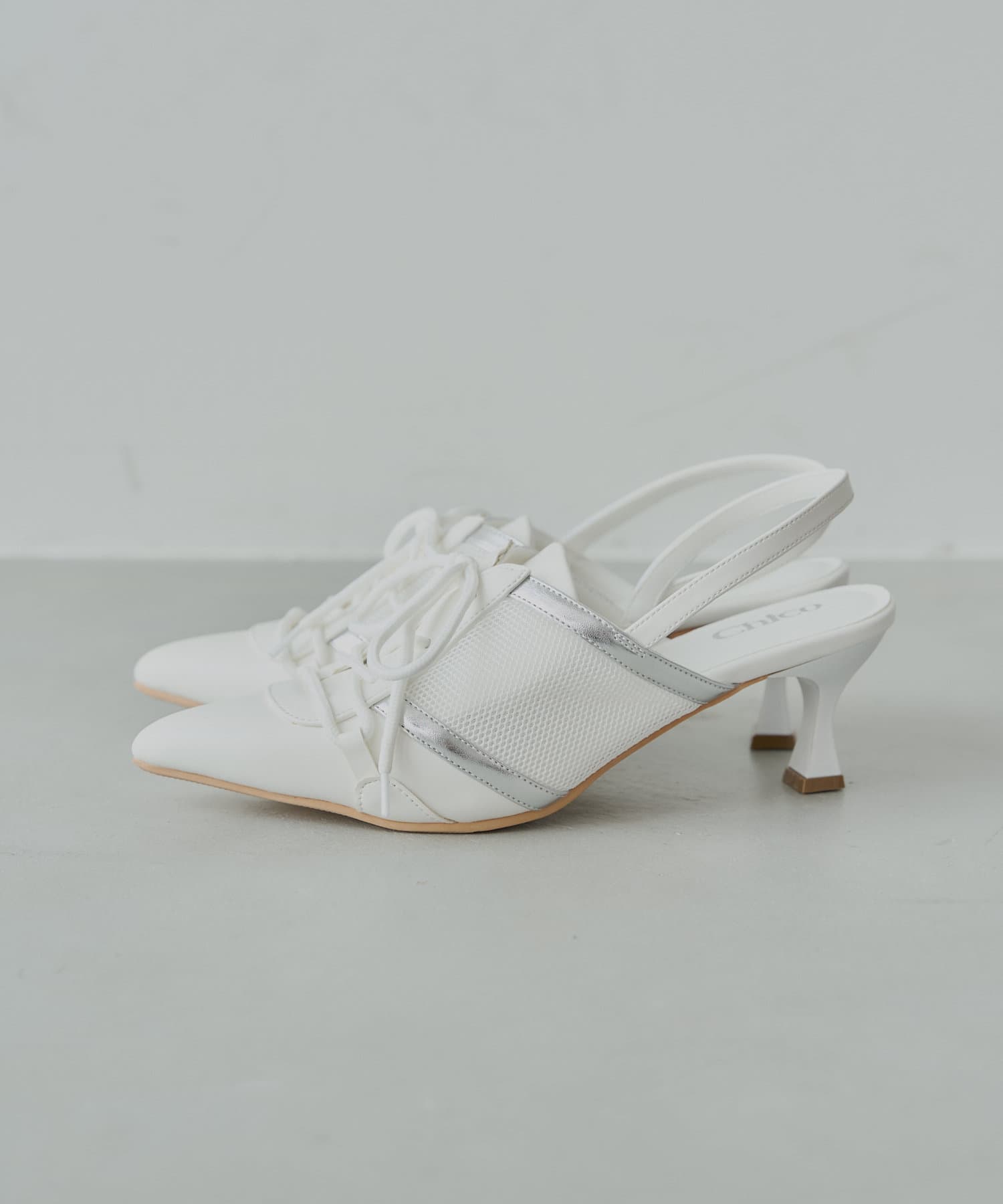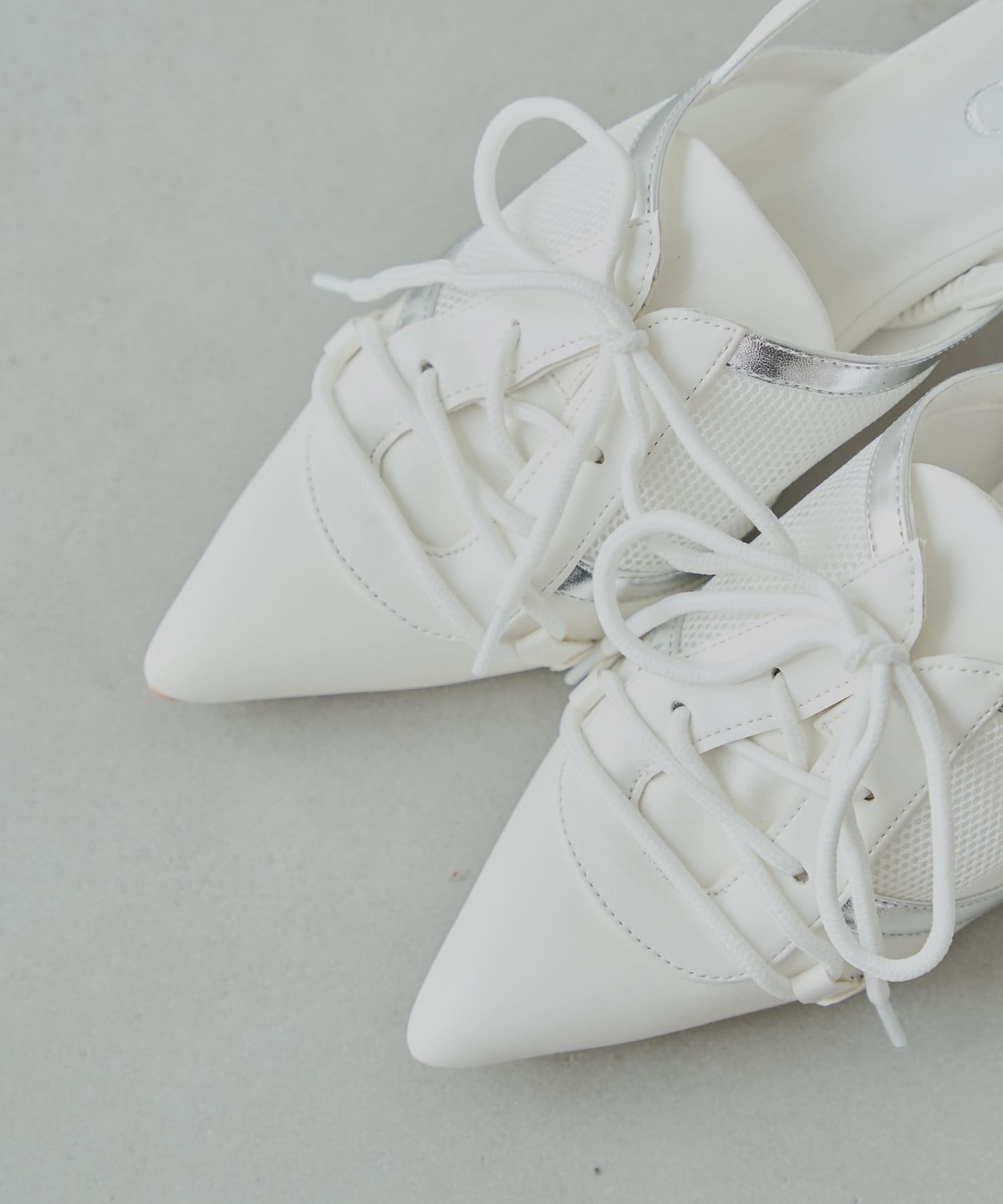 ・レースアップデザインとポインテッドトゥが、女性らしい上品さを演出してくれます。