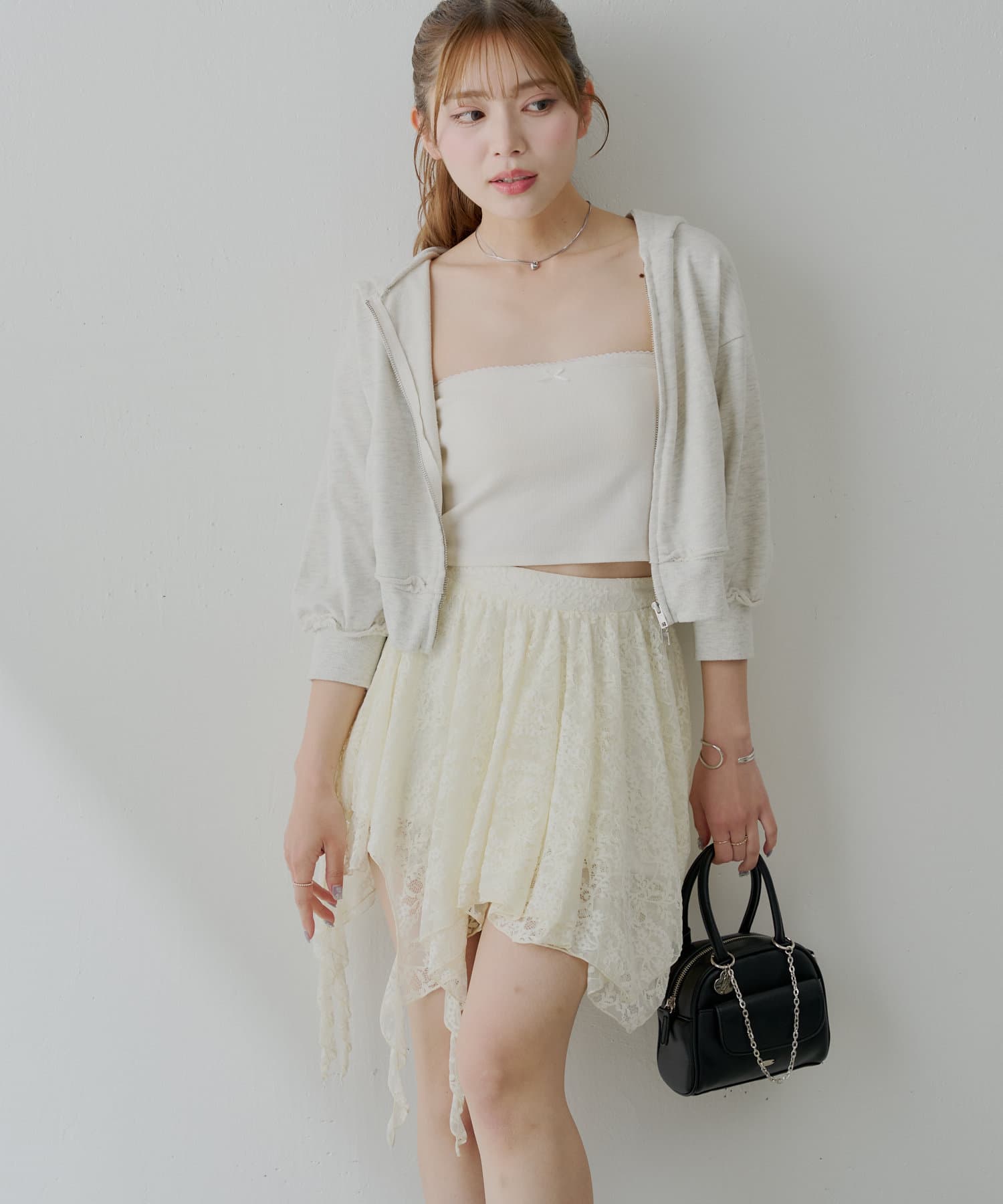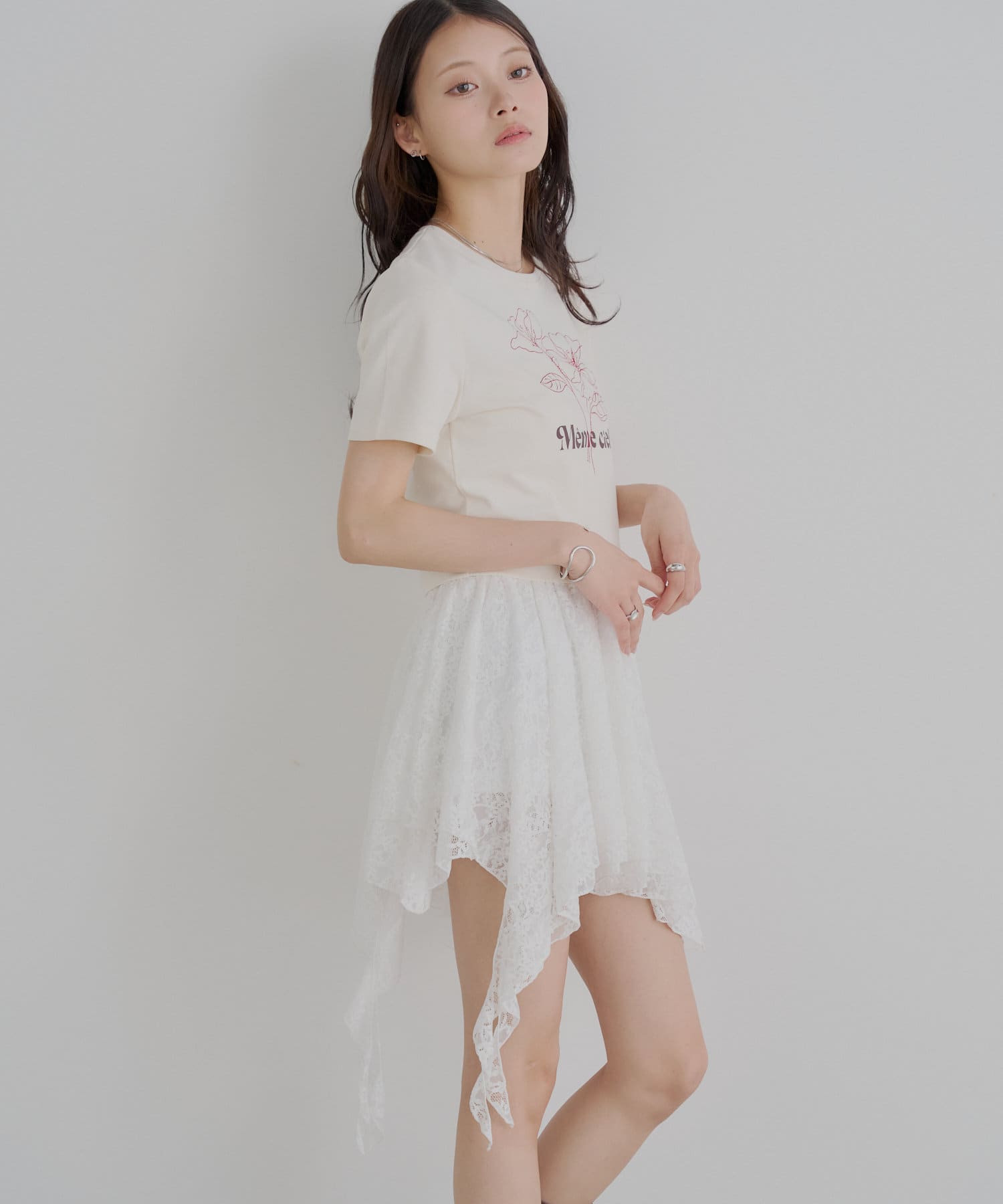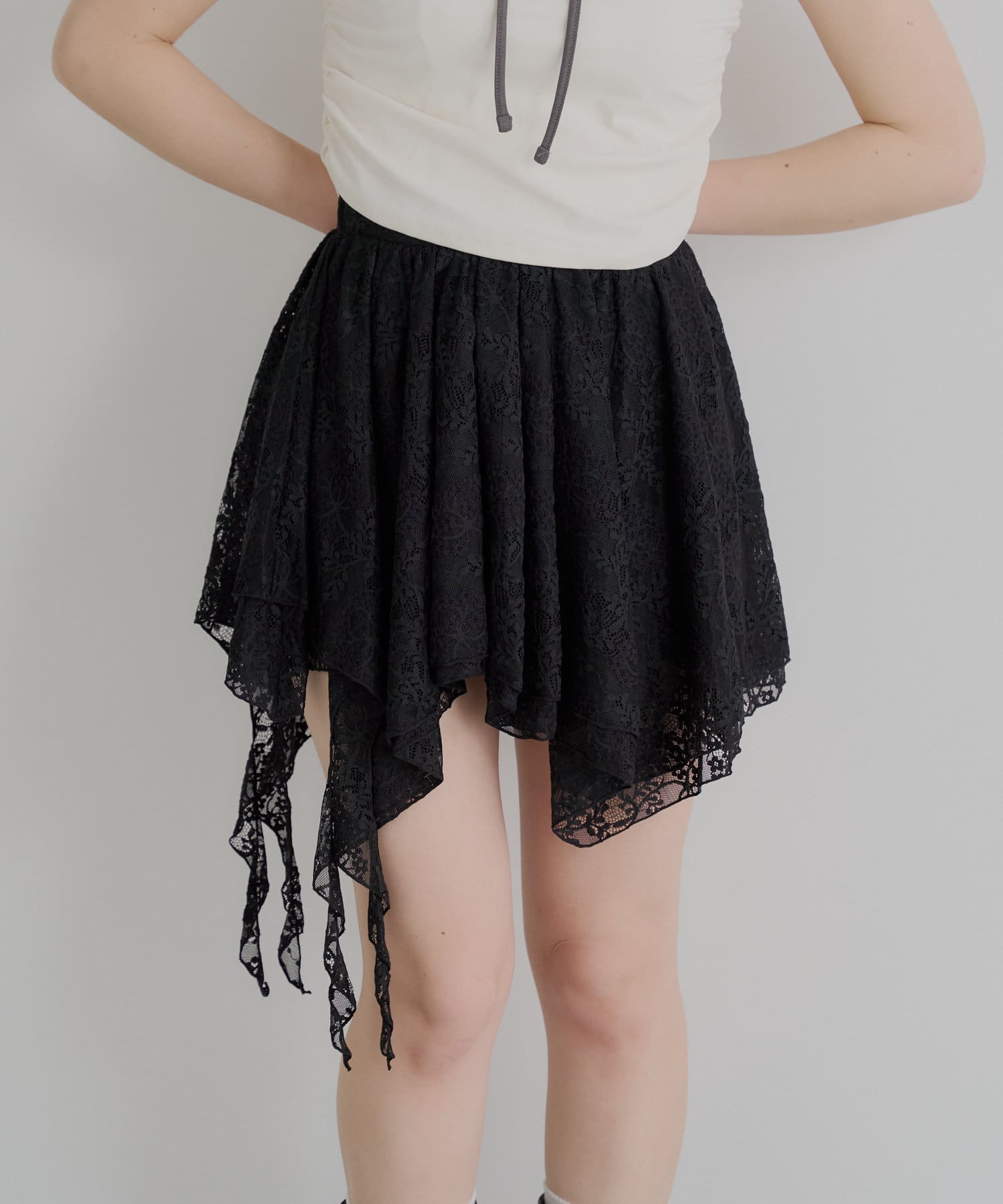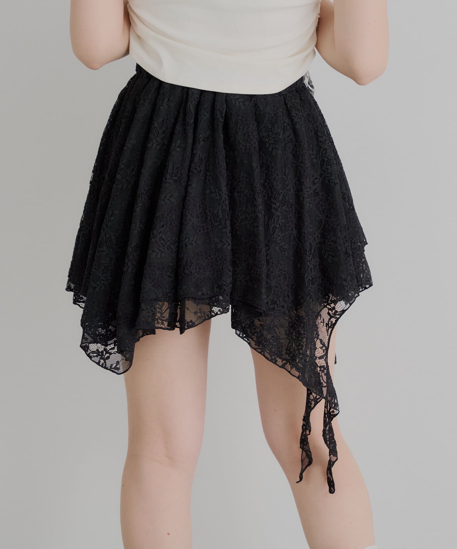 アシンメトリーなデザインが魅力のレーススカート登場!