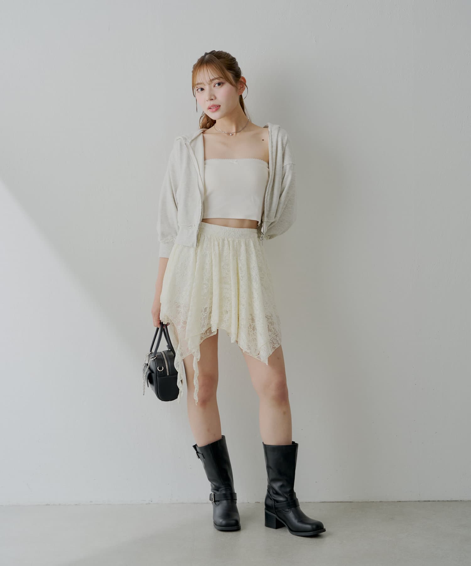 【Chico】アシメフリルレースミニスカート