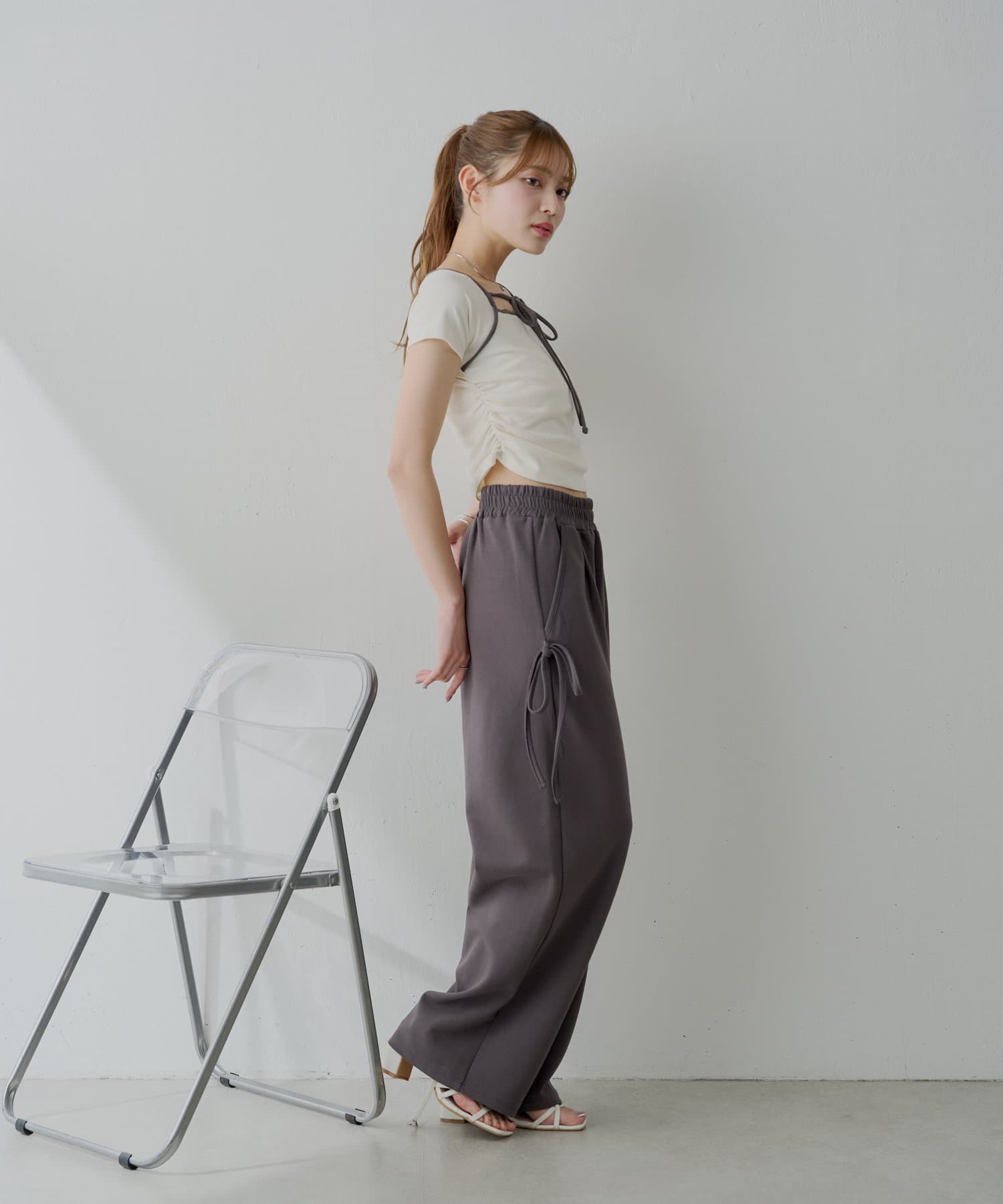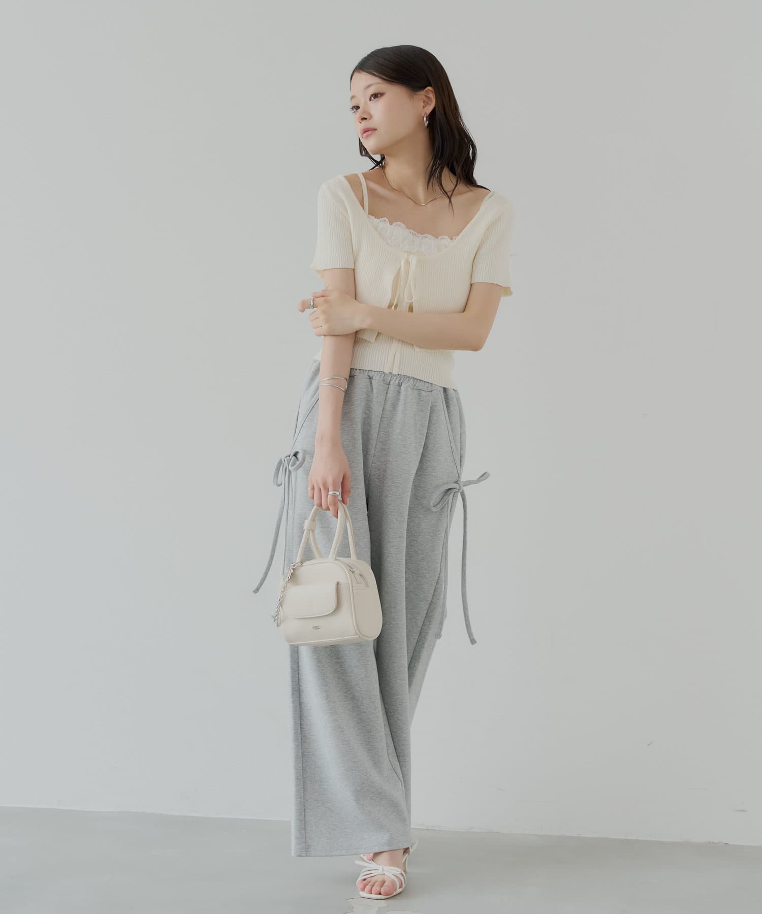 ・サイドのリボンがさりげないアクセントになり、抜け感を演出してくれます。