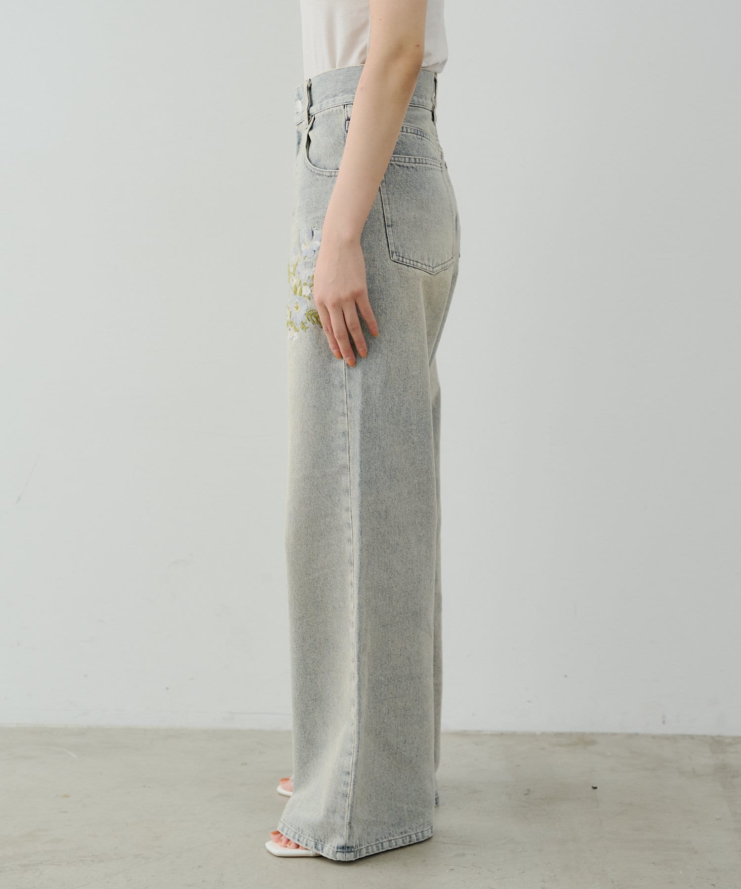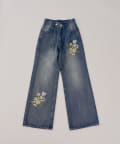 ヴィンテージライクな風合いに、繊細な花刺繍が映えるフレアデニム登場!