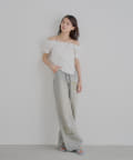 ・コンパクトトップスやオフショルトップスでちらっと肌見せするとトレンドライクな印象に。
