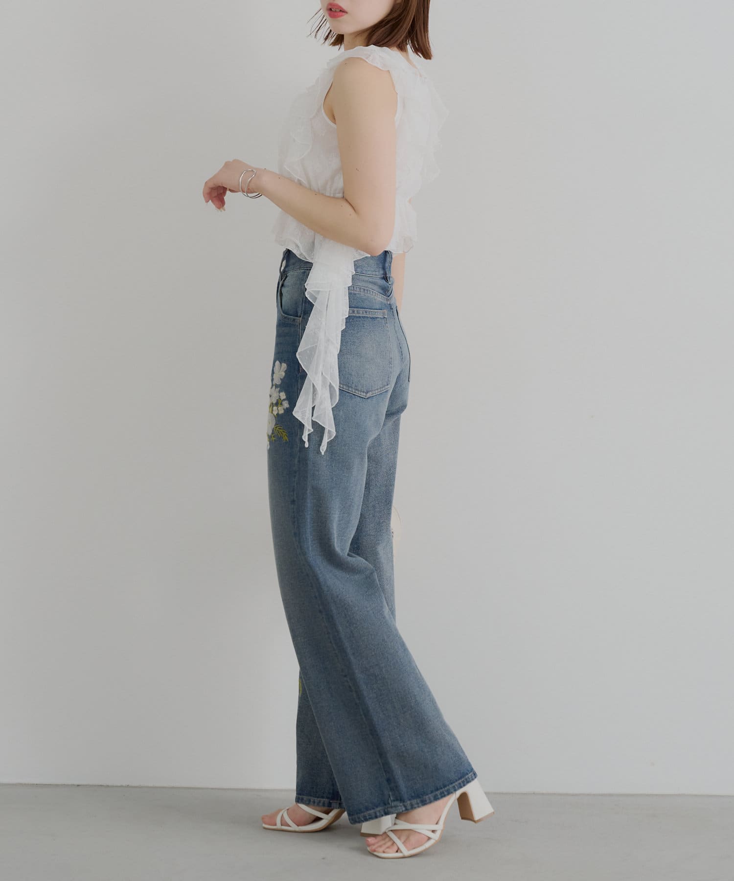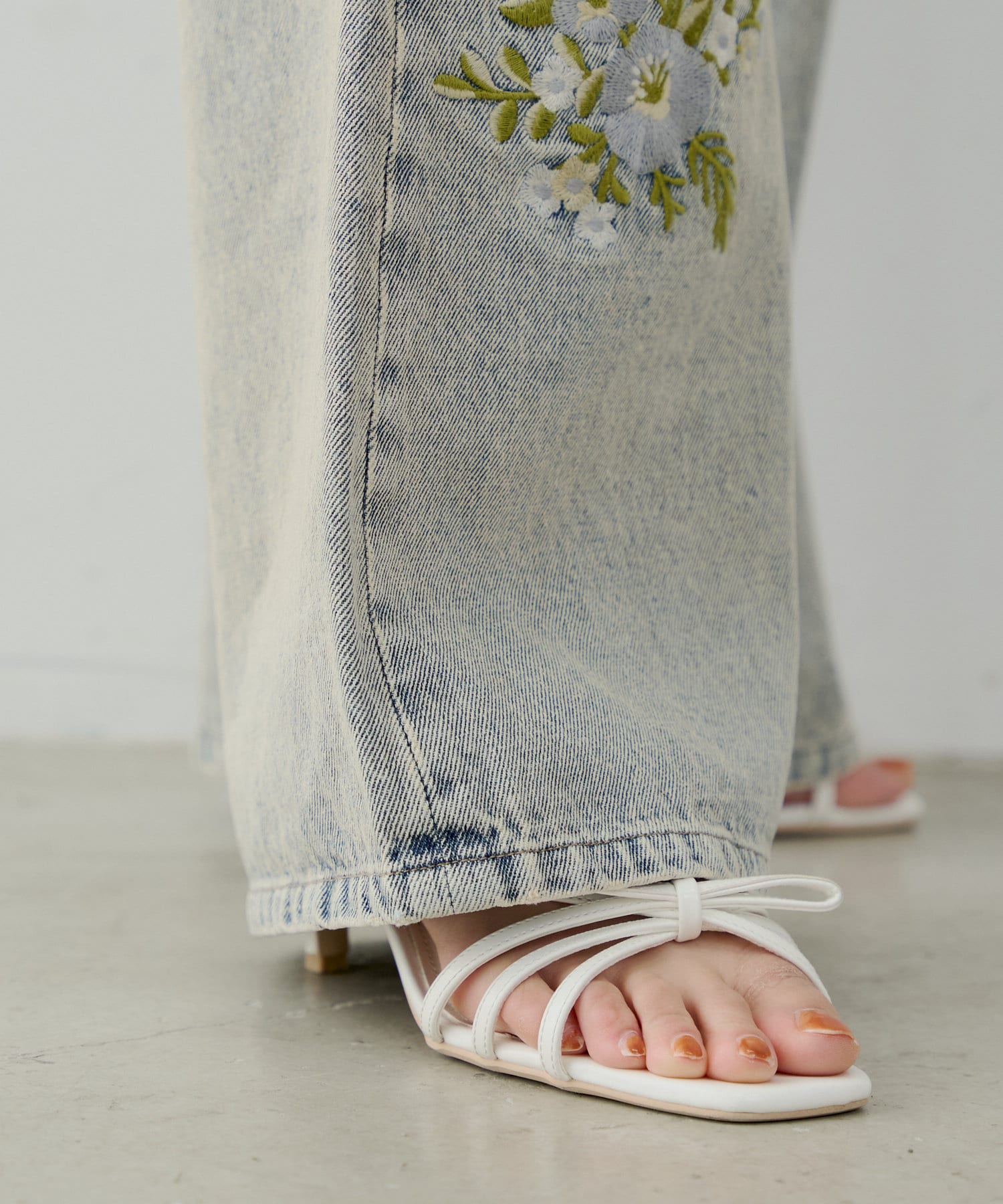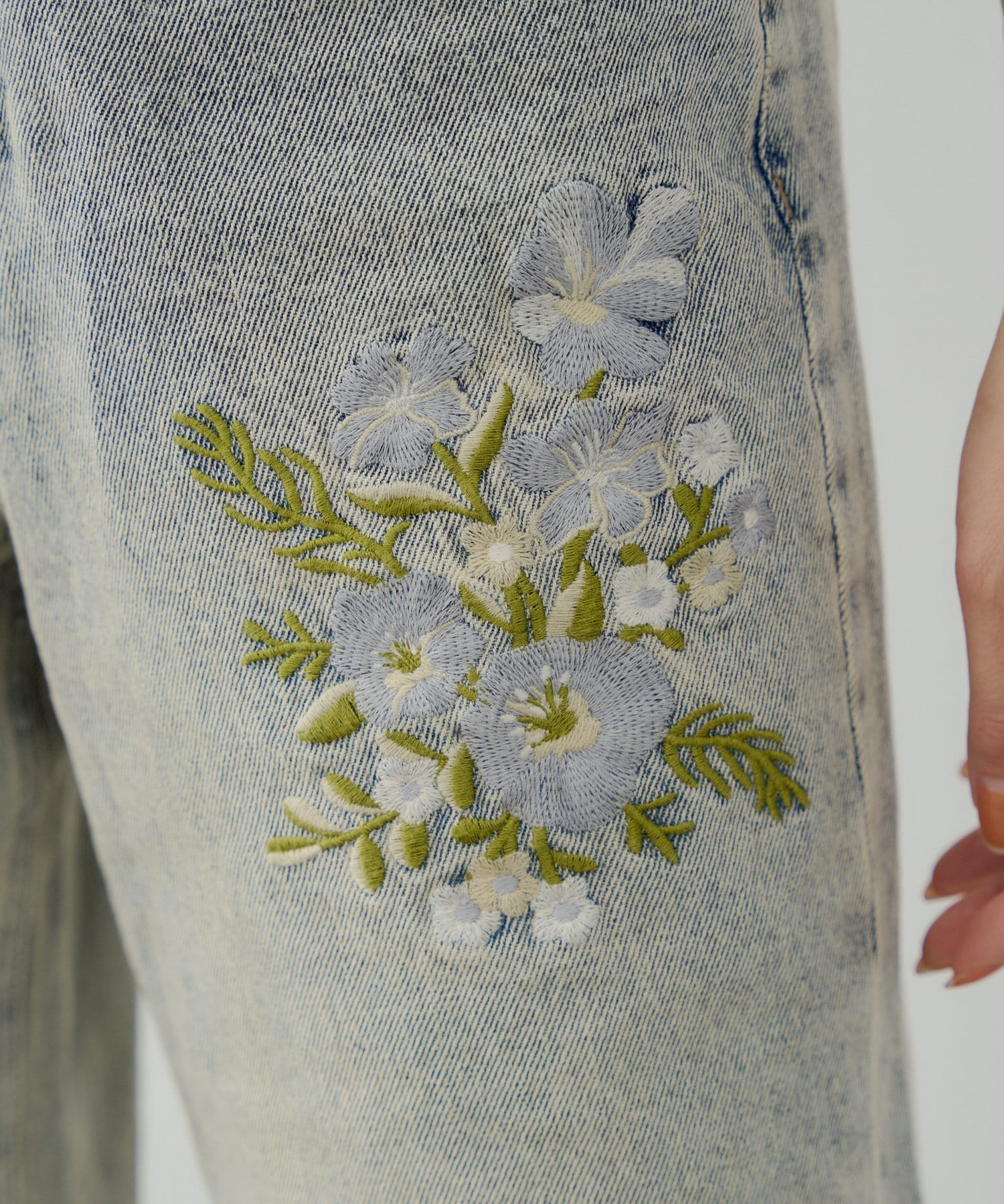 ・他にはない花刺繍デザインがカジュアルなデニムに、フェミニンさをプラスしてくれます。