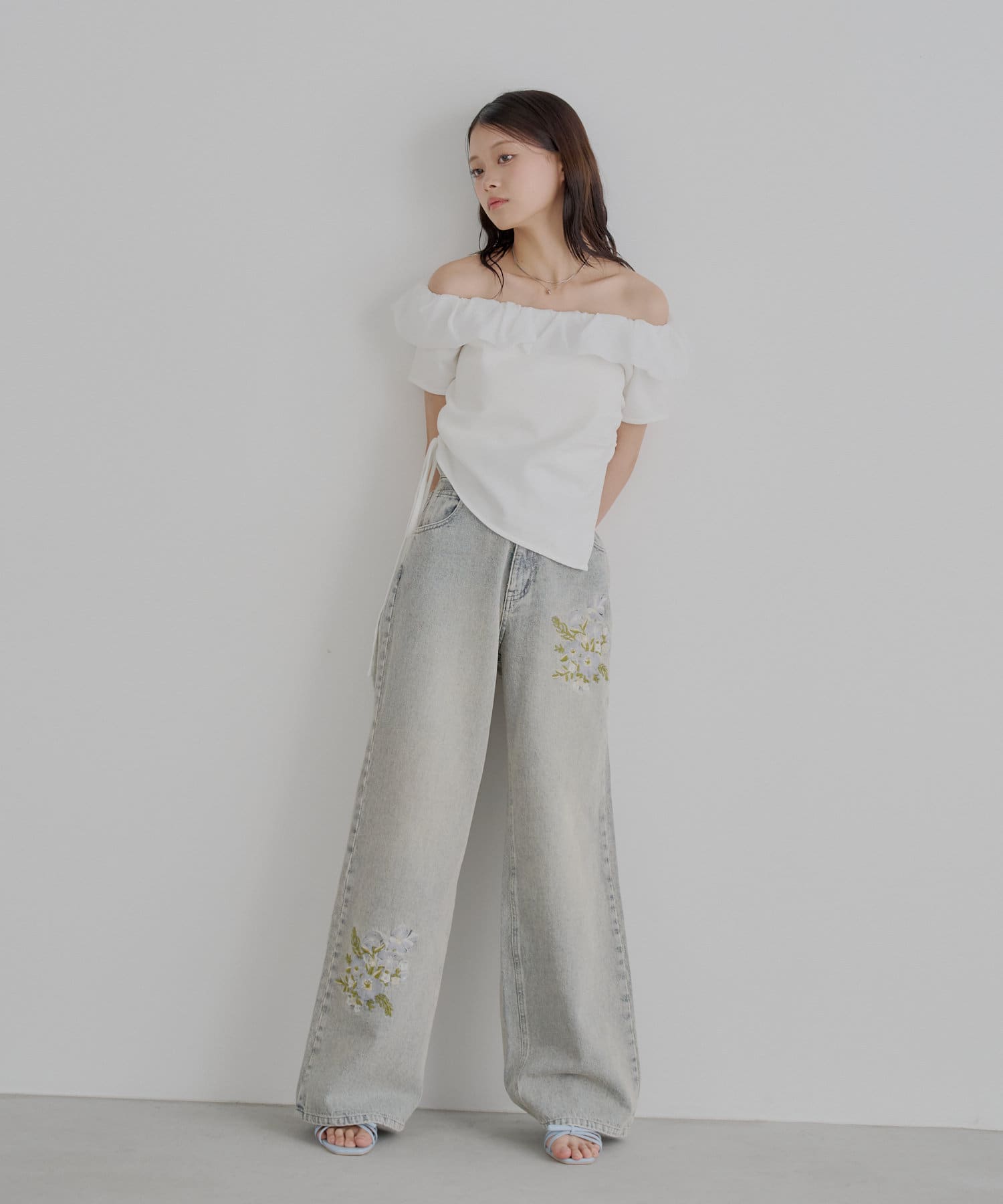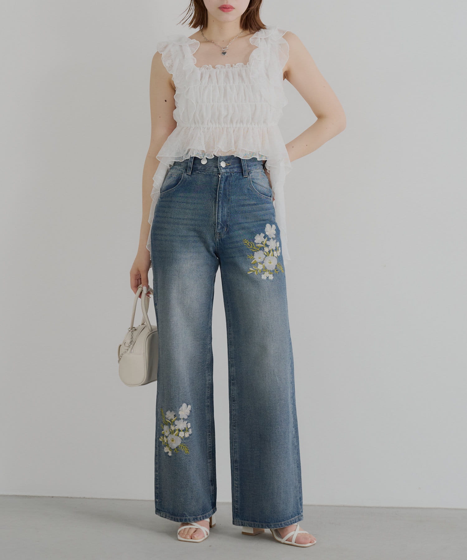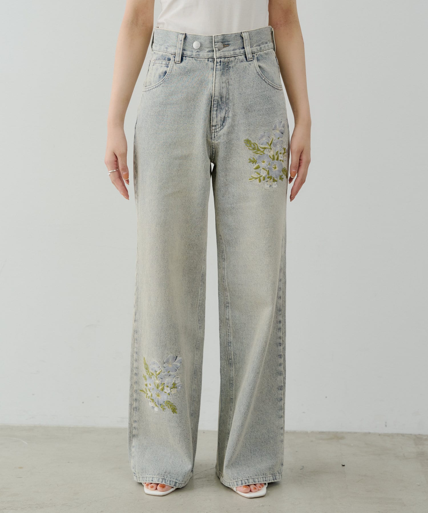 ・他にはない花刺繍デザインがカジュアルなデニムに、フェミニンさをプラスしてくれます。