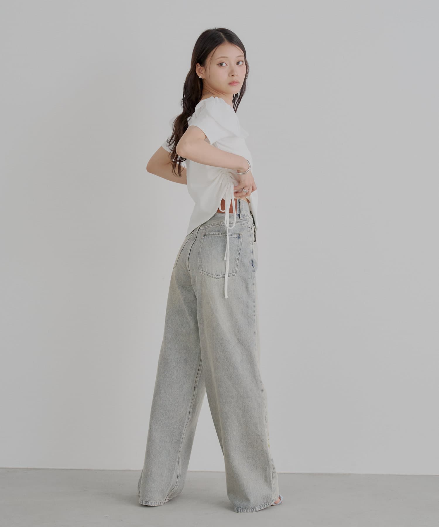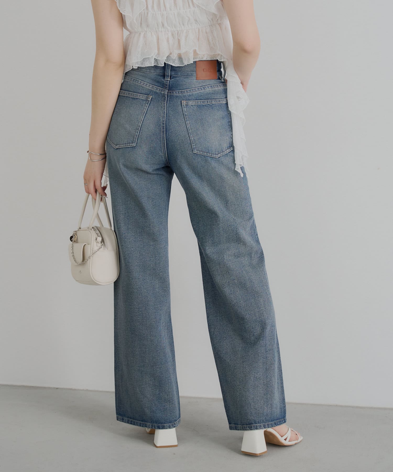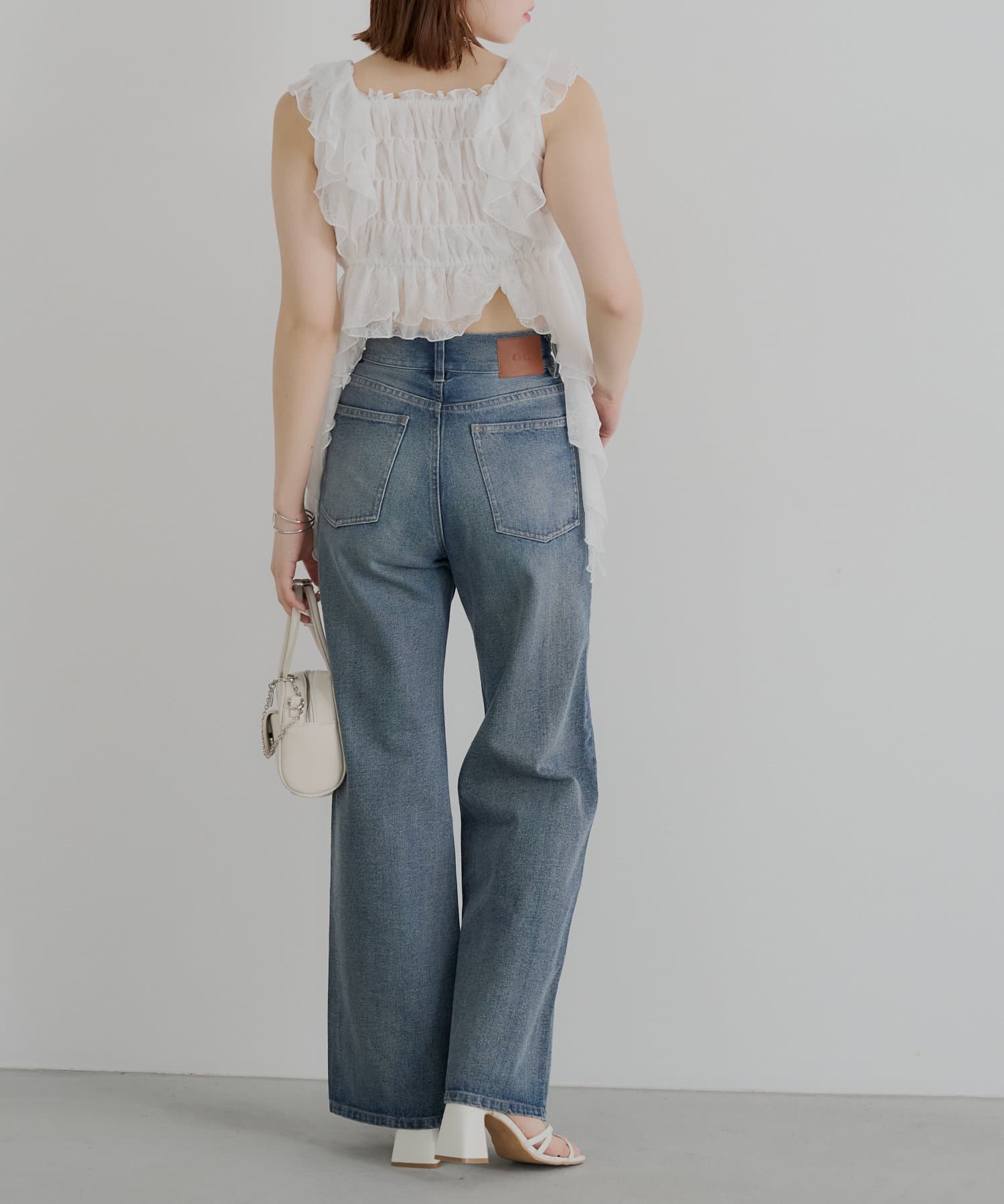 ・程よくゆとりのあるフレアデニムなため、リラックス感のある履き心地でありながら脚長効果も◎