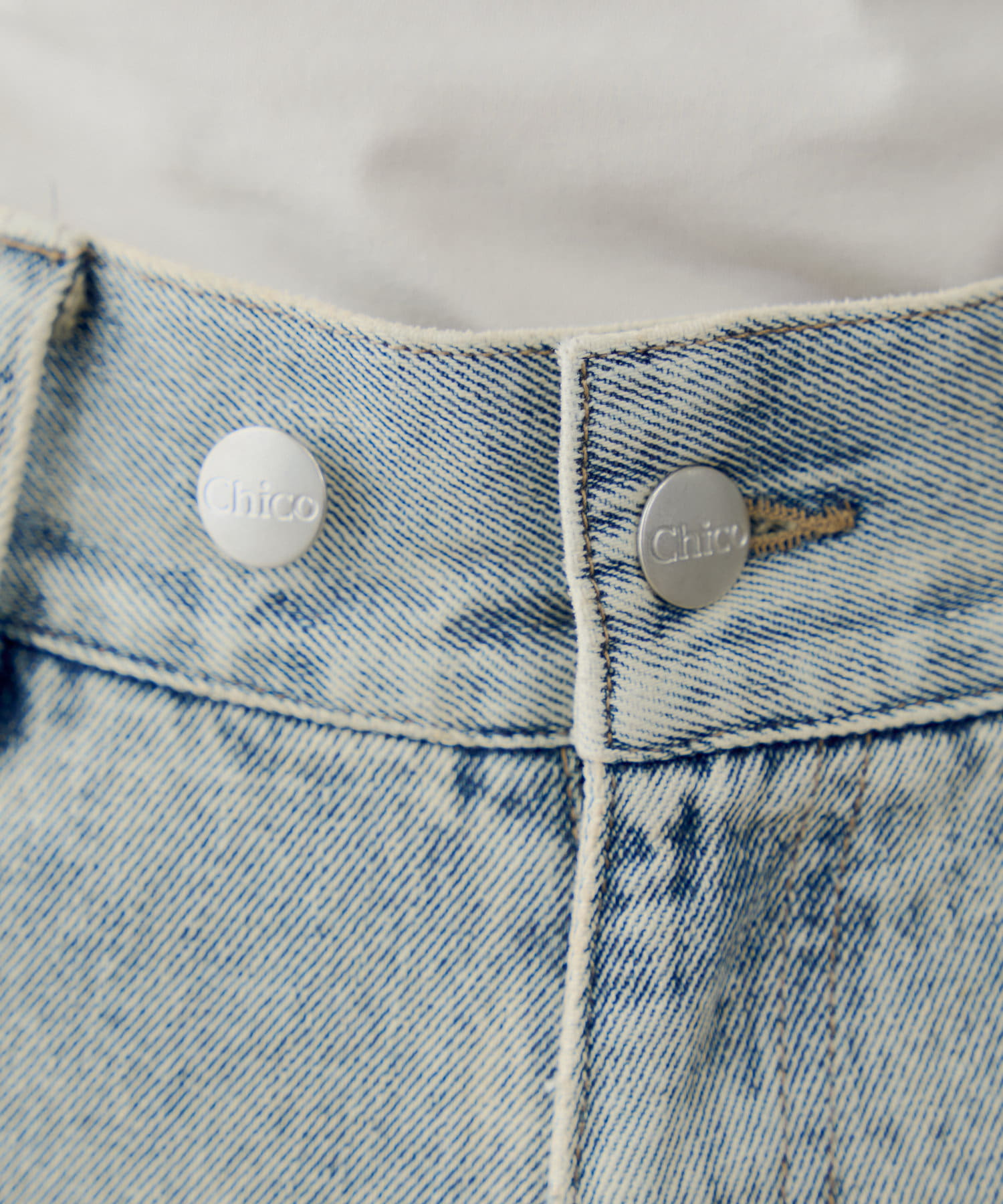 ・ウエストはダブルボタン仕様なため、手前のボタンで閉めてハイウエストでの着用と、