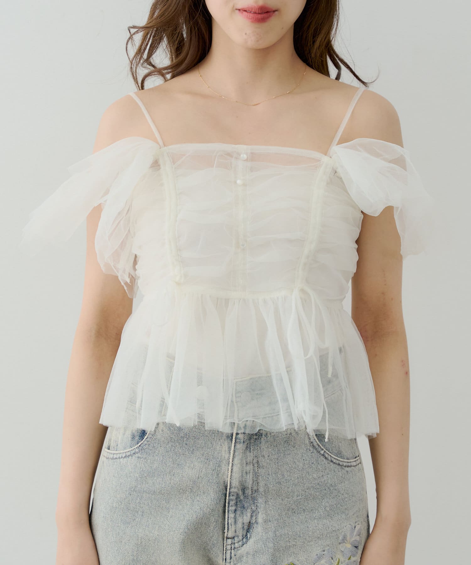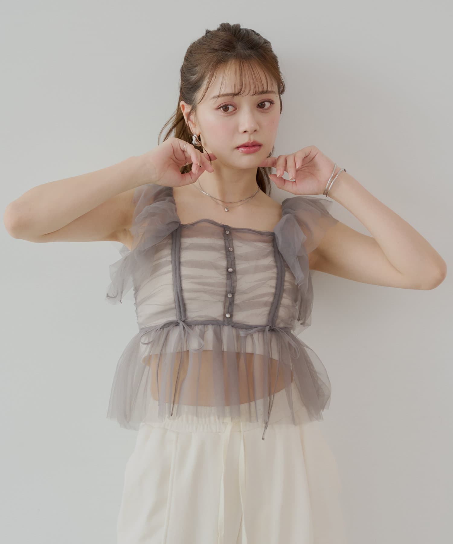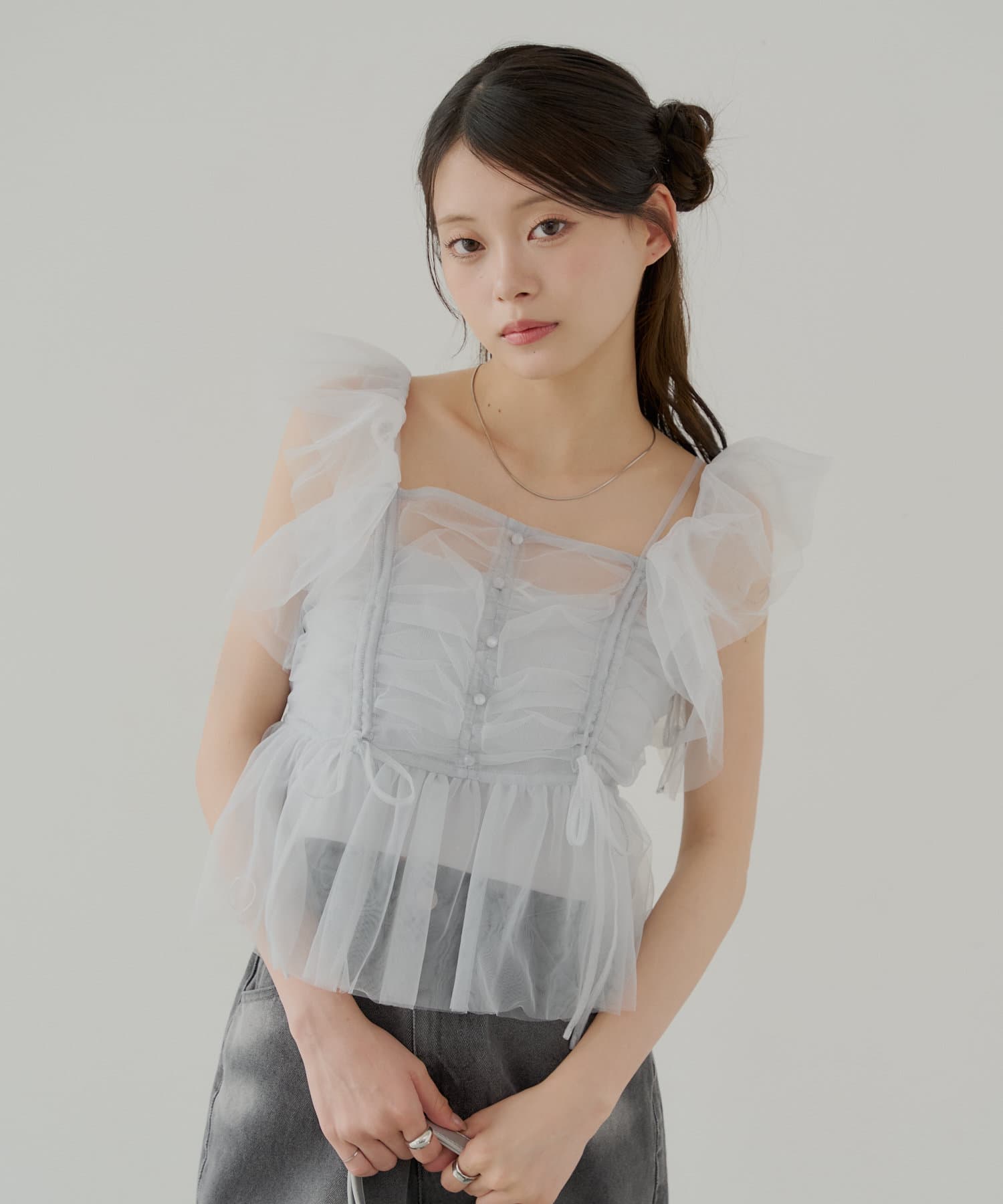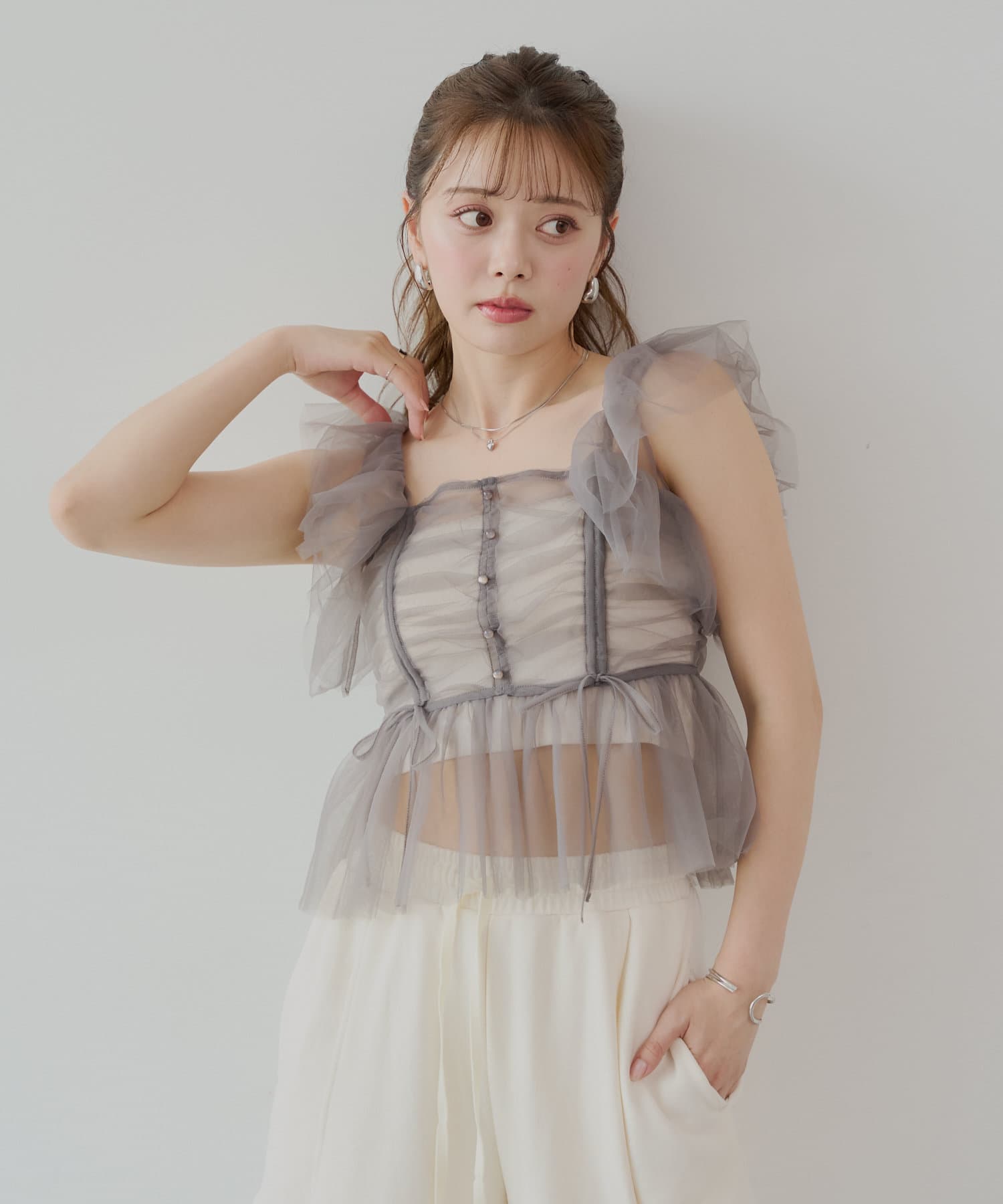 ふんわりチュールが目を惹くフェミニンなブラウス登場!