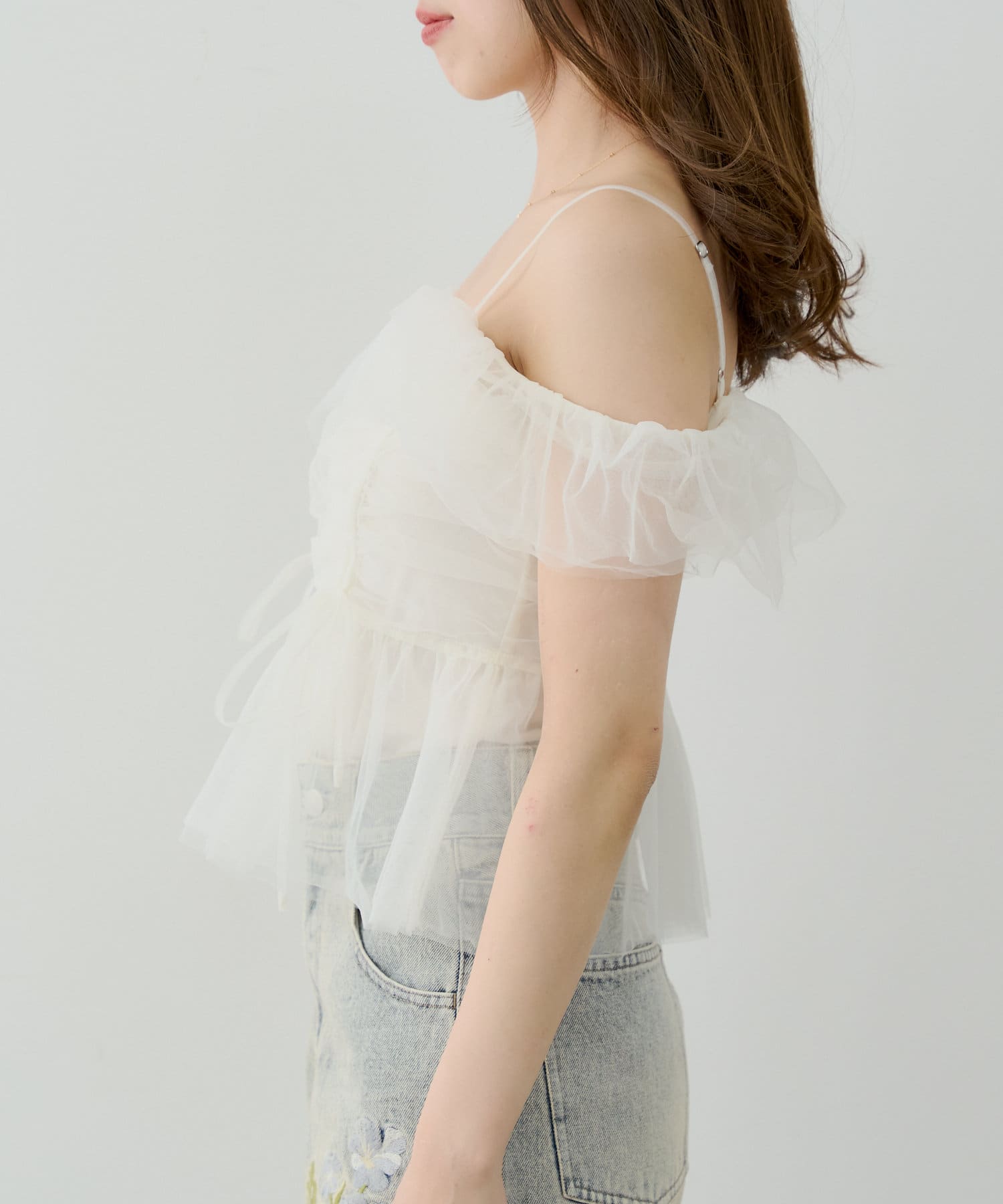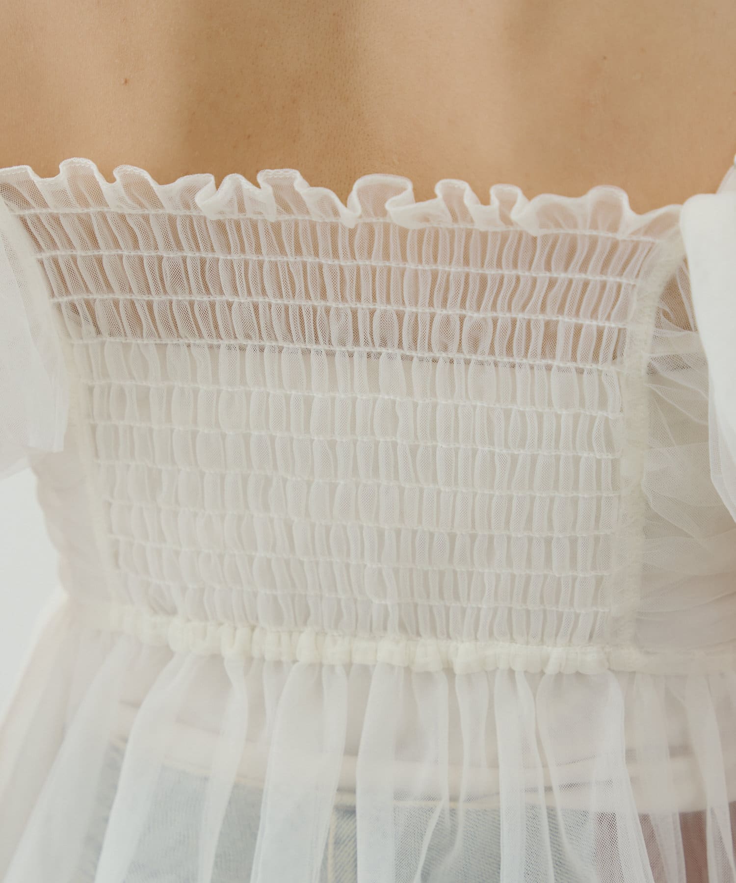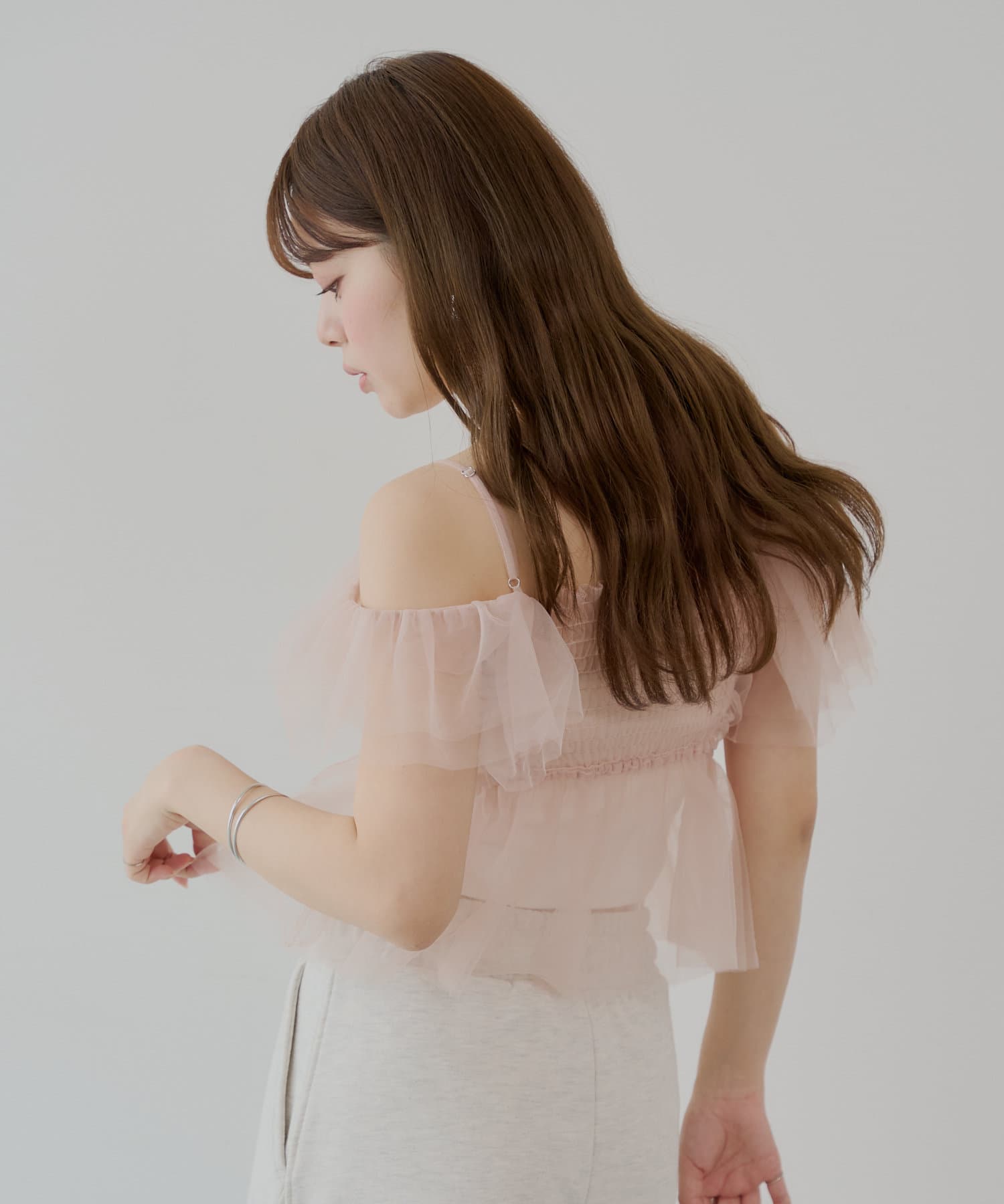 ・チュールの透け感が、抜け感のある着こなしを叶えます。
