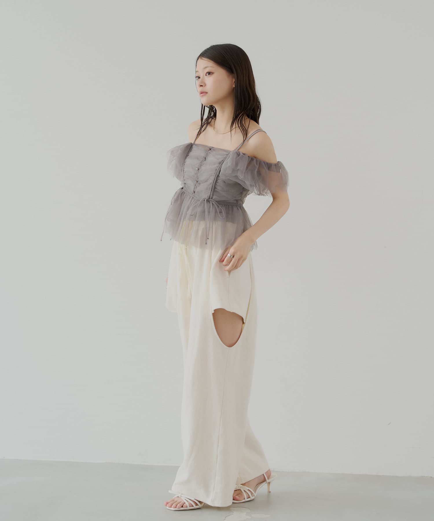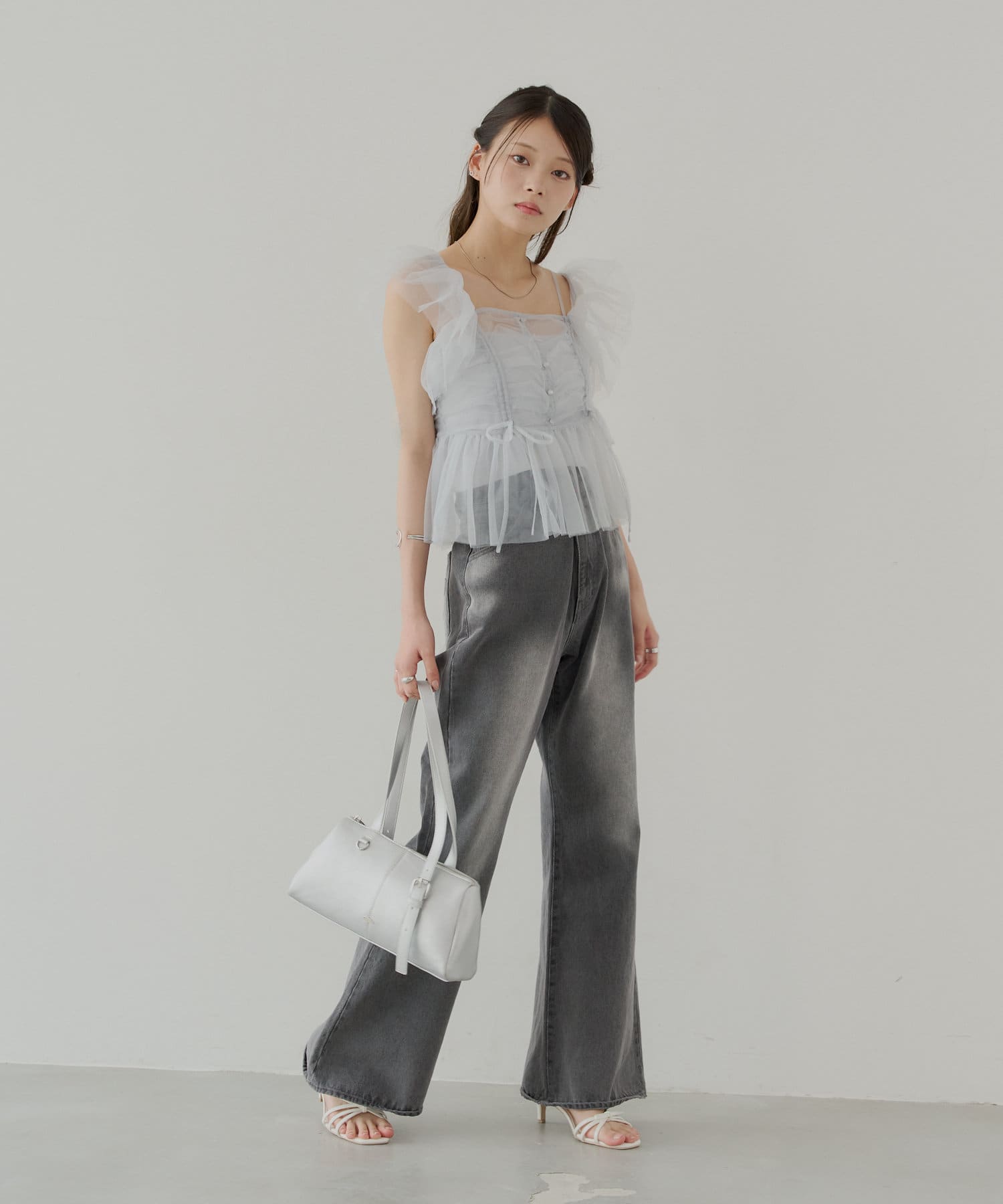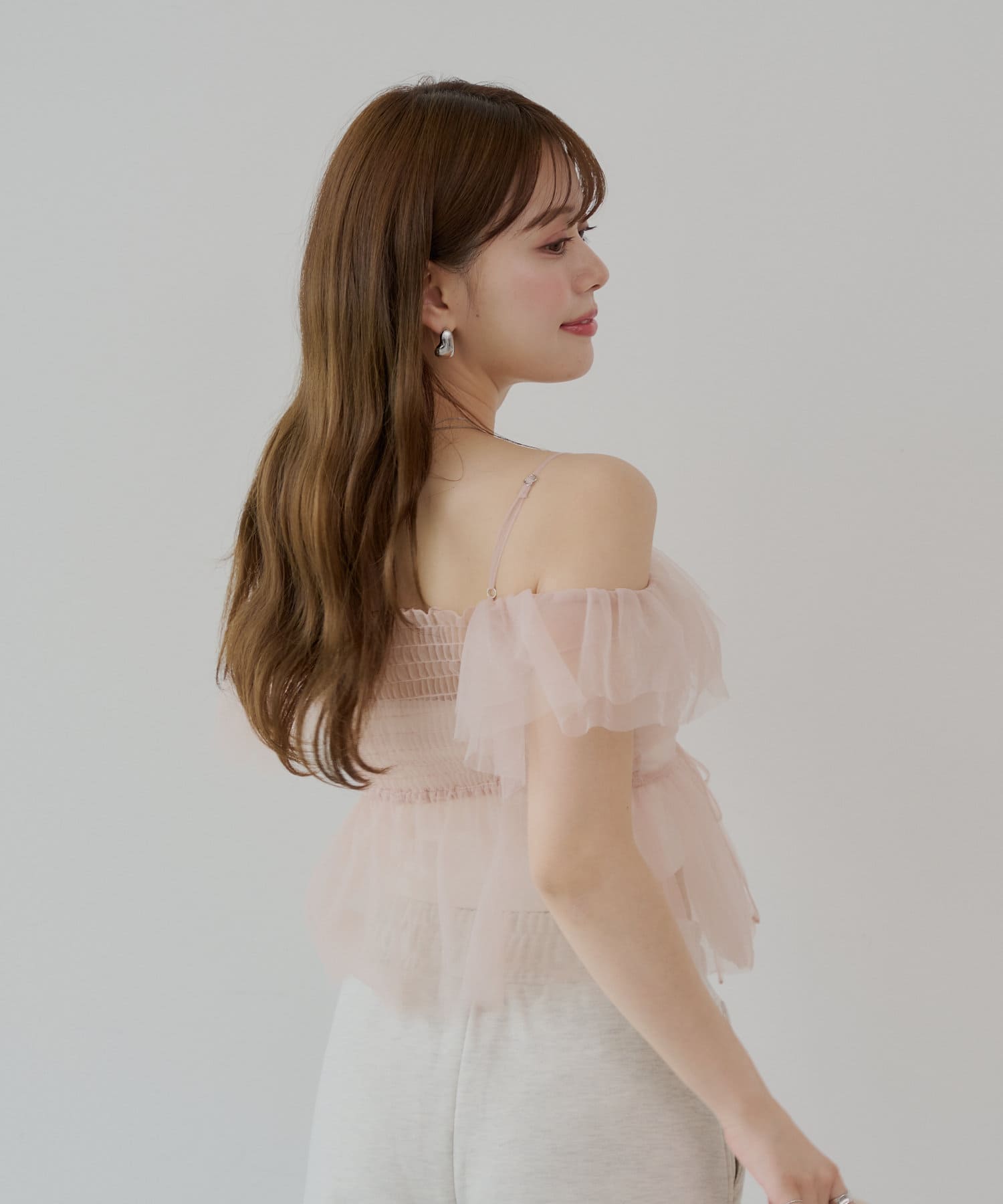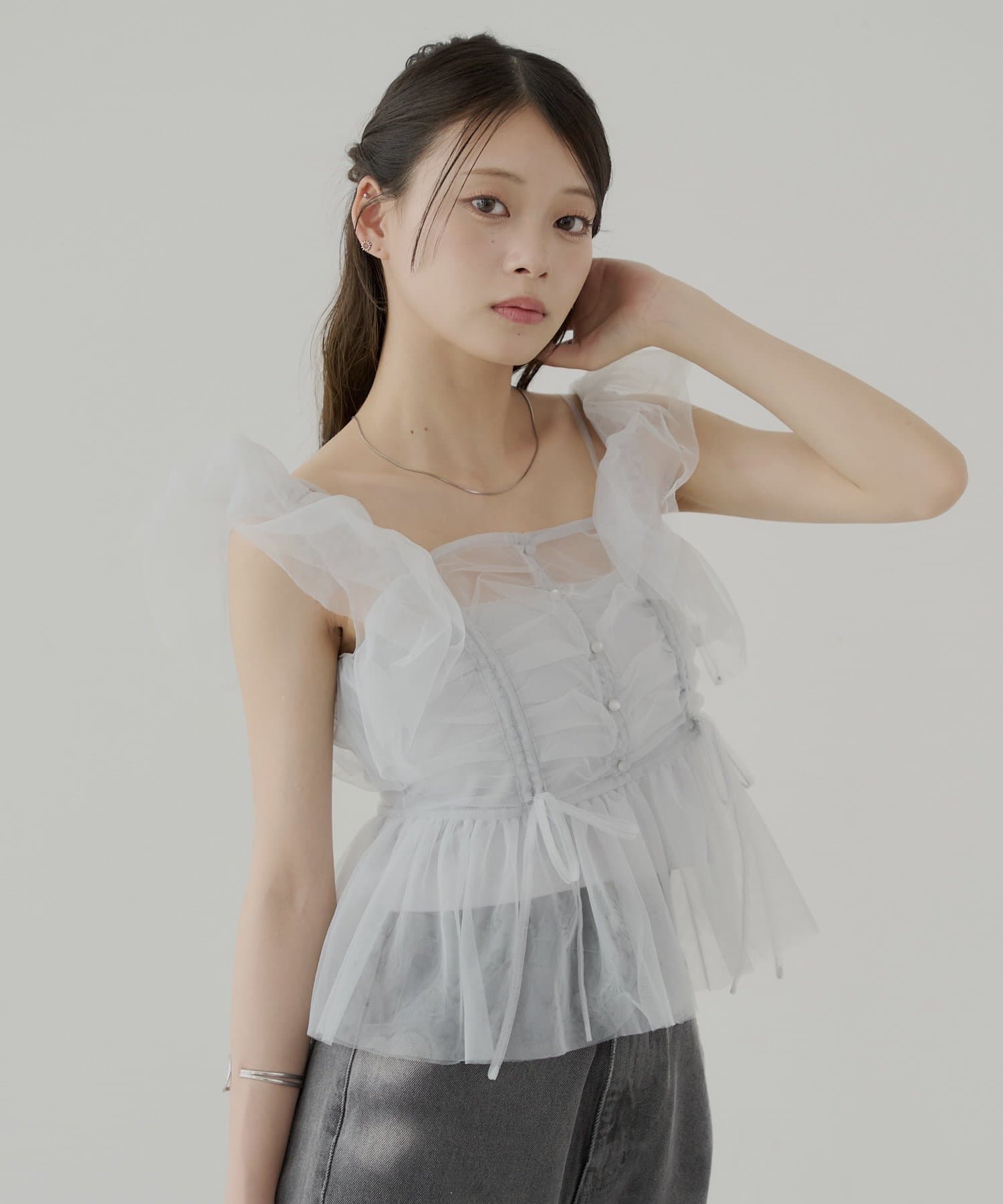 ・チュールの透け感が、抜け感のある着こなしを叶えます。