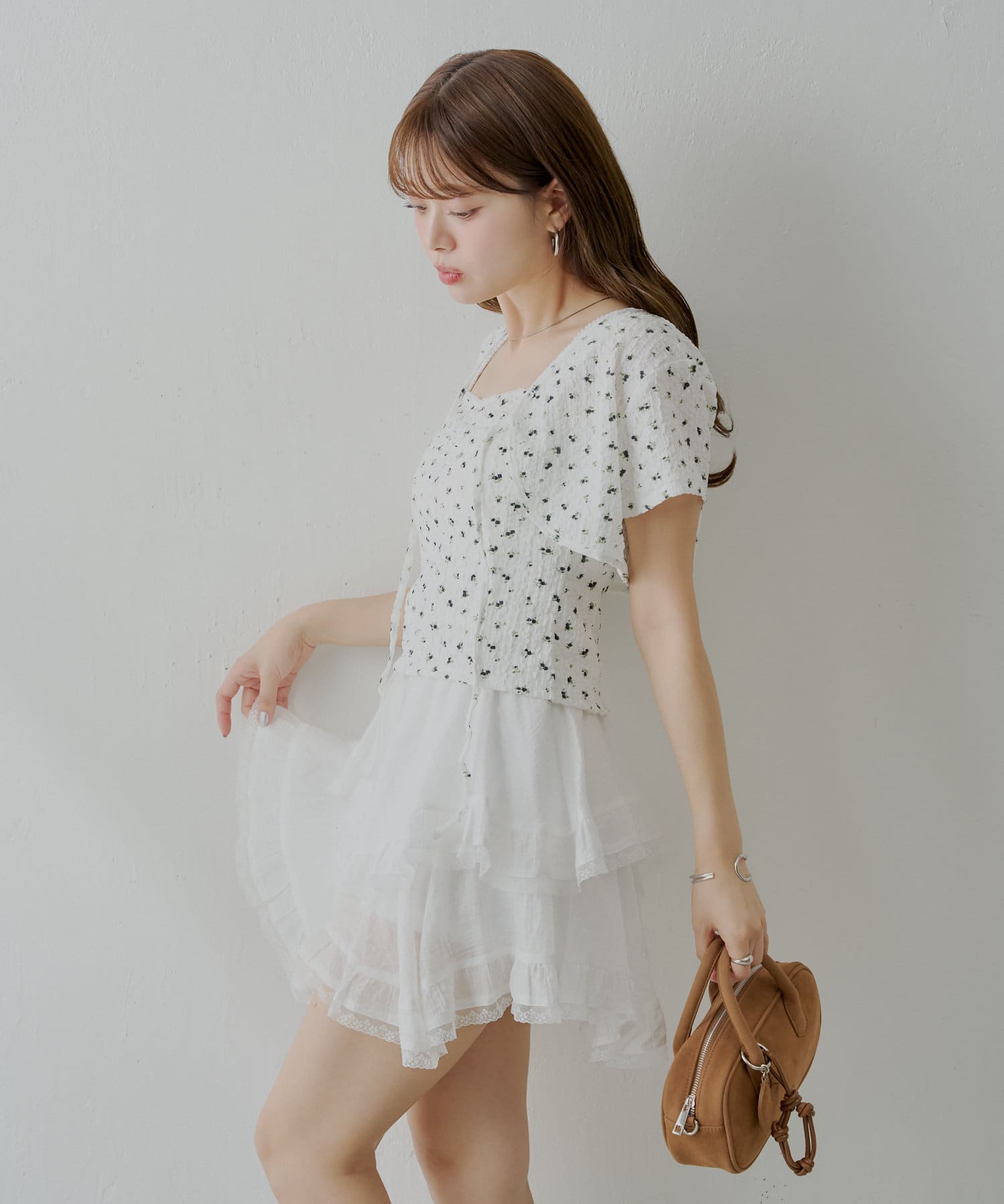 小花柄が可愛く着痩せして見えます!中を変えて上を羽織ってもかわいいです!