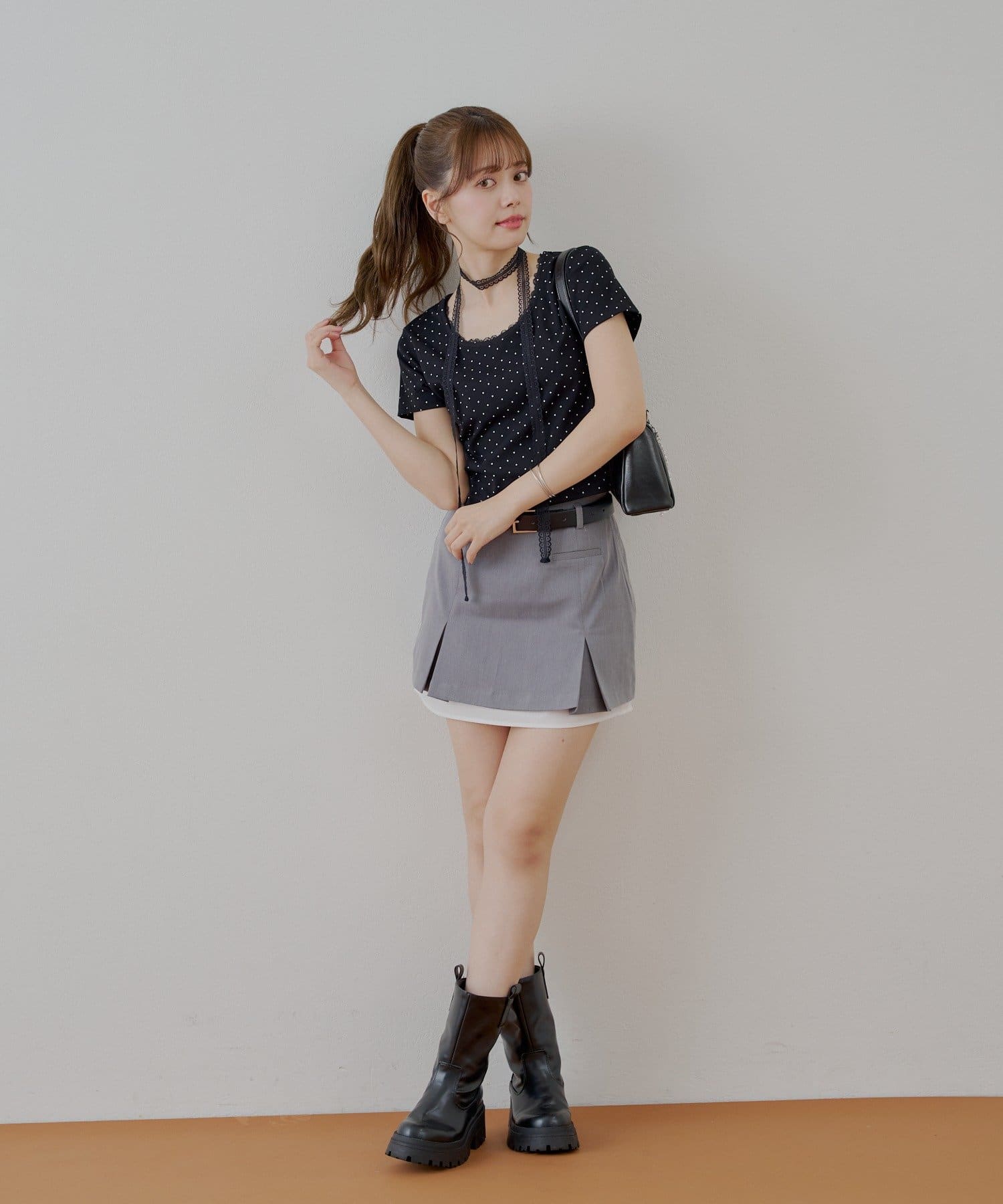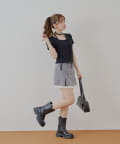 ・ミニスカート合わせでフェミニンなスタイルにも仕上がります。