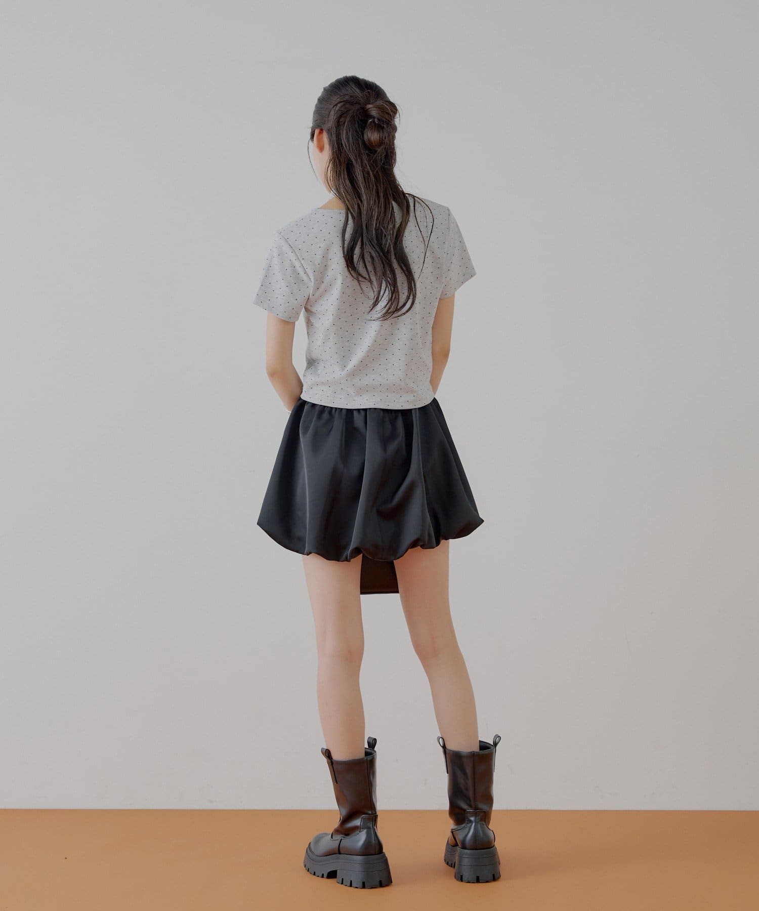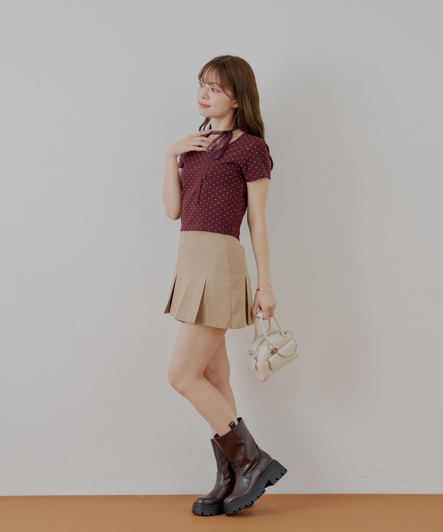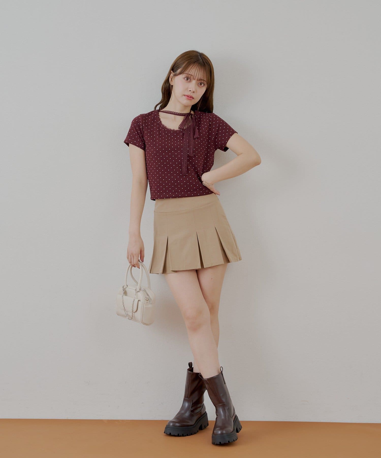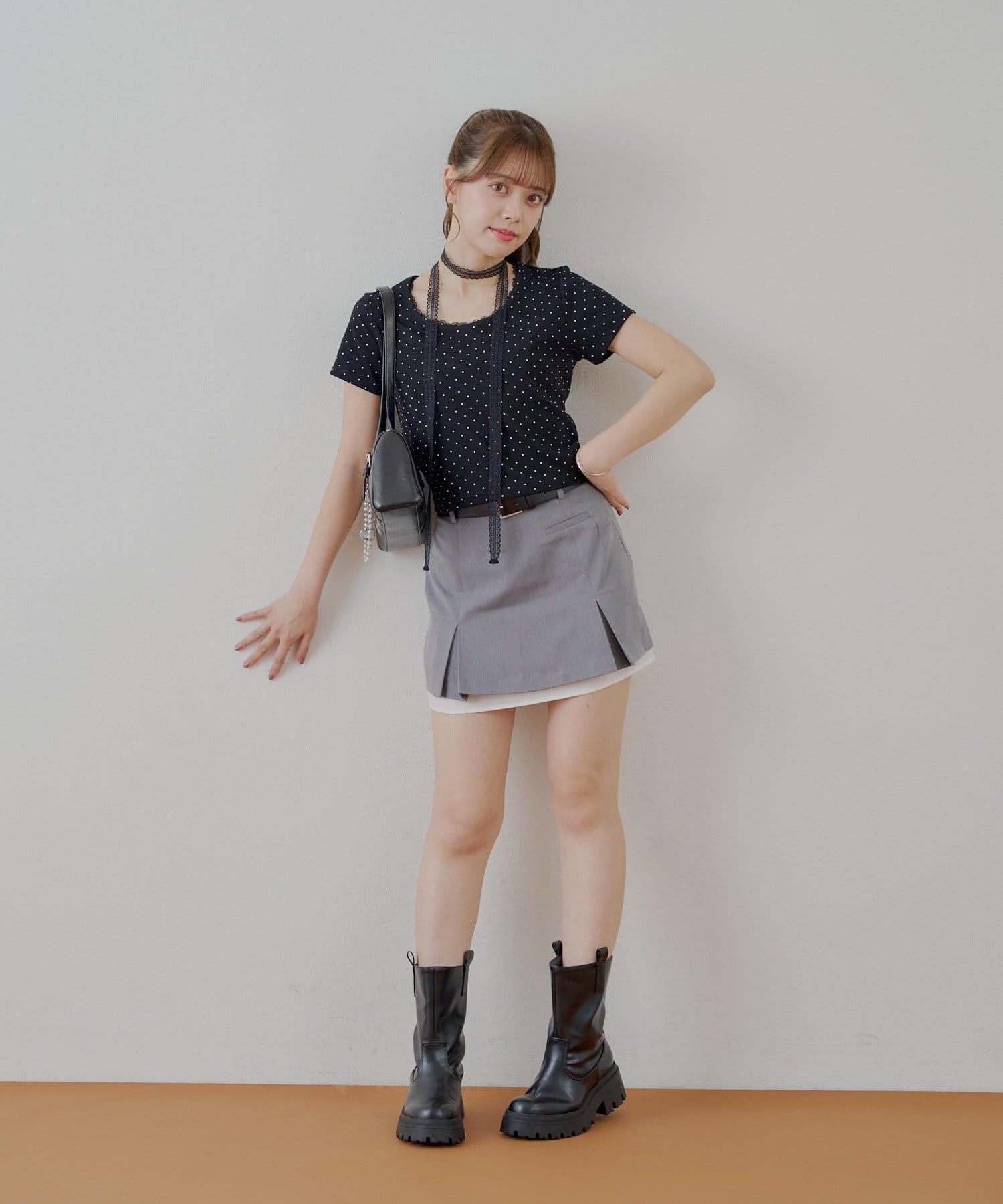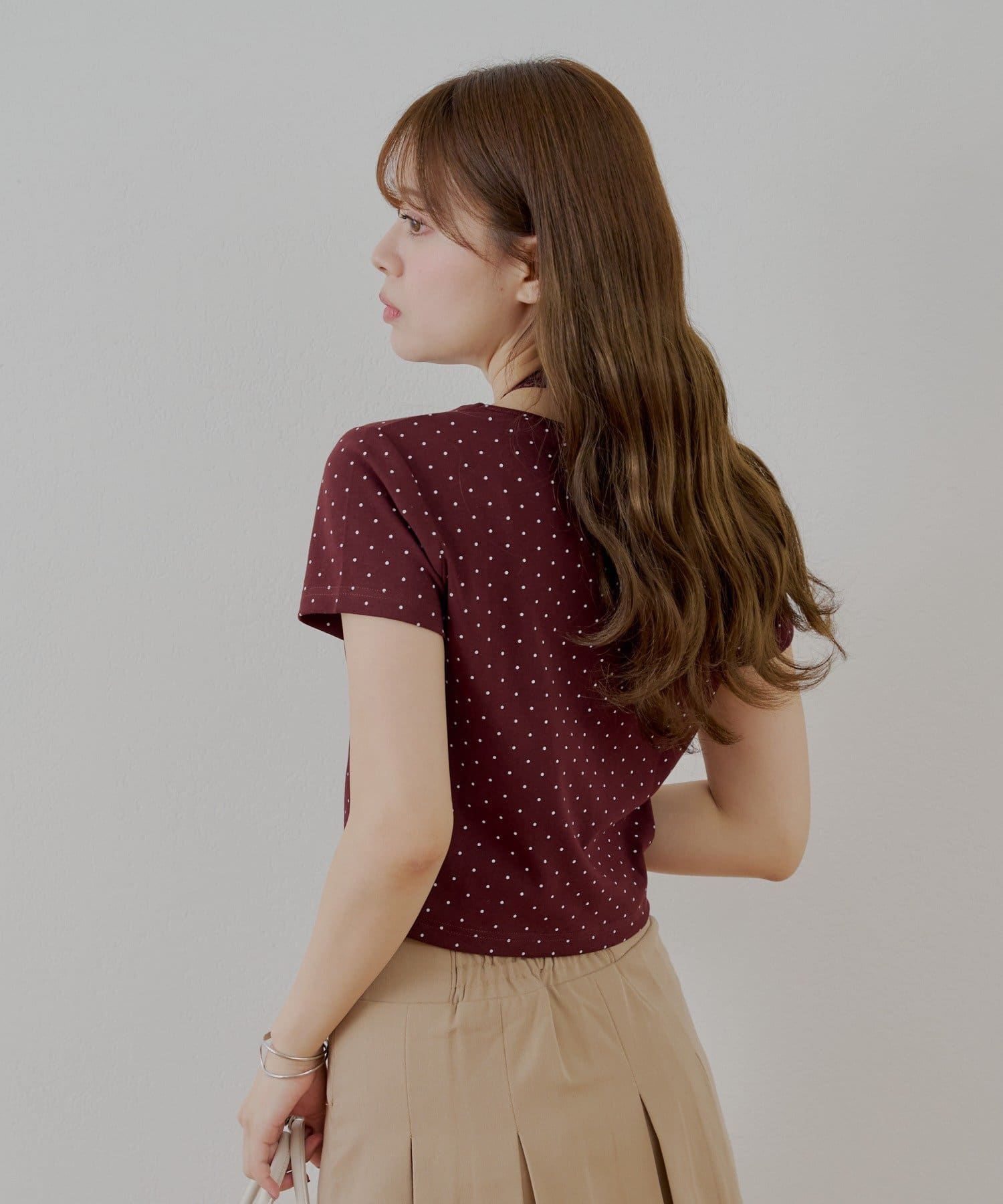 ・派手すぎない小さめのドット柄が、コーディネートに程よいアクセントをプラスしてくれます。