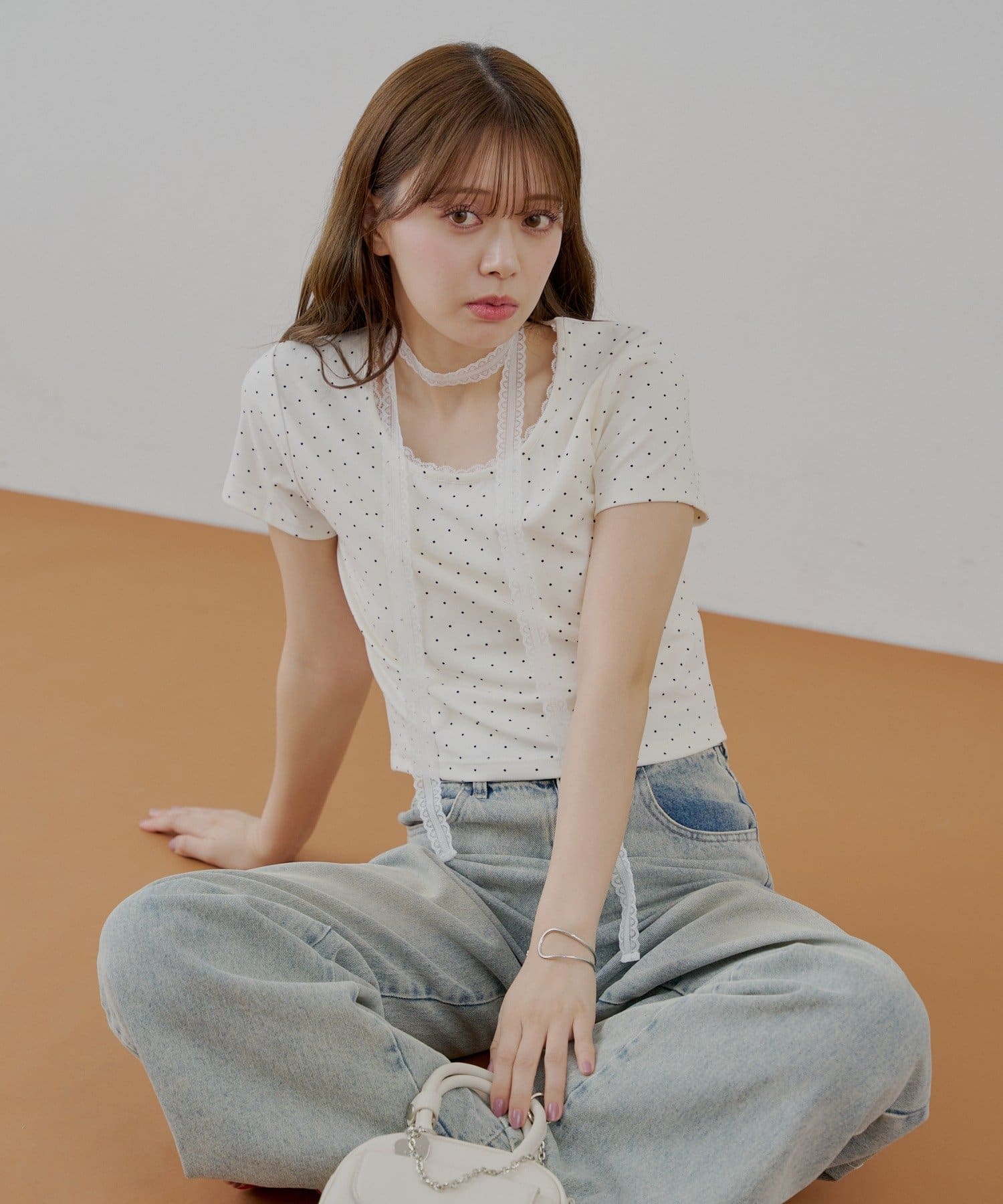 ドット×レースが織りなす、大人の甘Tシャツ登場!