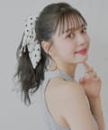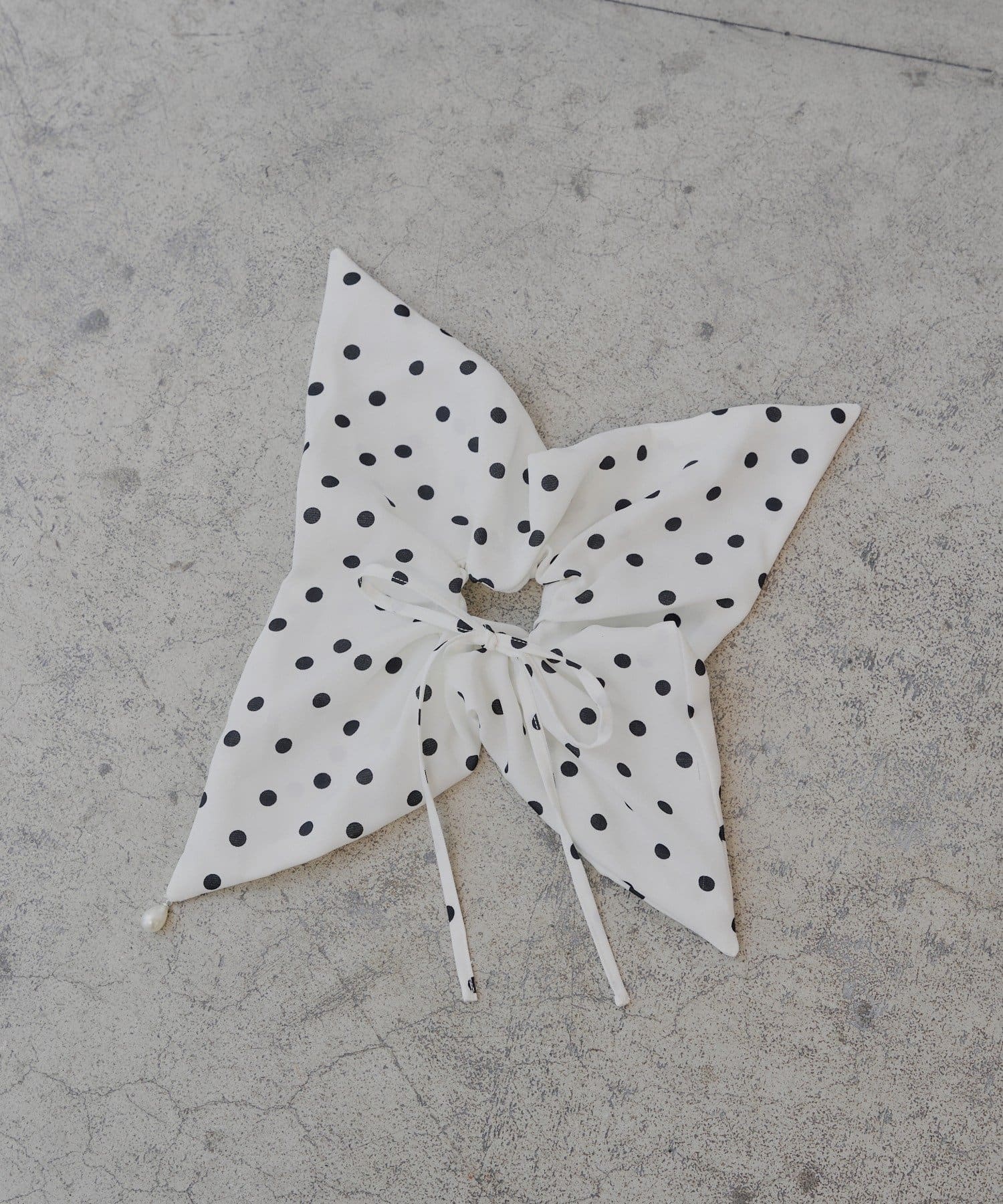 ・クラシカルなドット柄が、大人可愛い印象のスクエアシュシュ。