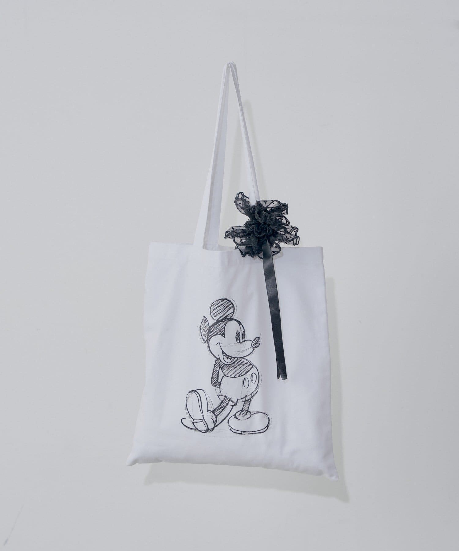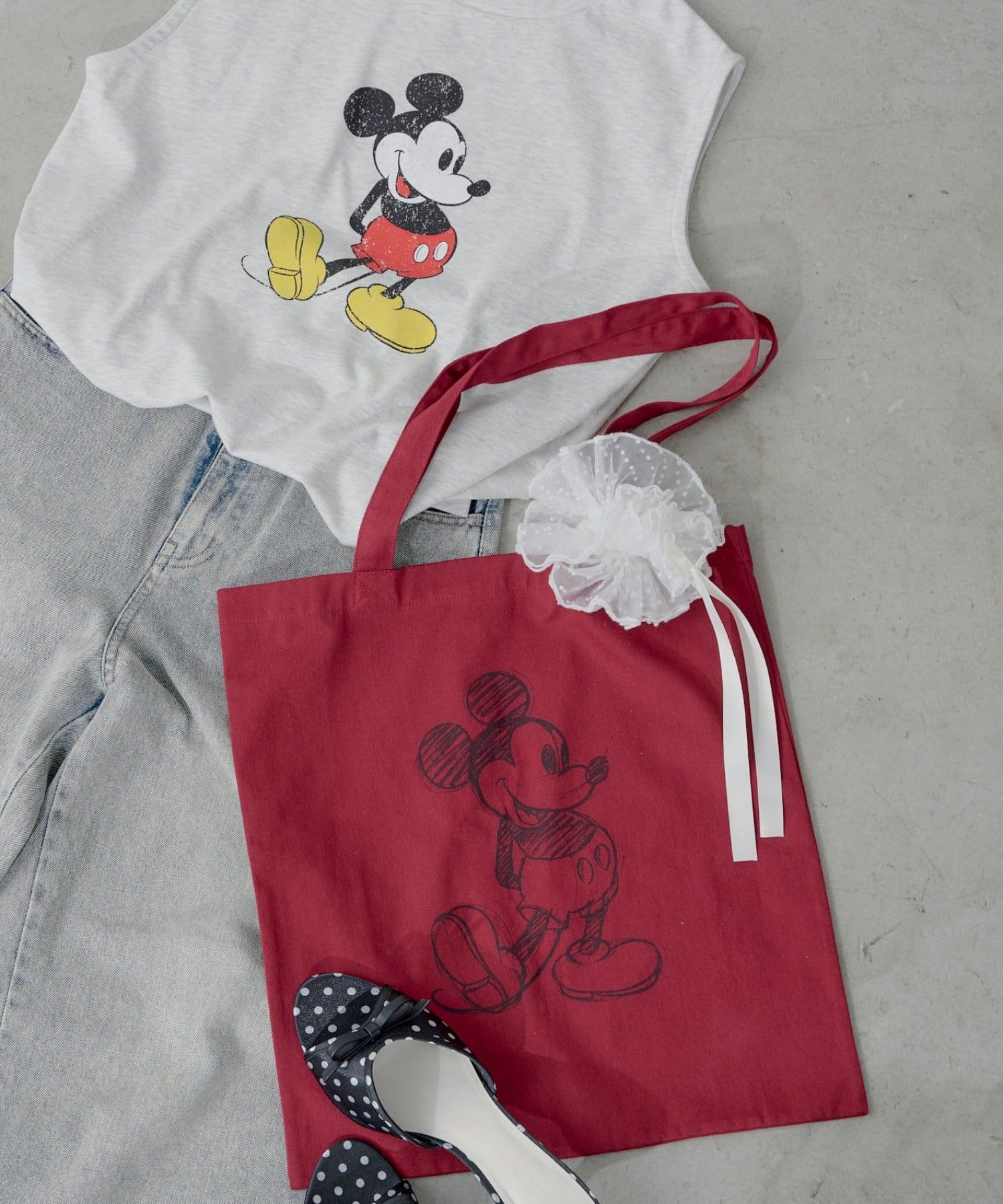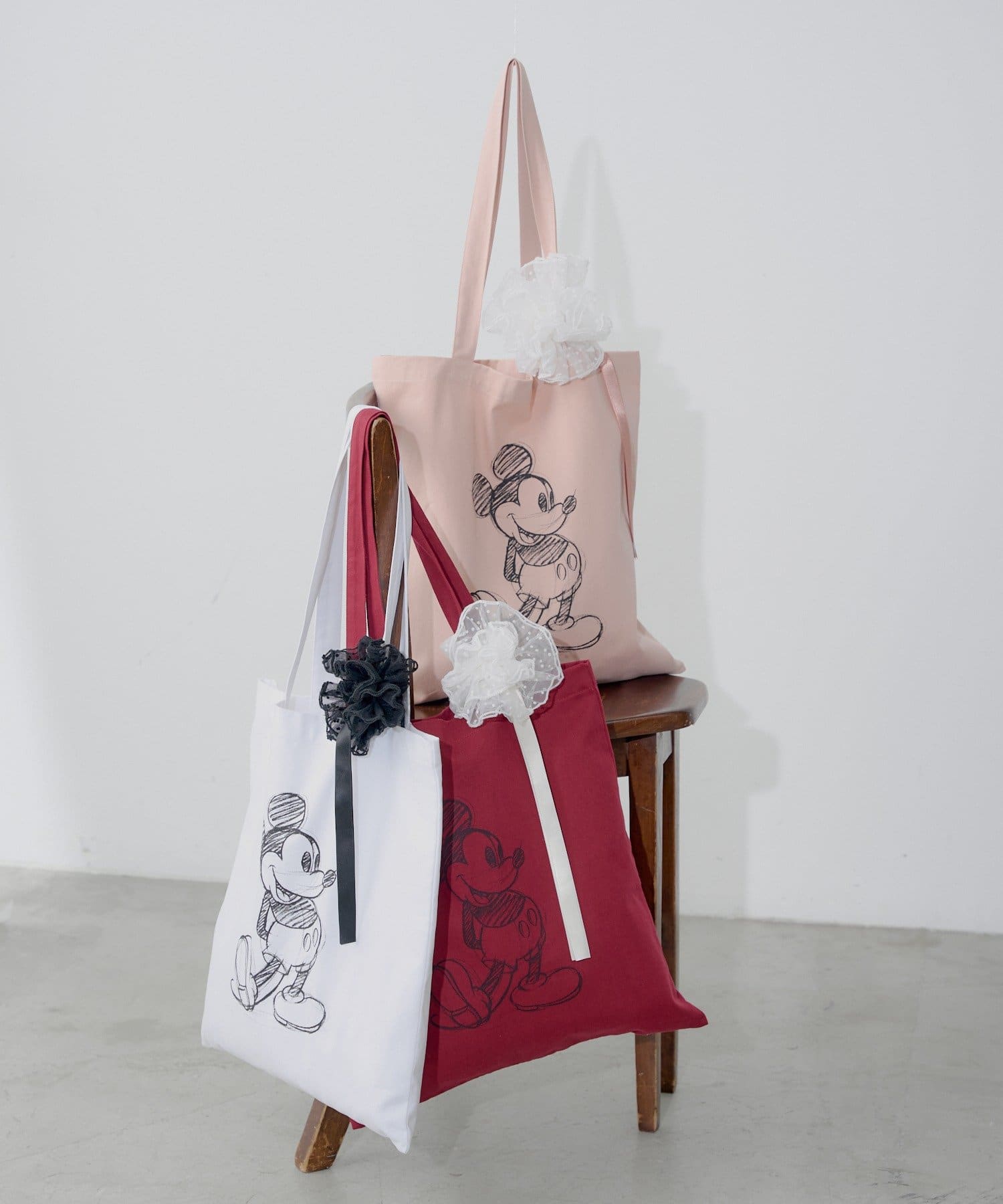 ミッキーマウスがプリントされた、大人可愛いトートバッグシュシュセット