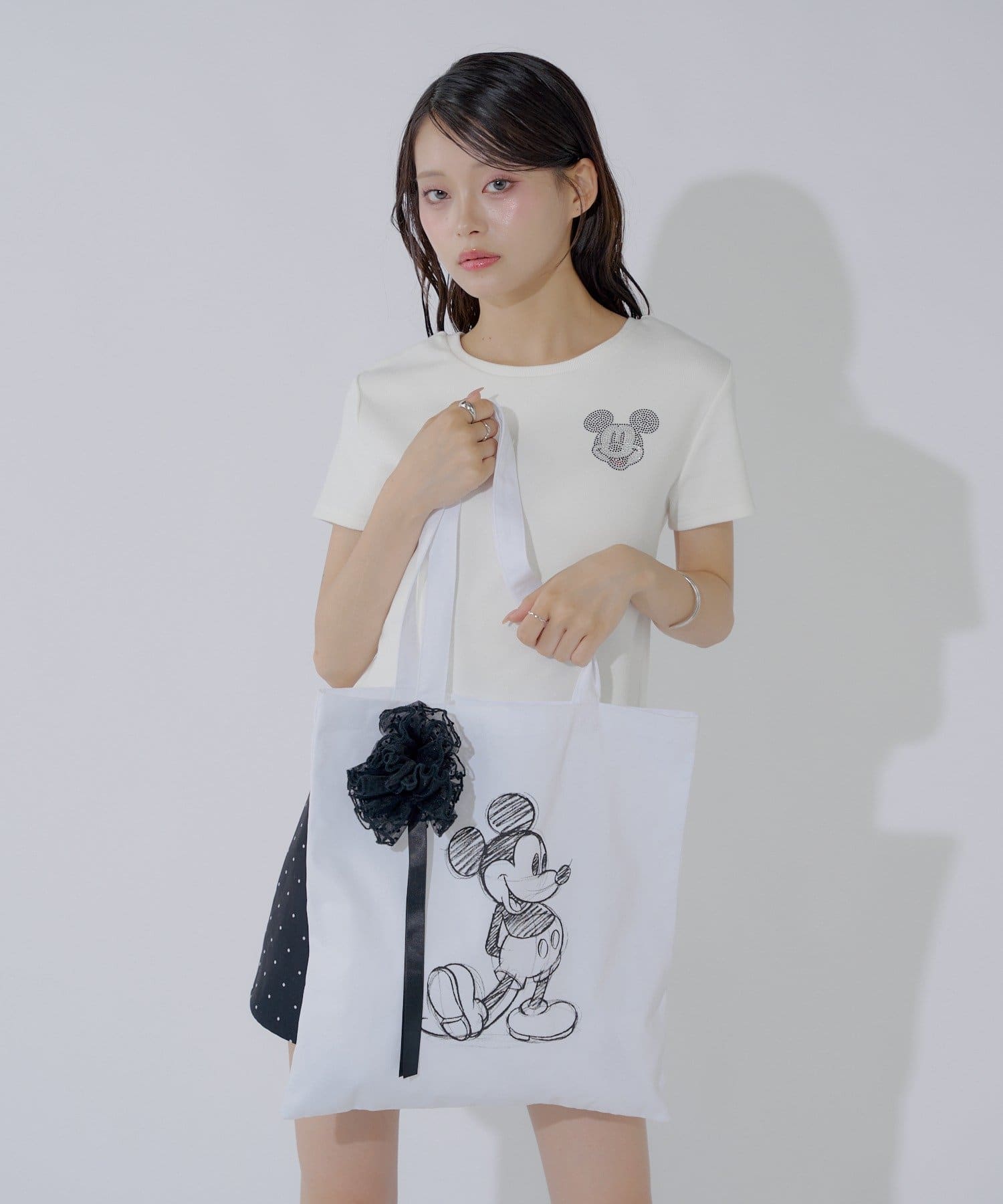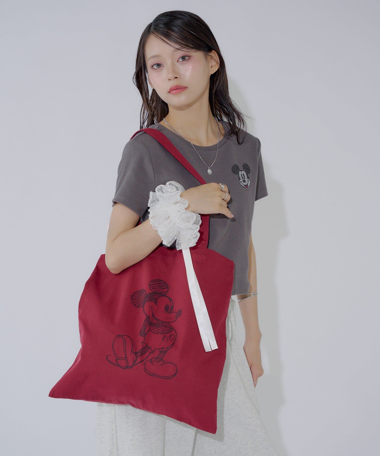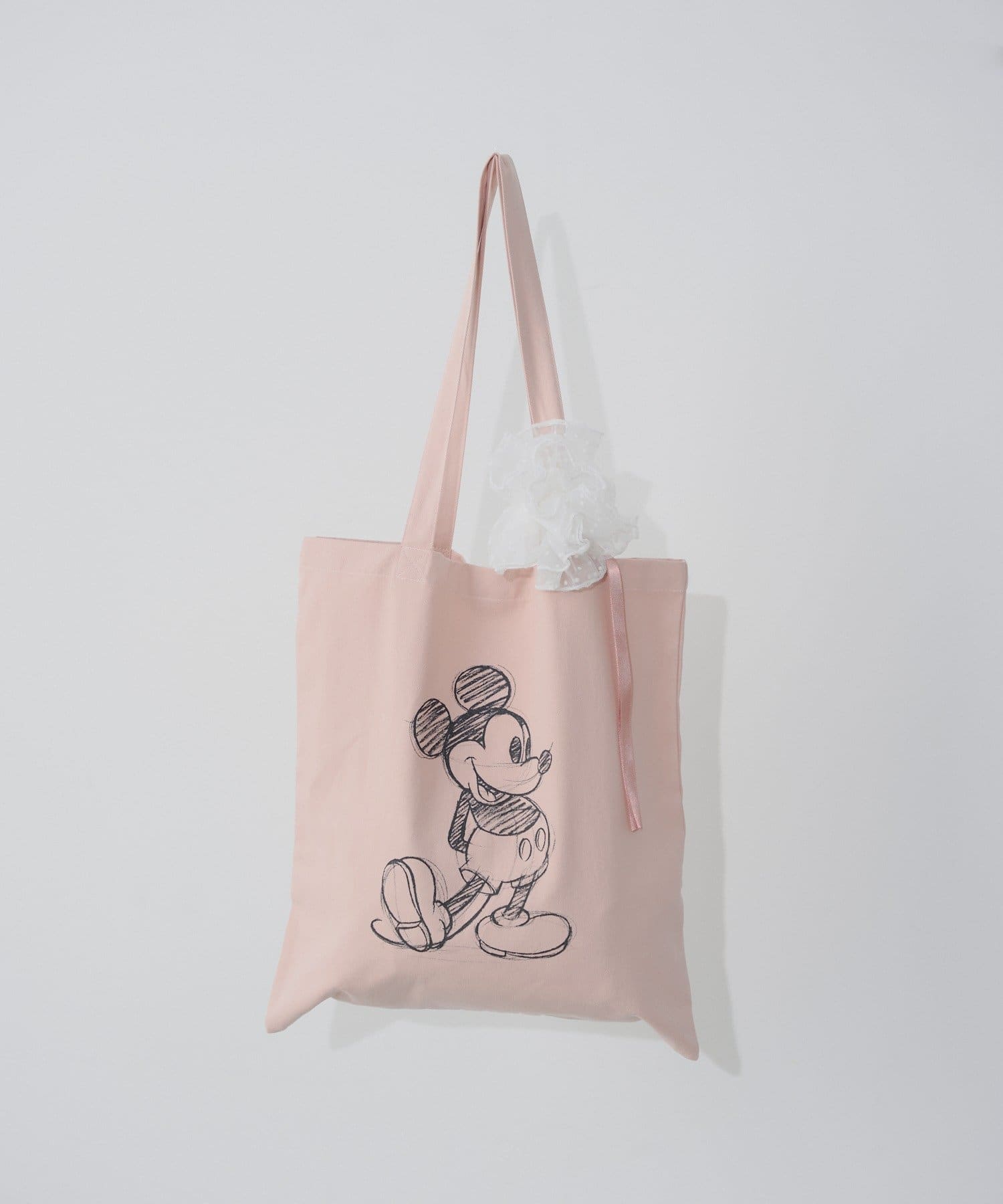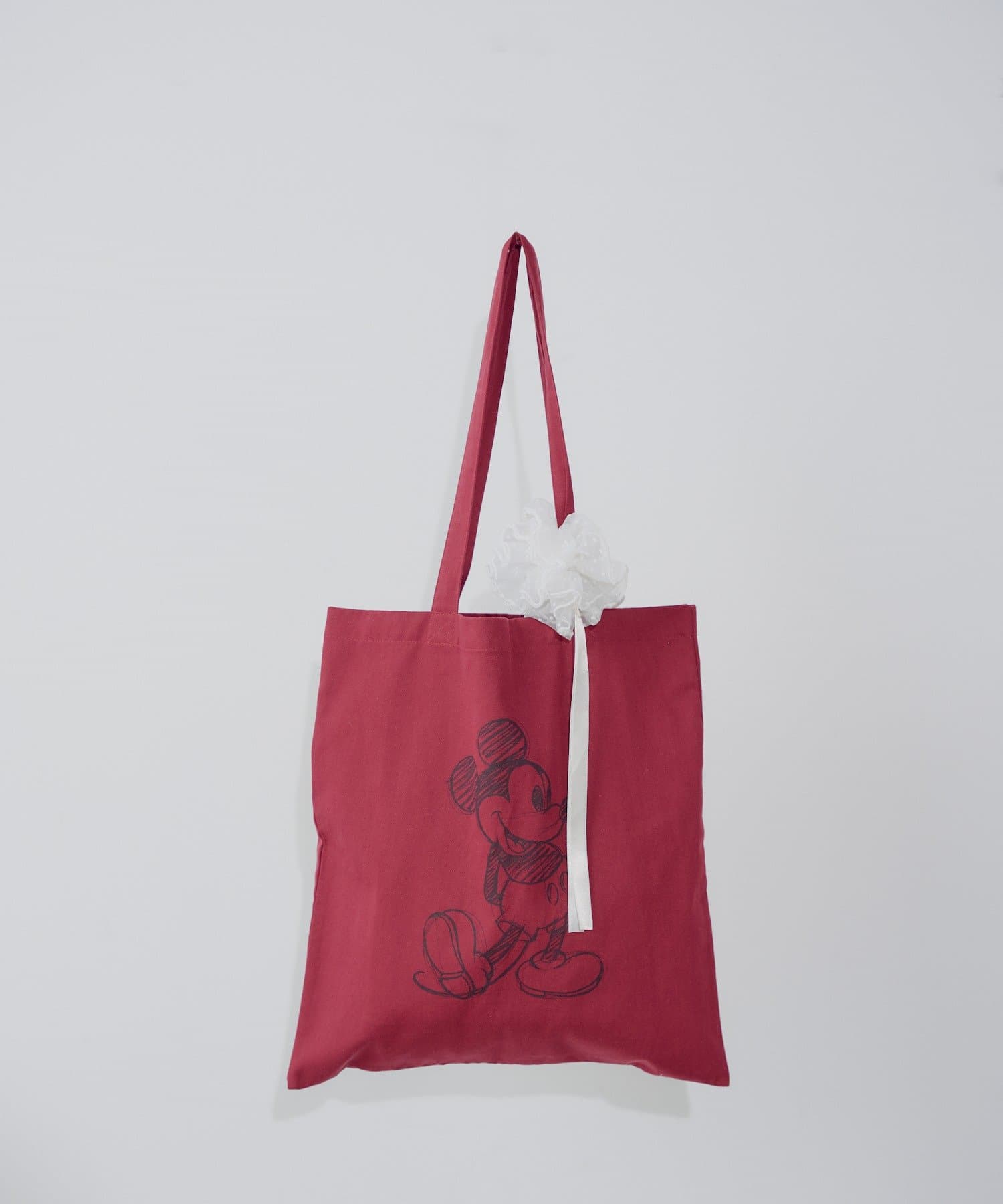 ミッキーマウスがプリントされた、大人可愛いトートバッグシュシュセット