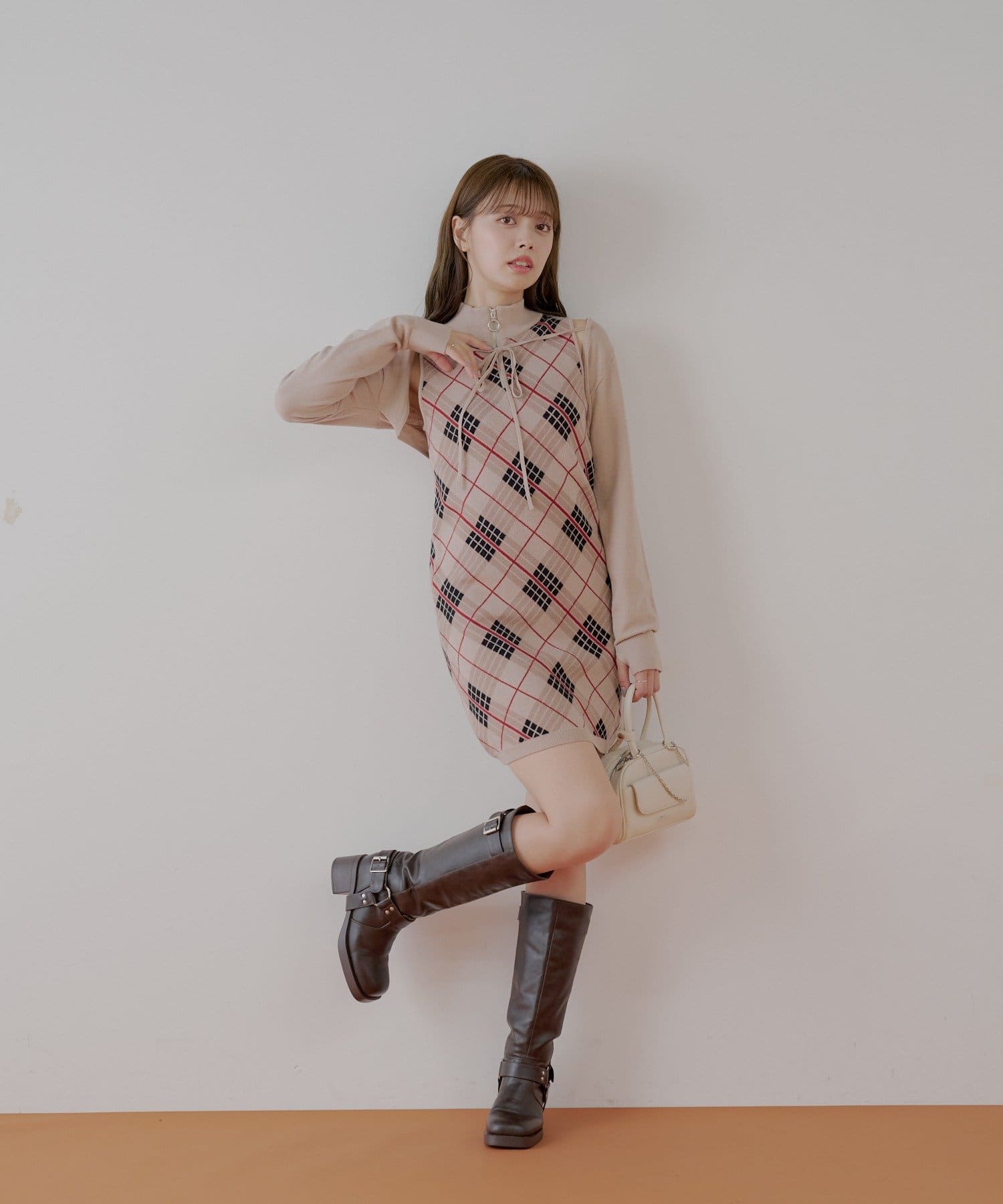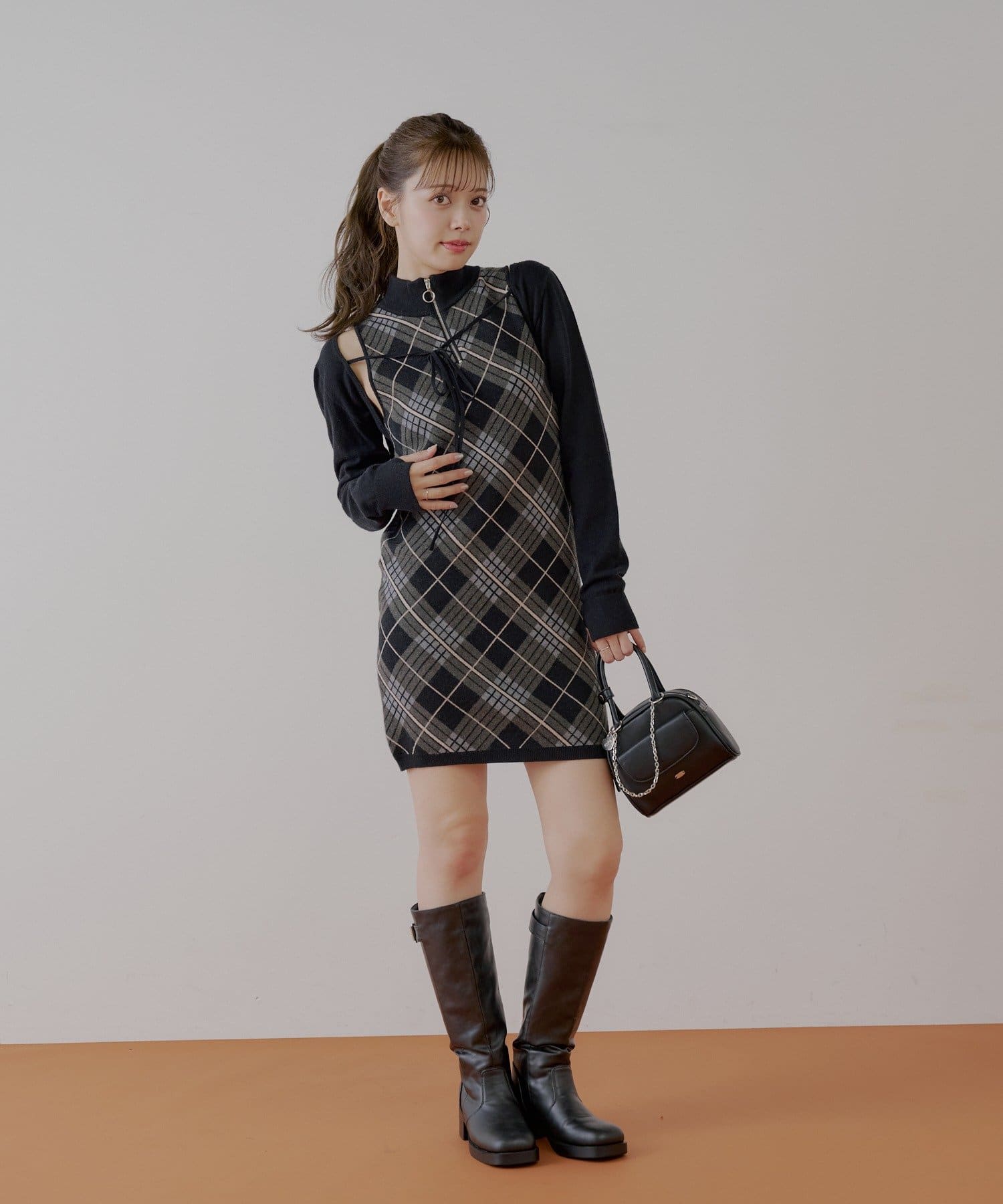 【Chico】ボレロセットチェックアメスリミニワンピース