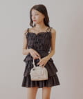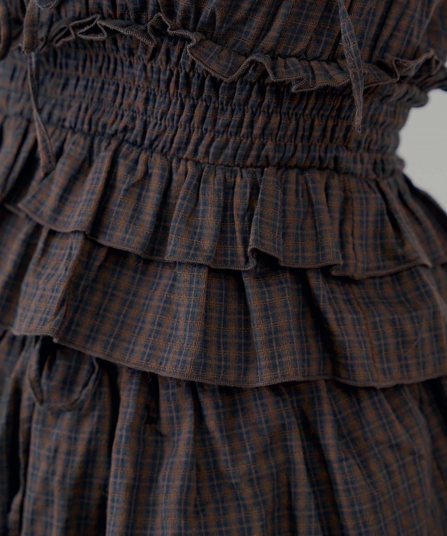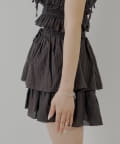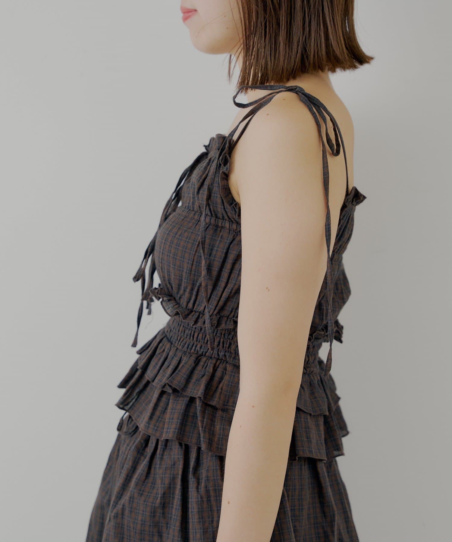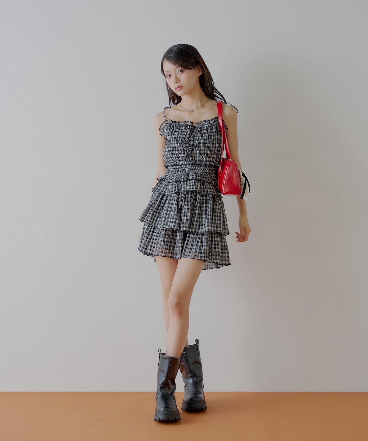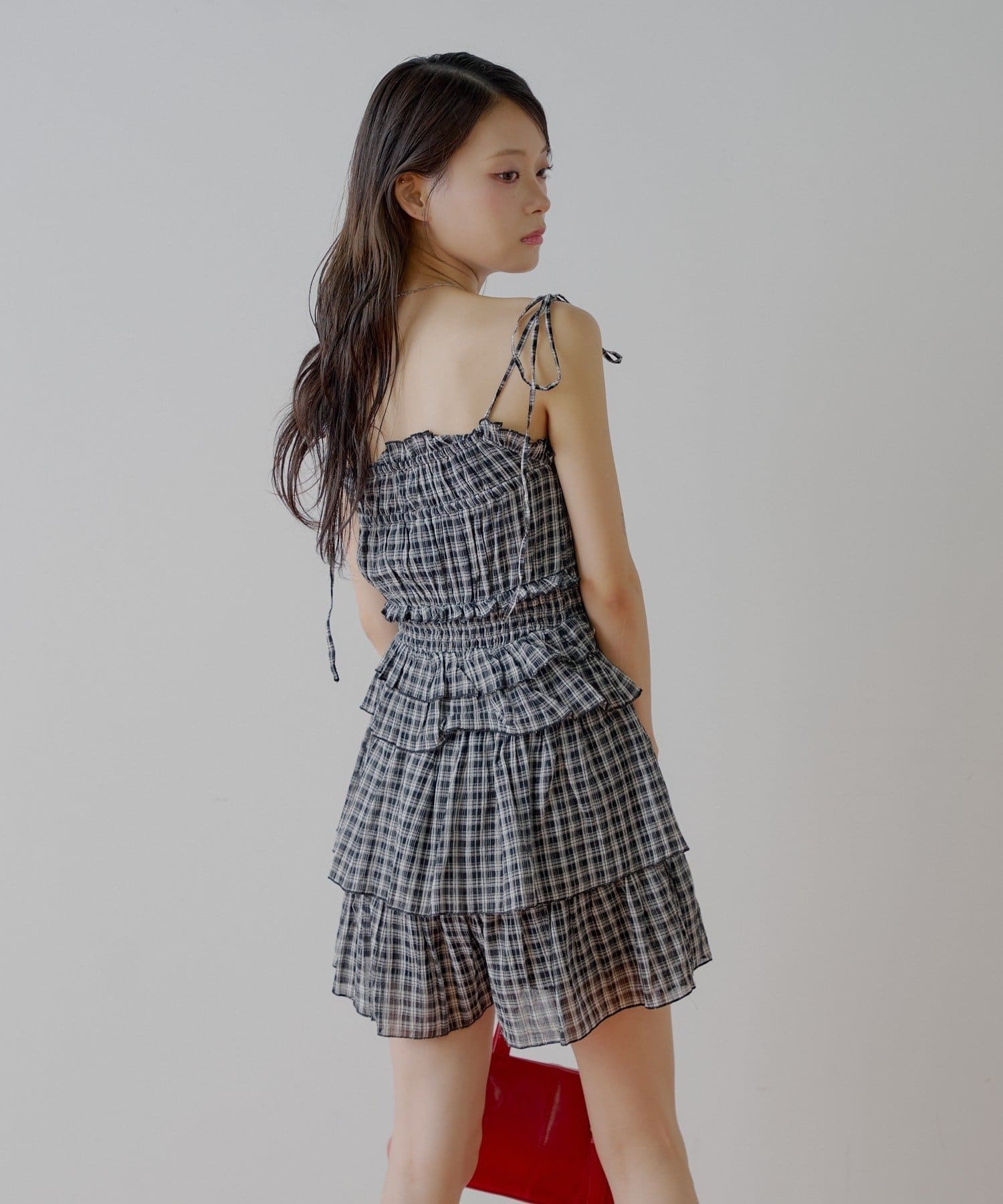 ・胸元のシャーリングとリボンがフェミニンなアクセントをプラスしてくれます。