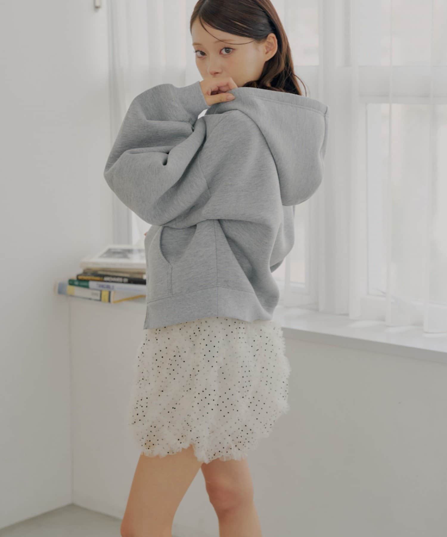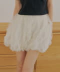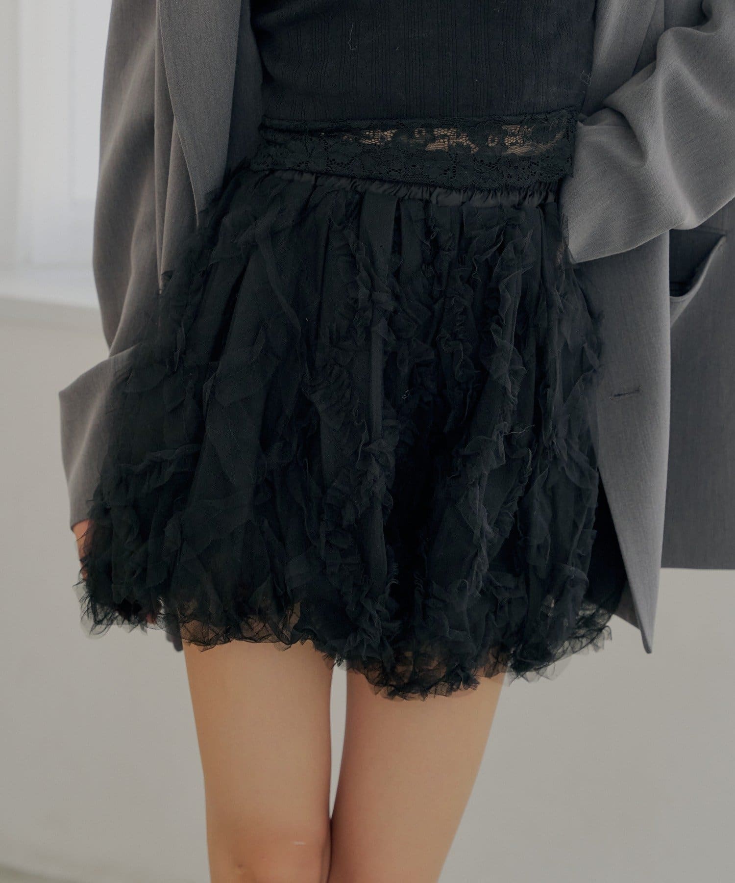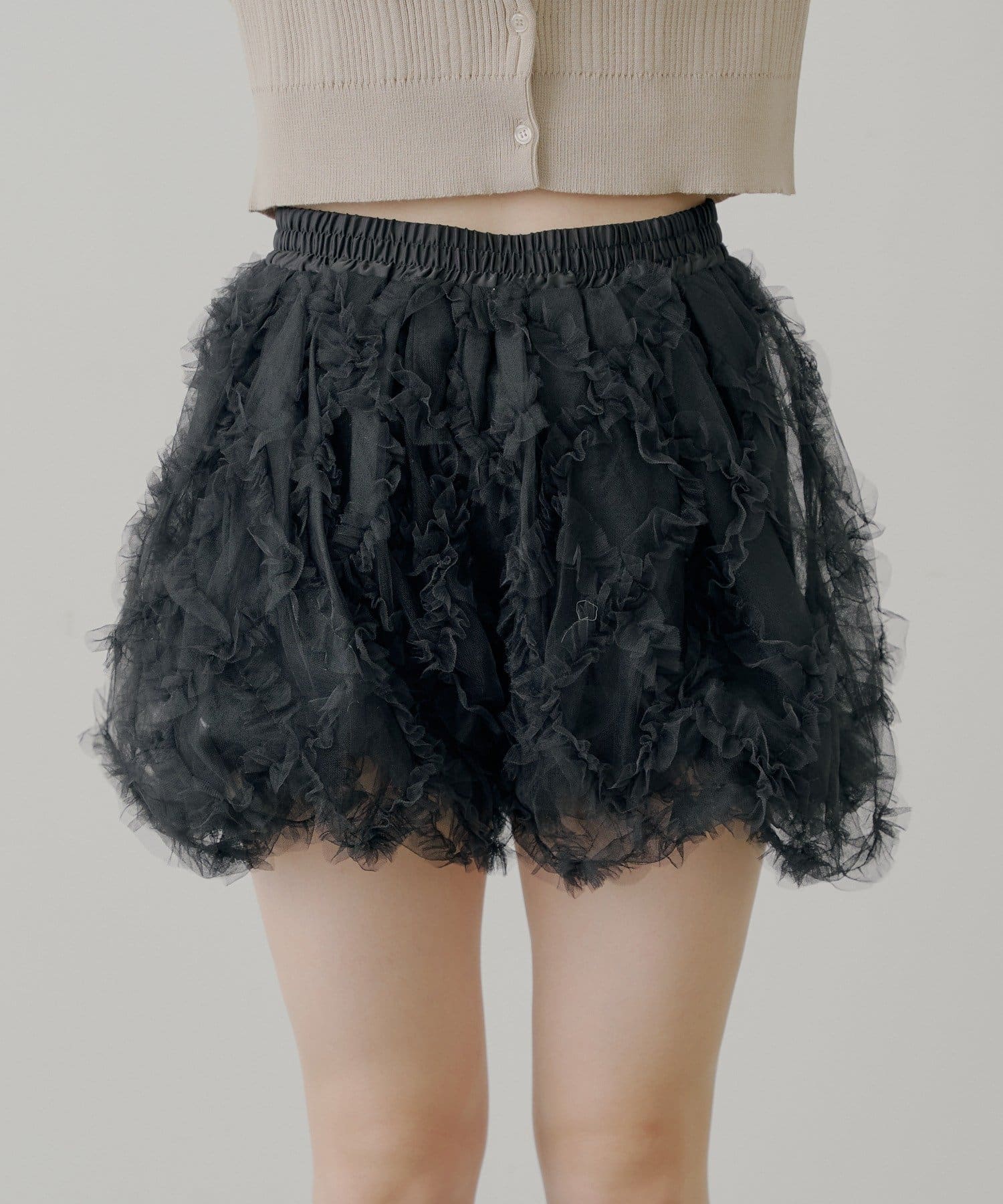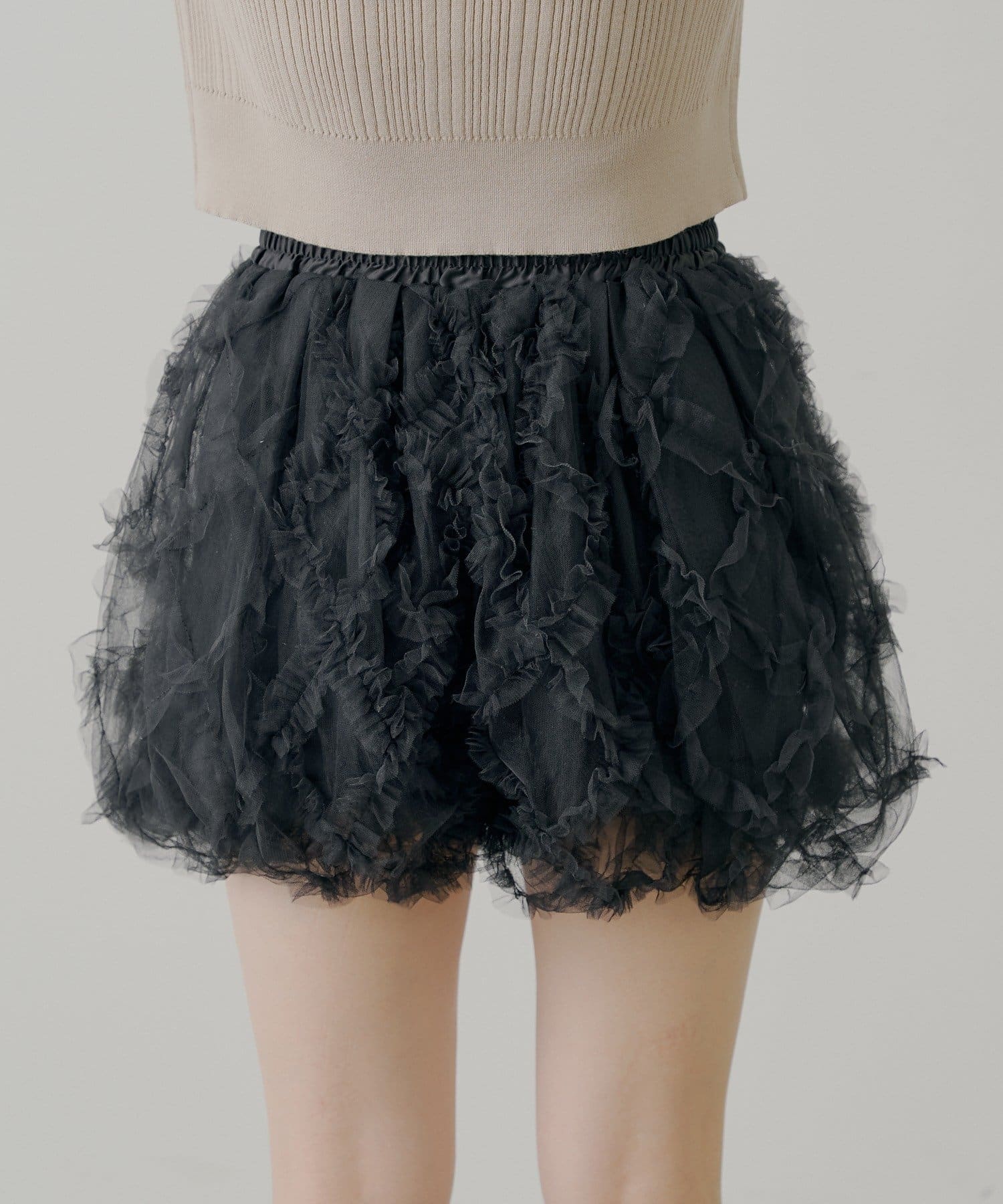 ・繊細なチュールを贅沢に重ねた、ティアードバルーンショートパンツ。