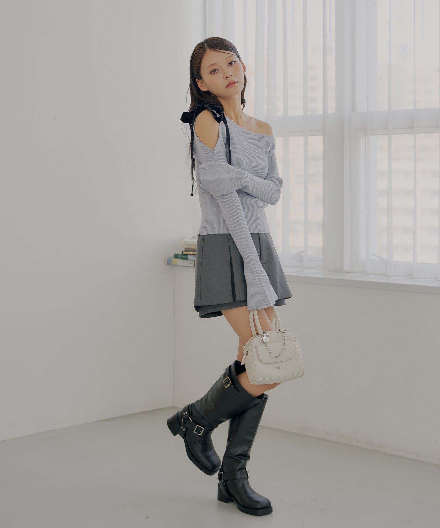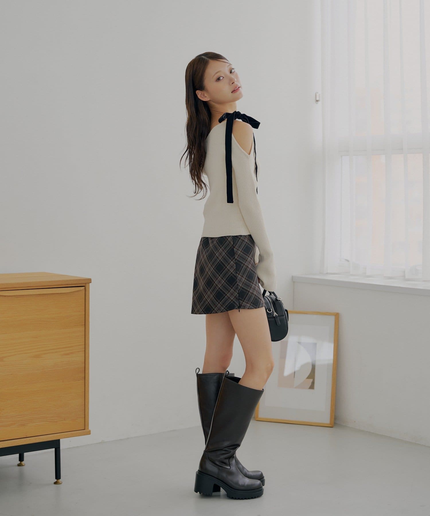 ・ミニボトムと相性抜群でフェミニンなスタイルに仕上がります。