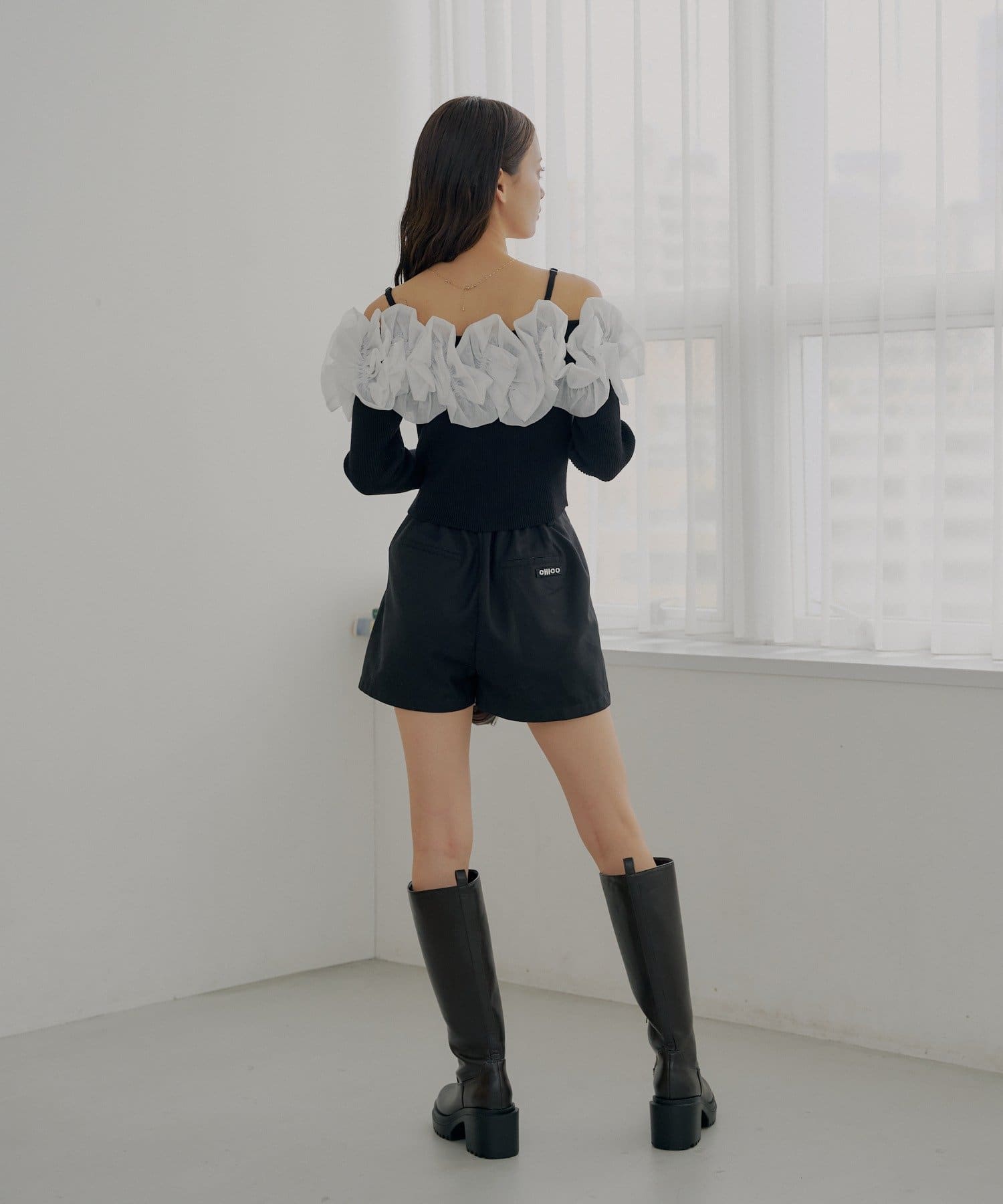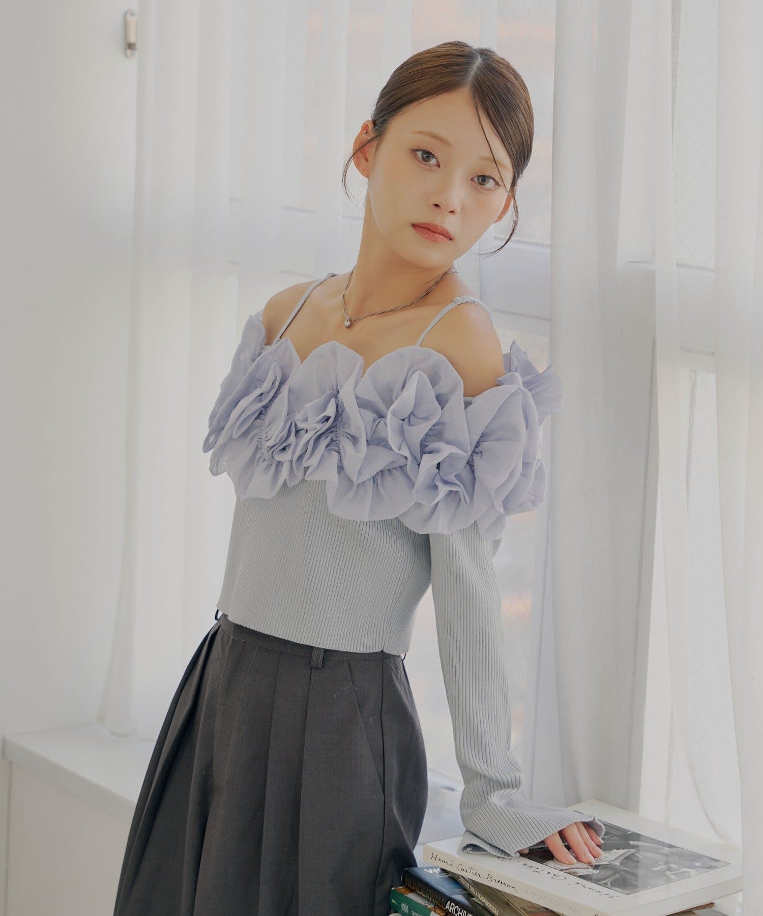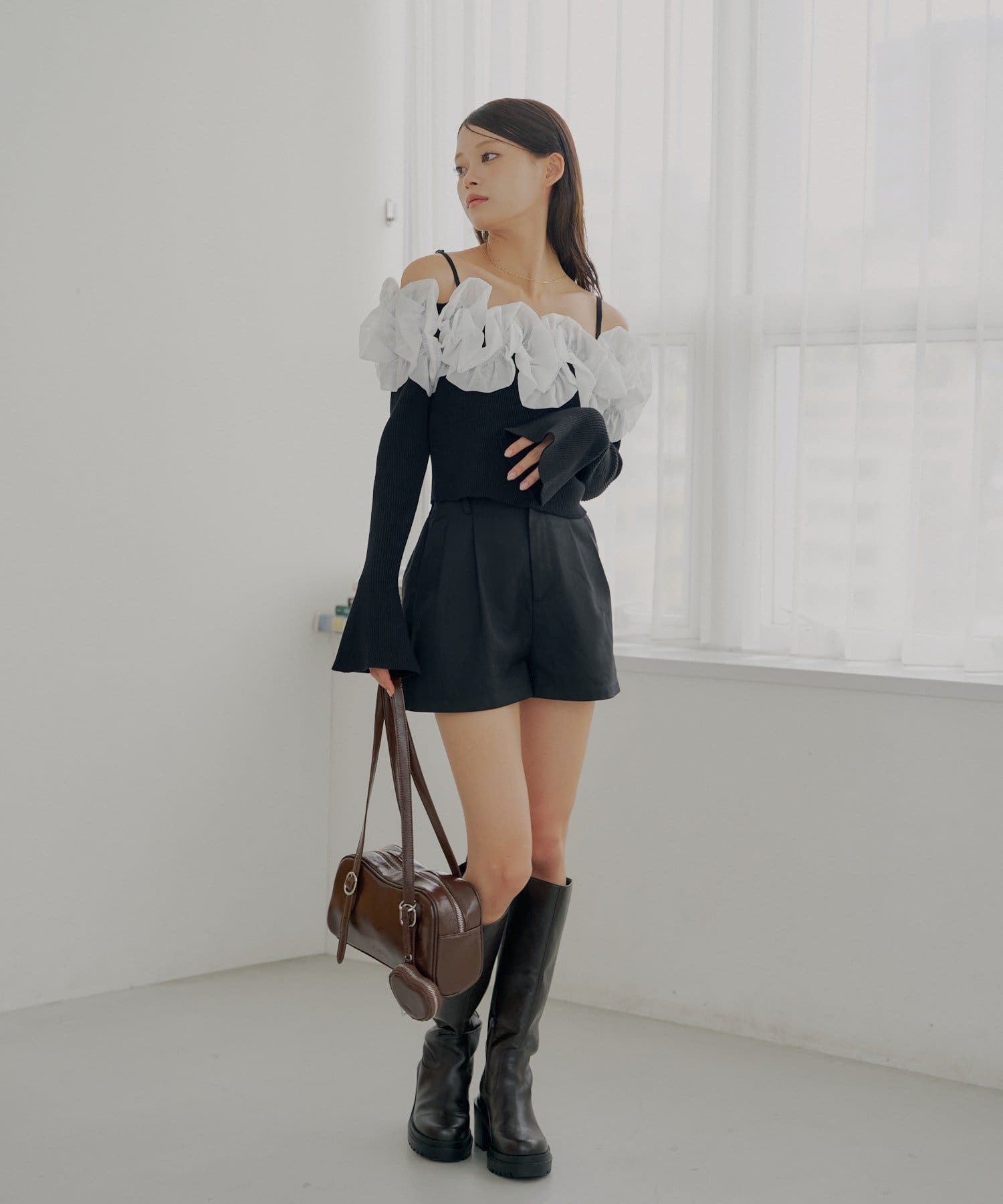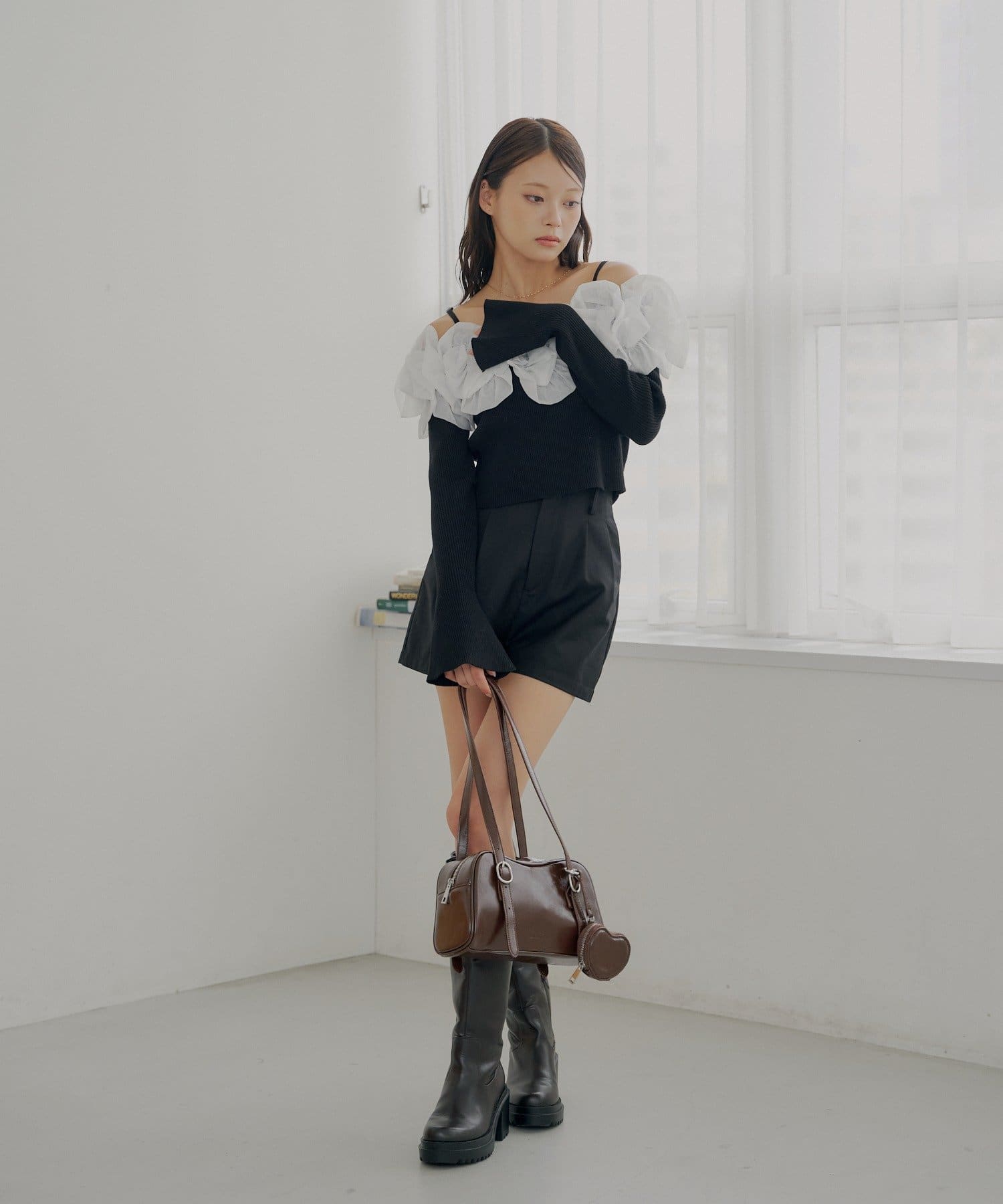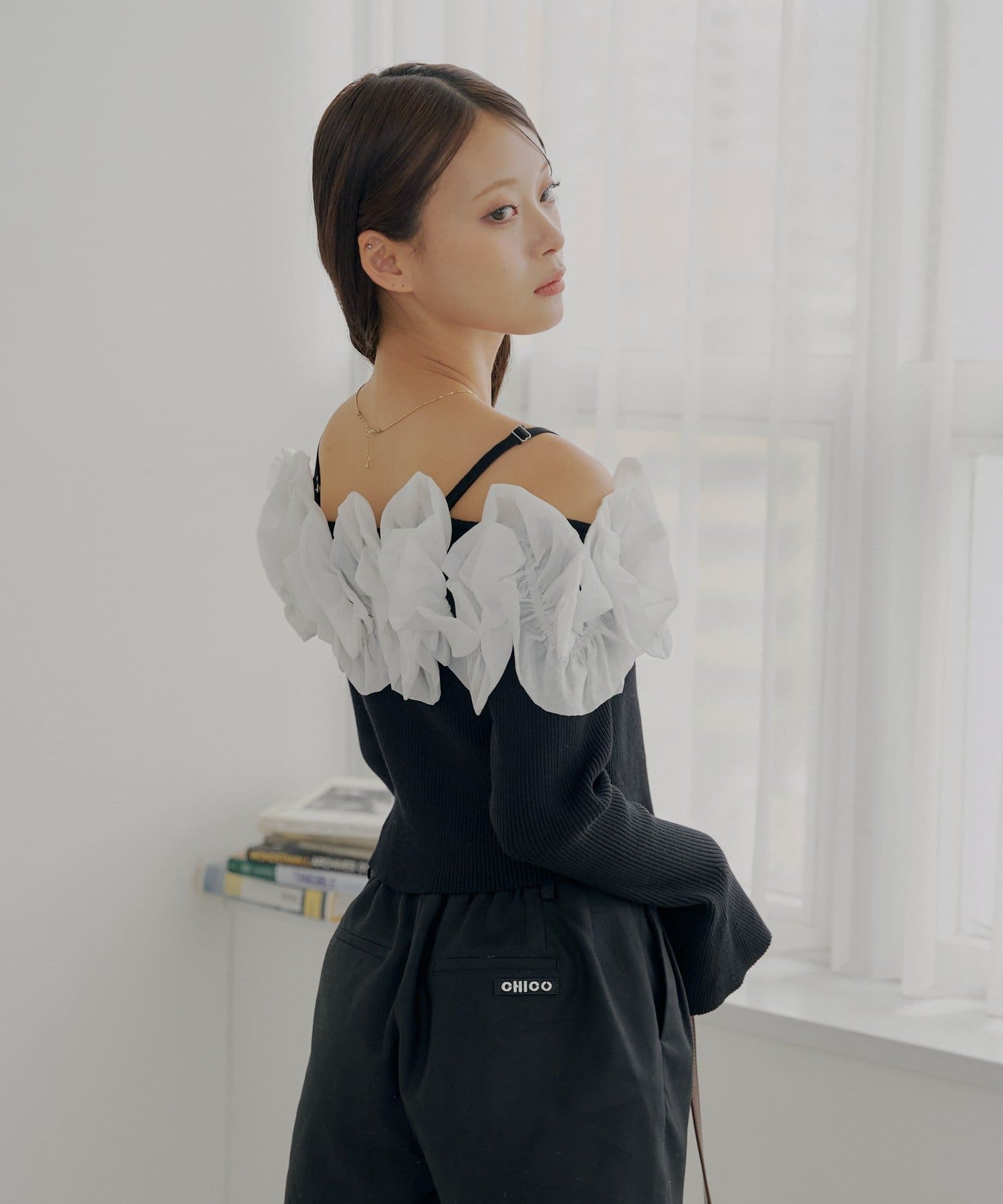 ・すっきりとしたリブニットと、ボリュームのあるフリルとのコントラストが魅力です。
