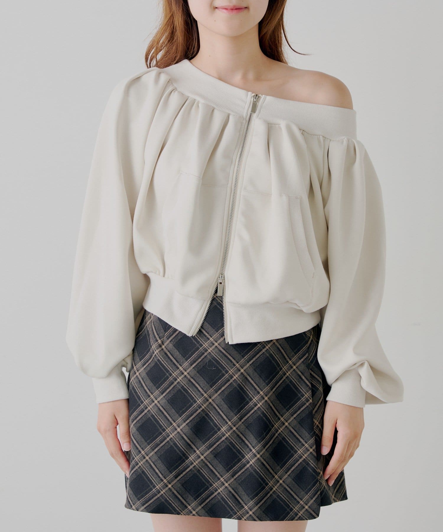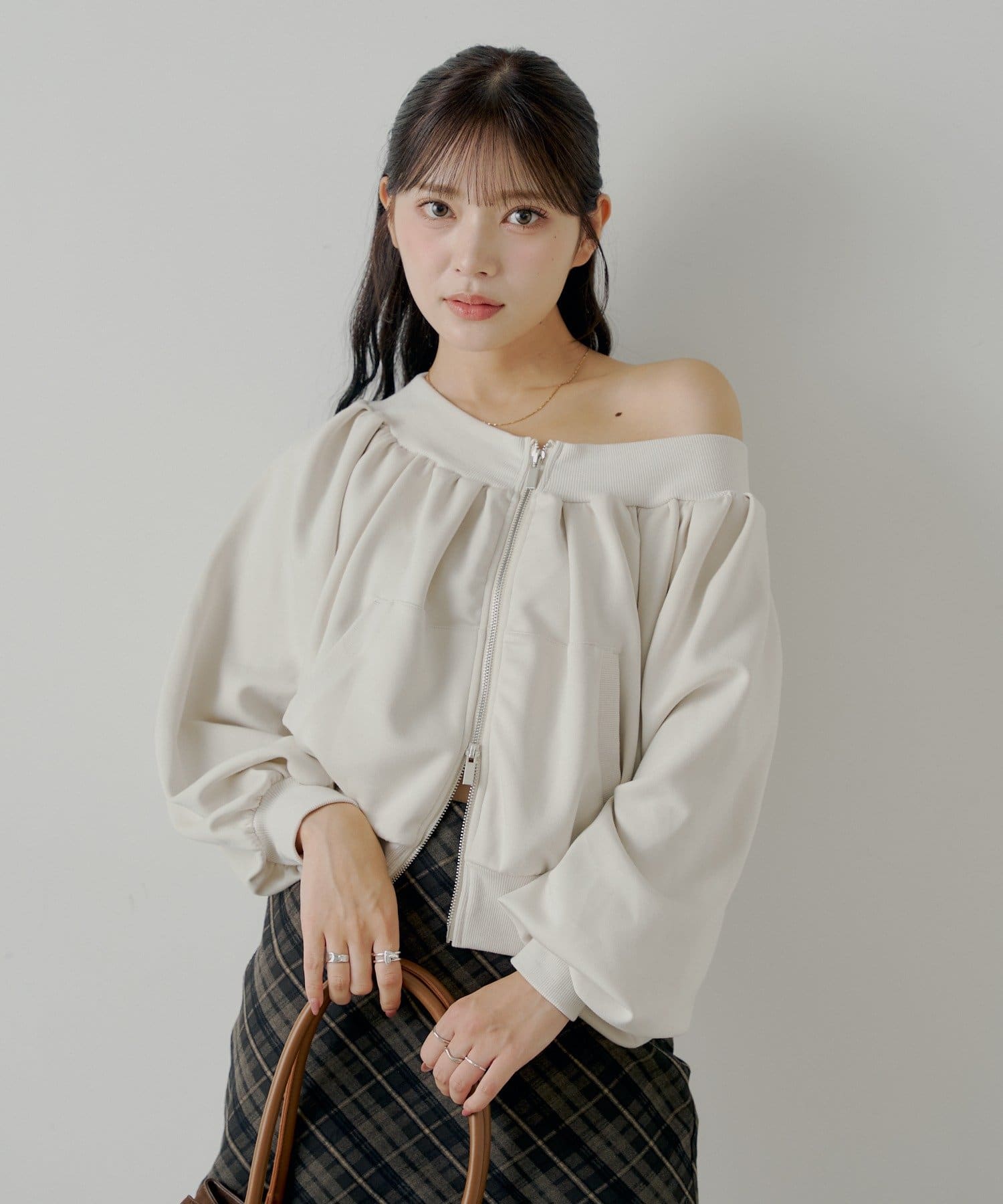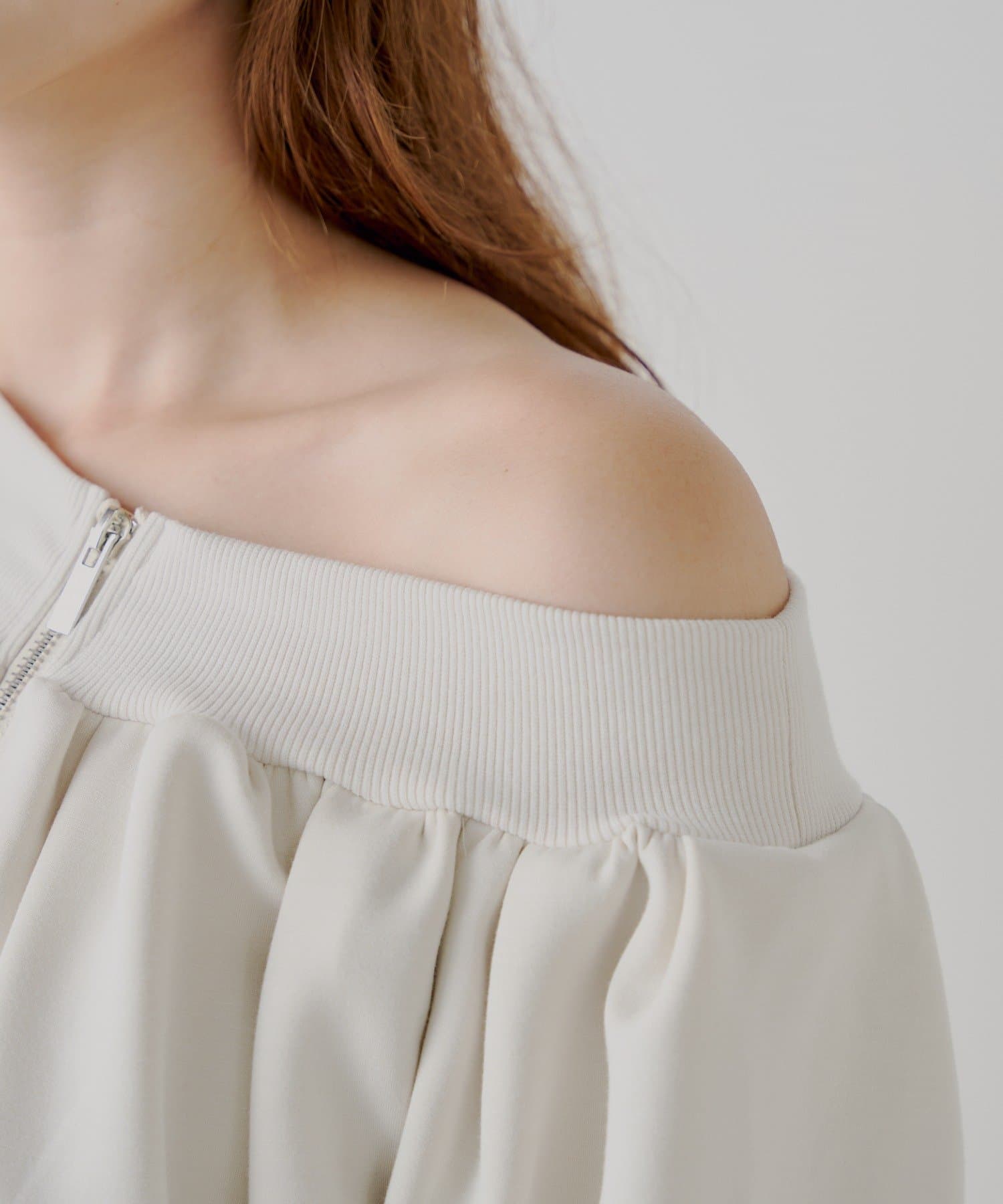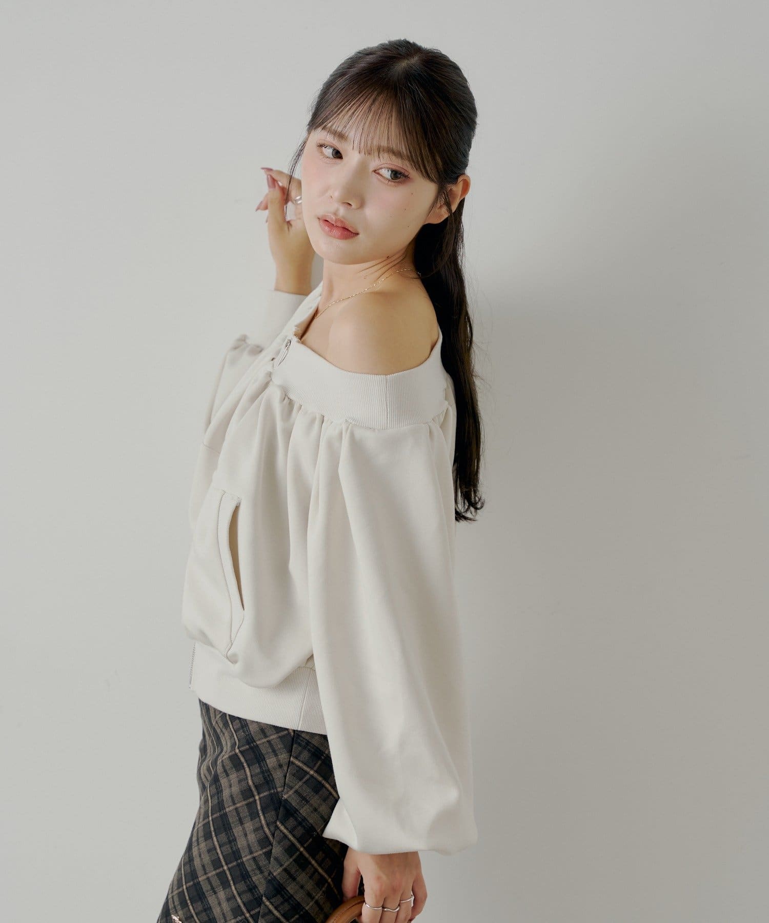 ・ワンショルダーとしてもオフショルダーとしても着れるWジップスウェット。