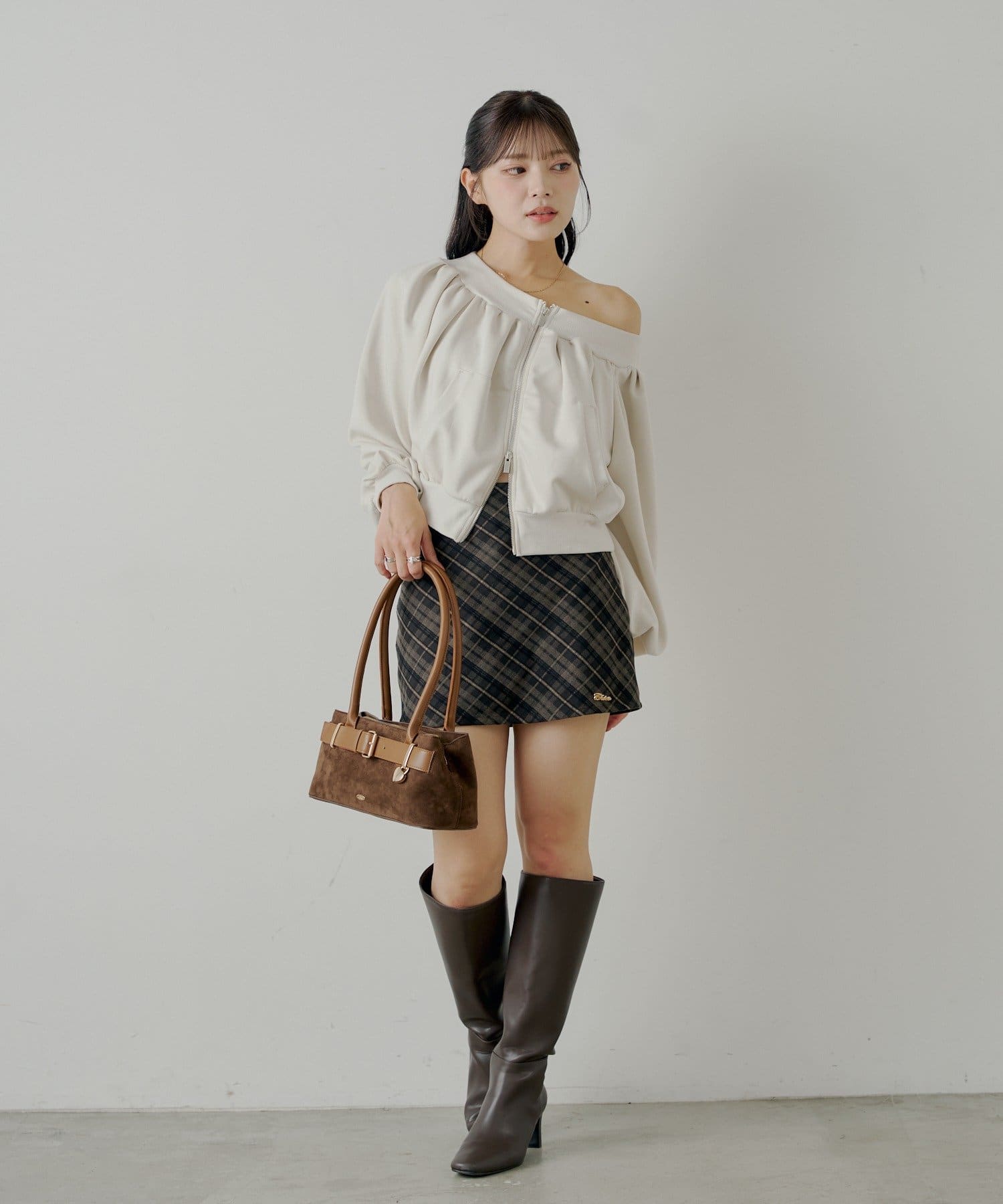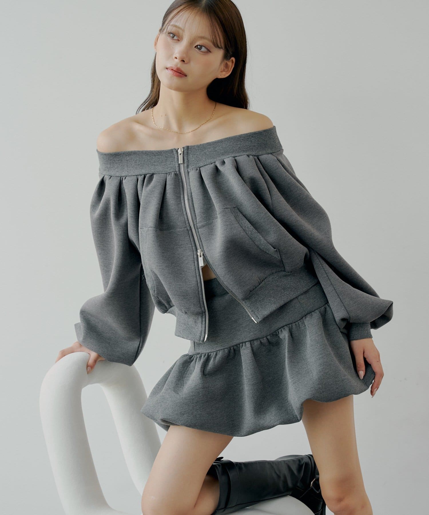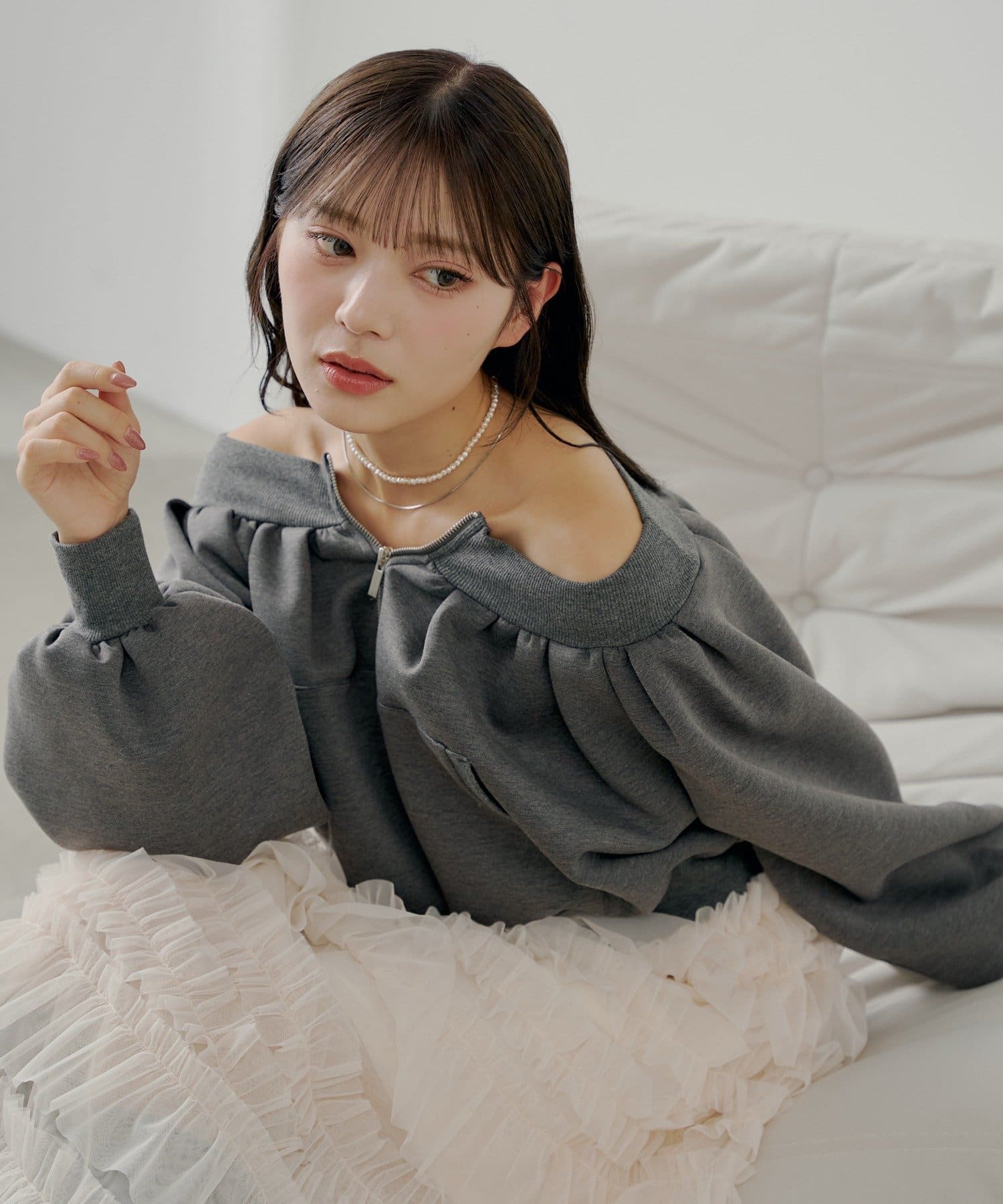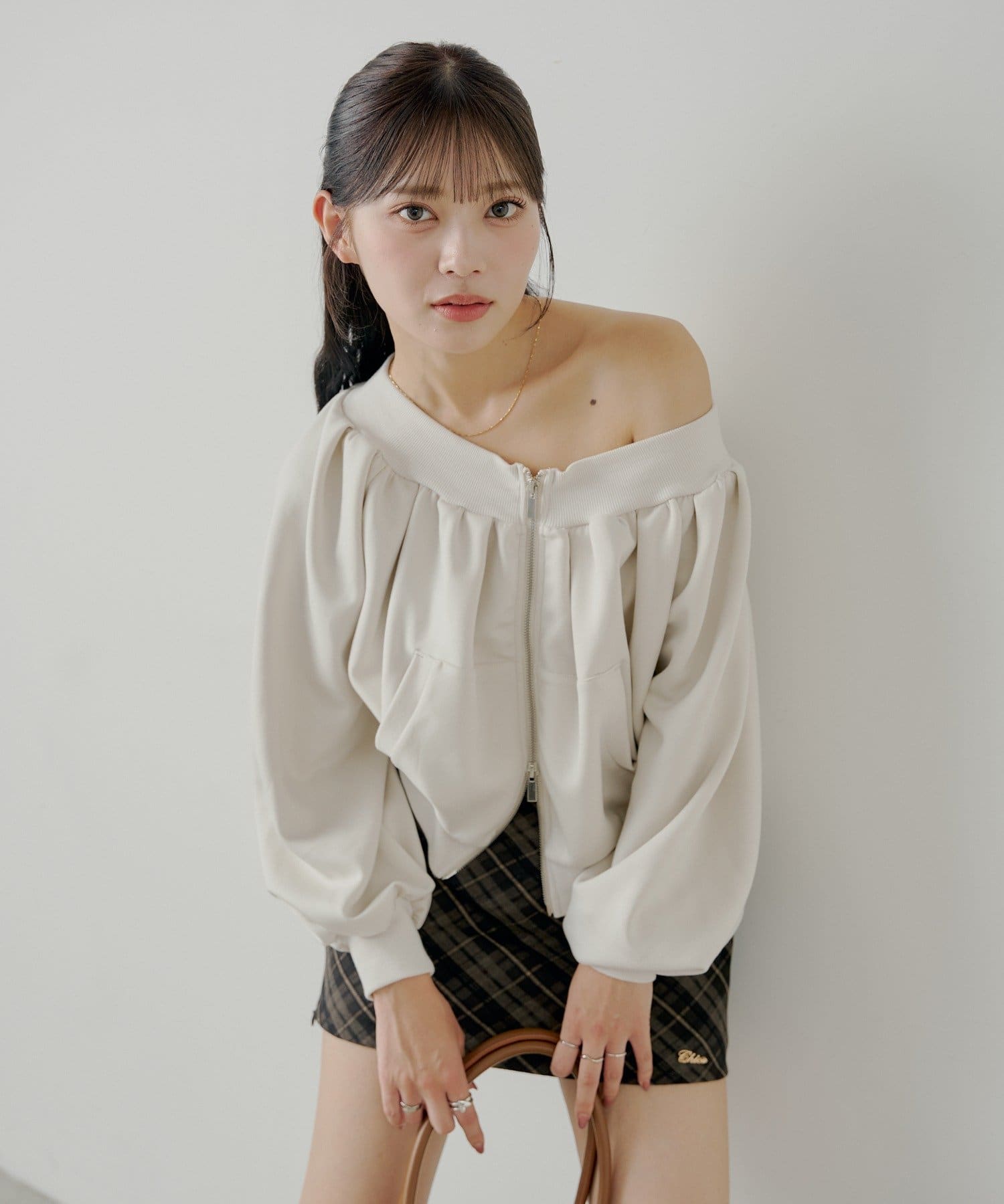・ワンショルダーとしてもオフショルダーとしても着れるWジップスウェット。