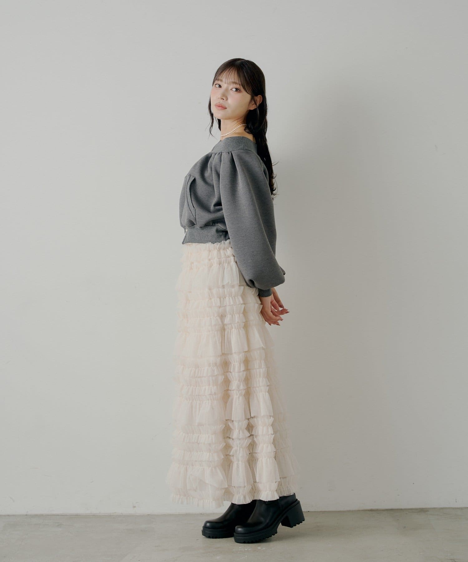 ・ミニボトムと相性抜群で、フェミニンなスタイルに仕上がります。