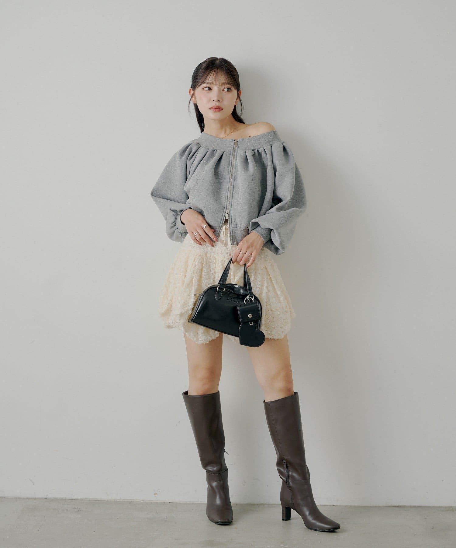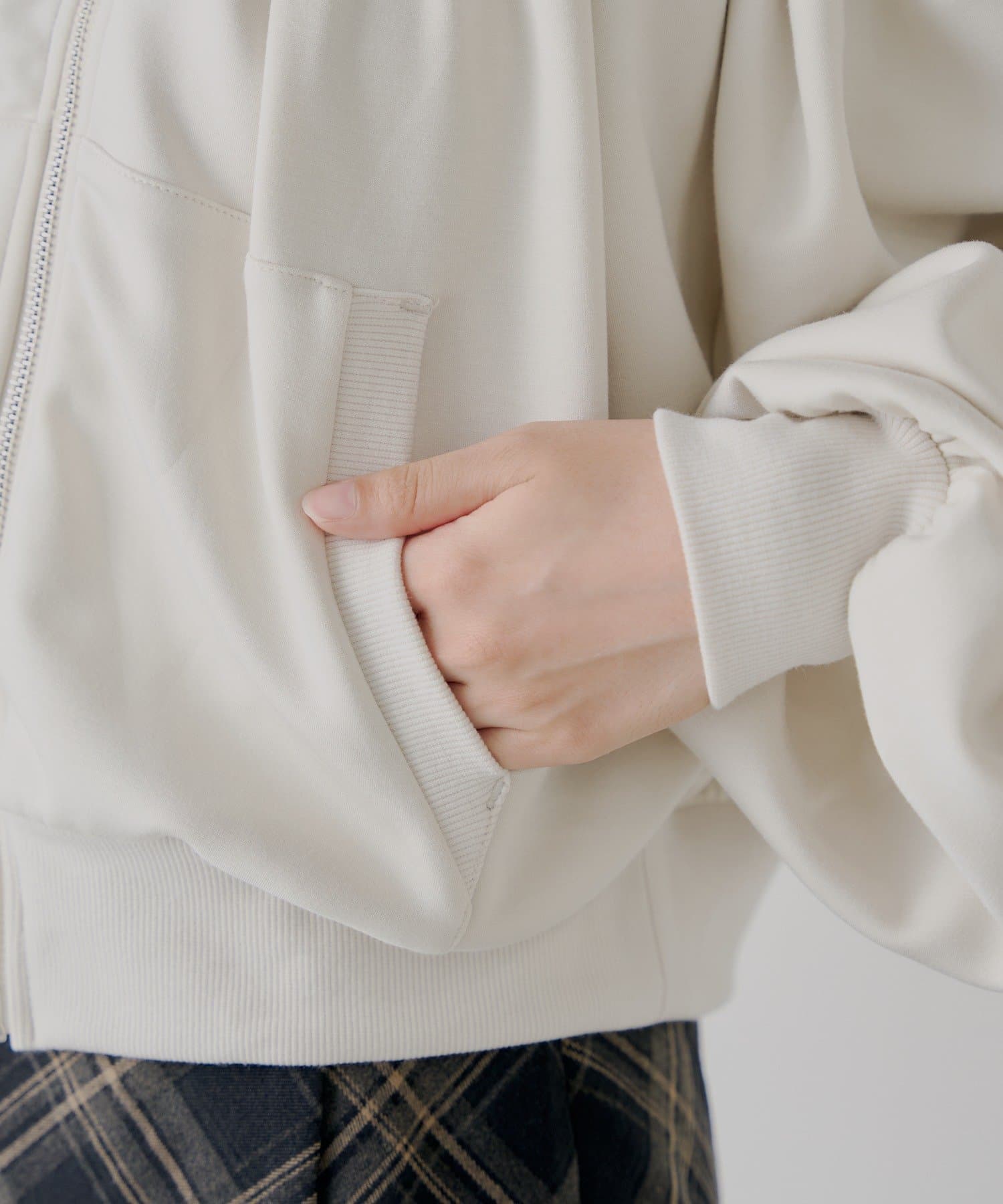 ぽこっとしたシルエットが可愛いスエットです。ダブルジップなのも今どきで使いやすい!丈感がスタイルアップ効果抜群です!