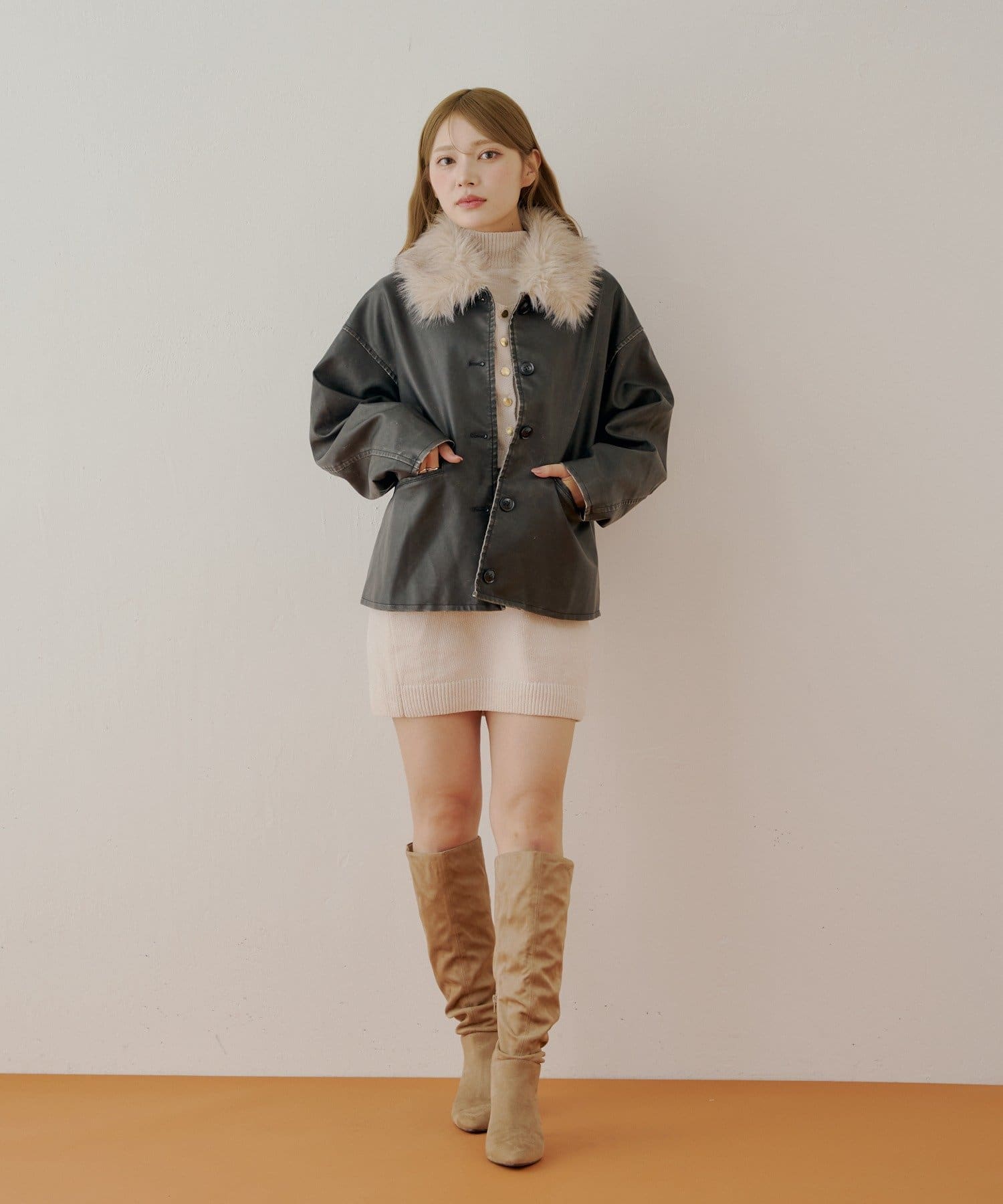 ・取り外し可能なファー襟は、スタイリングに合わせてアレンジを楽しめます。