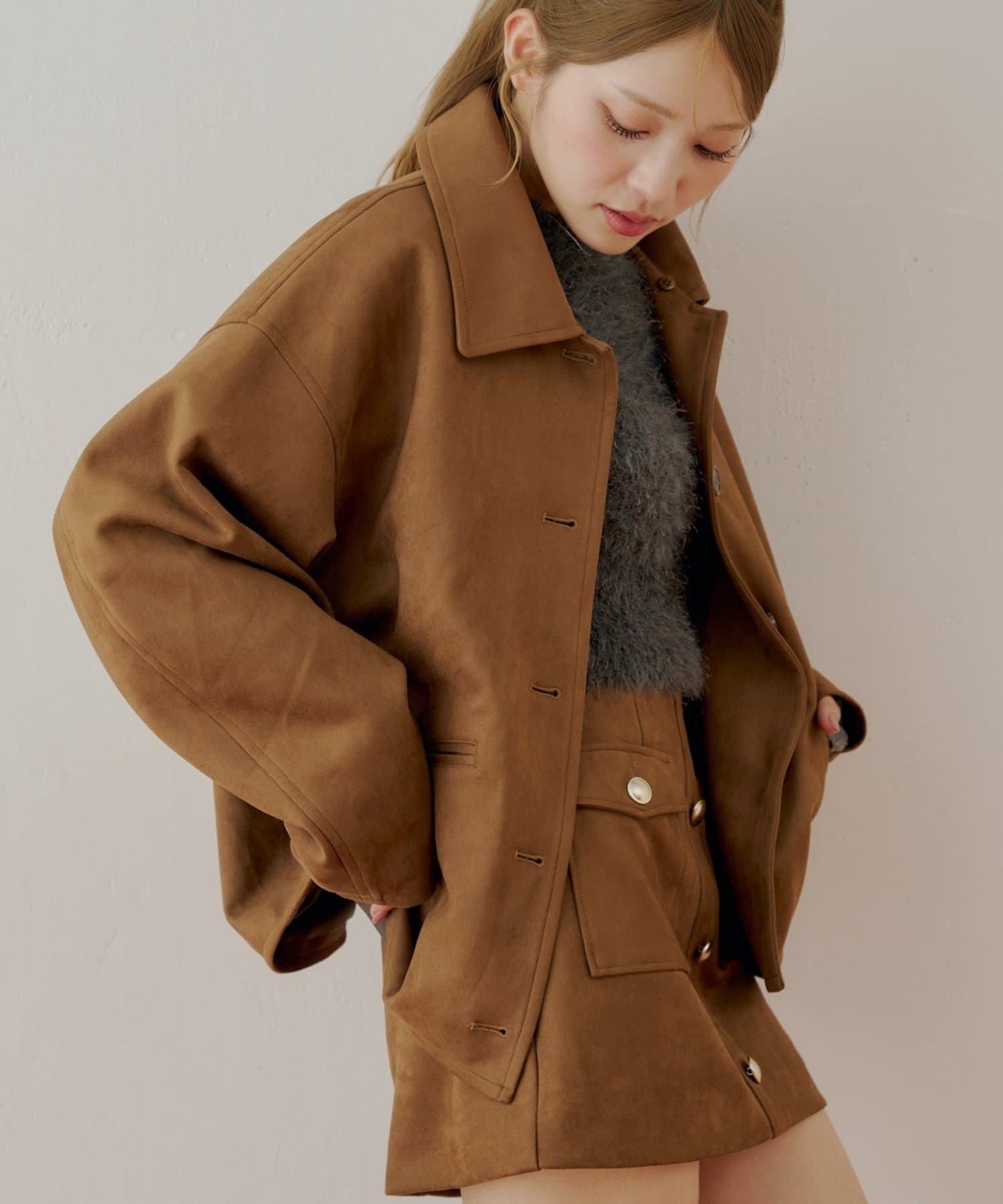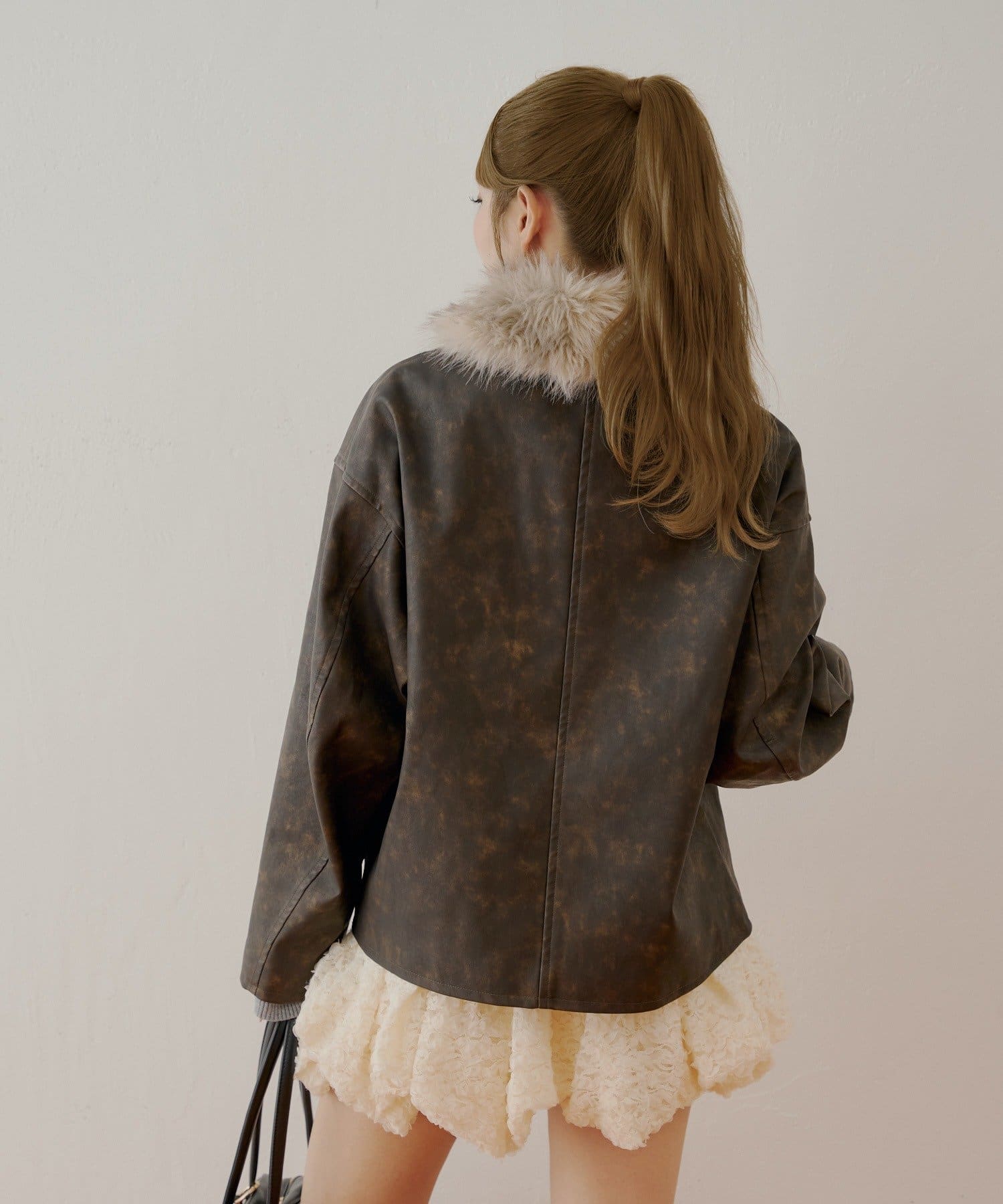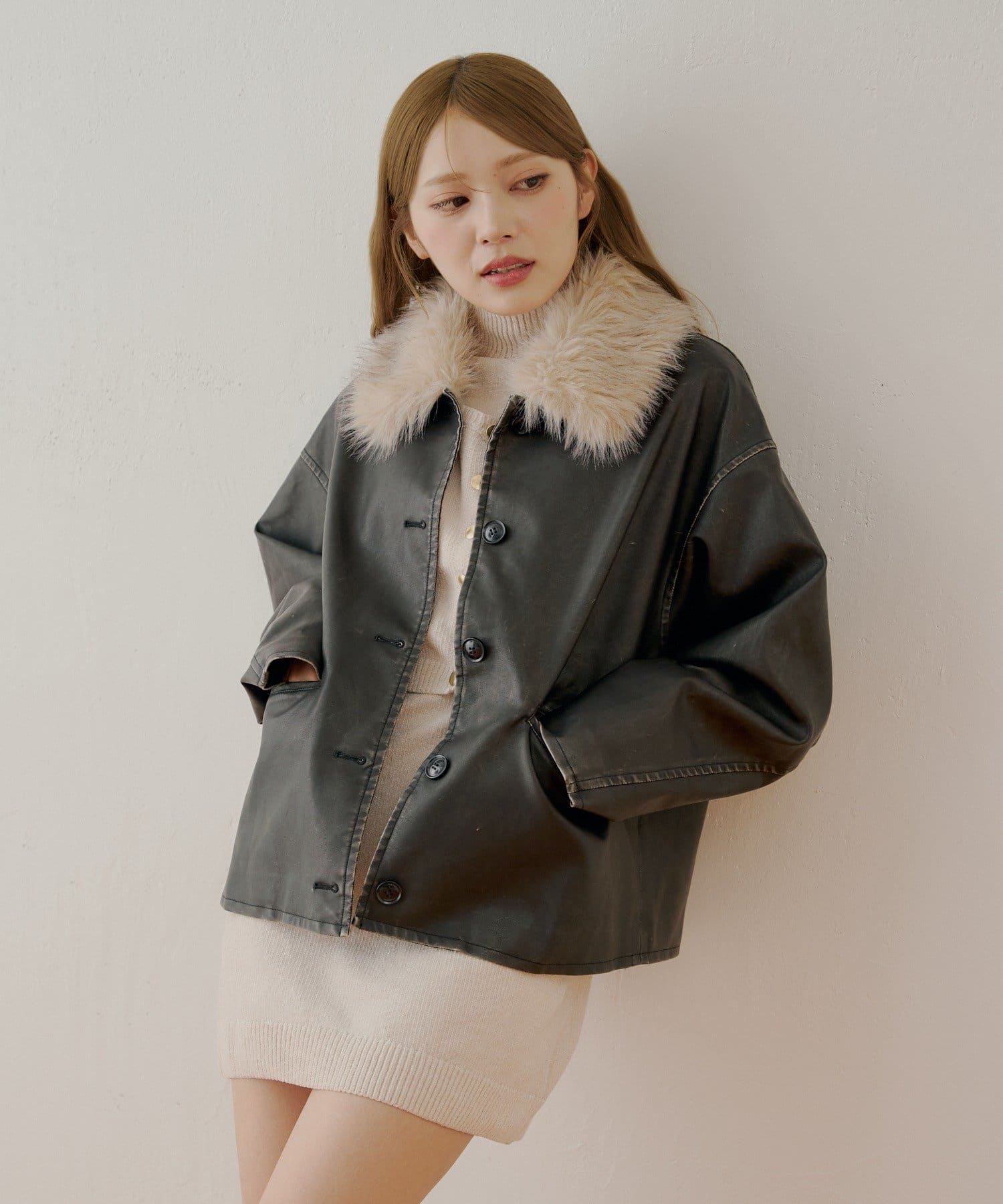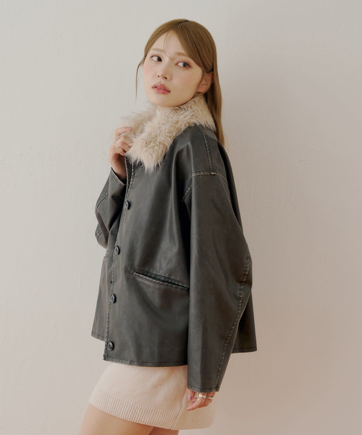 ふんわりと柔らかなファー襟が目を惹くレザールーズシャツジャケット