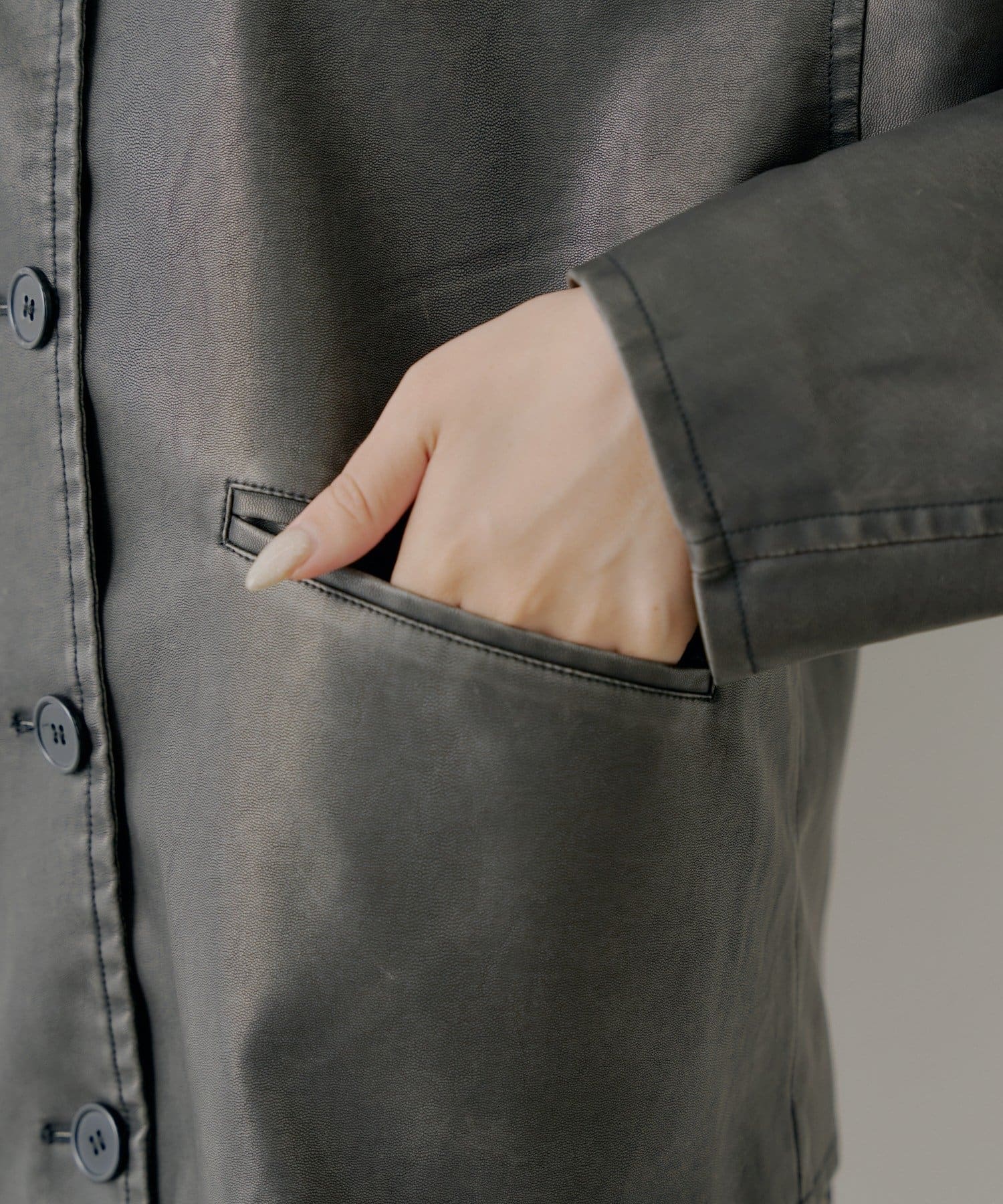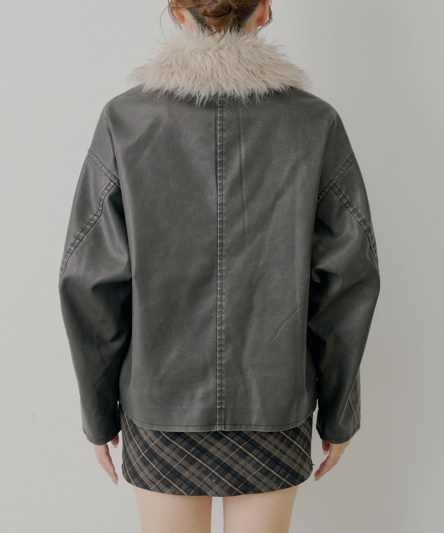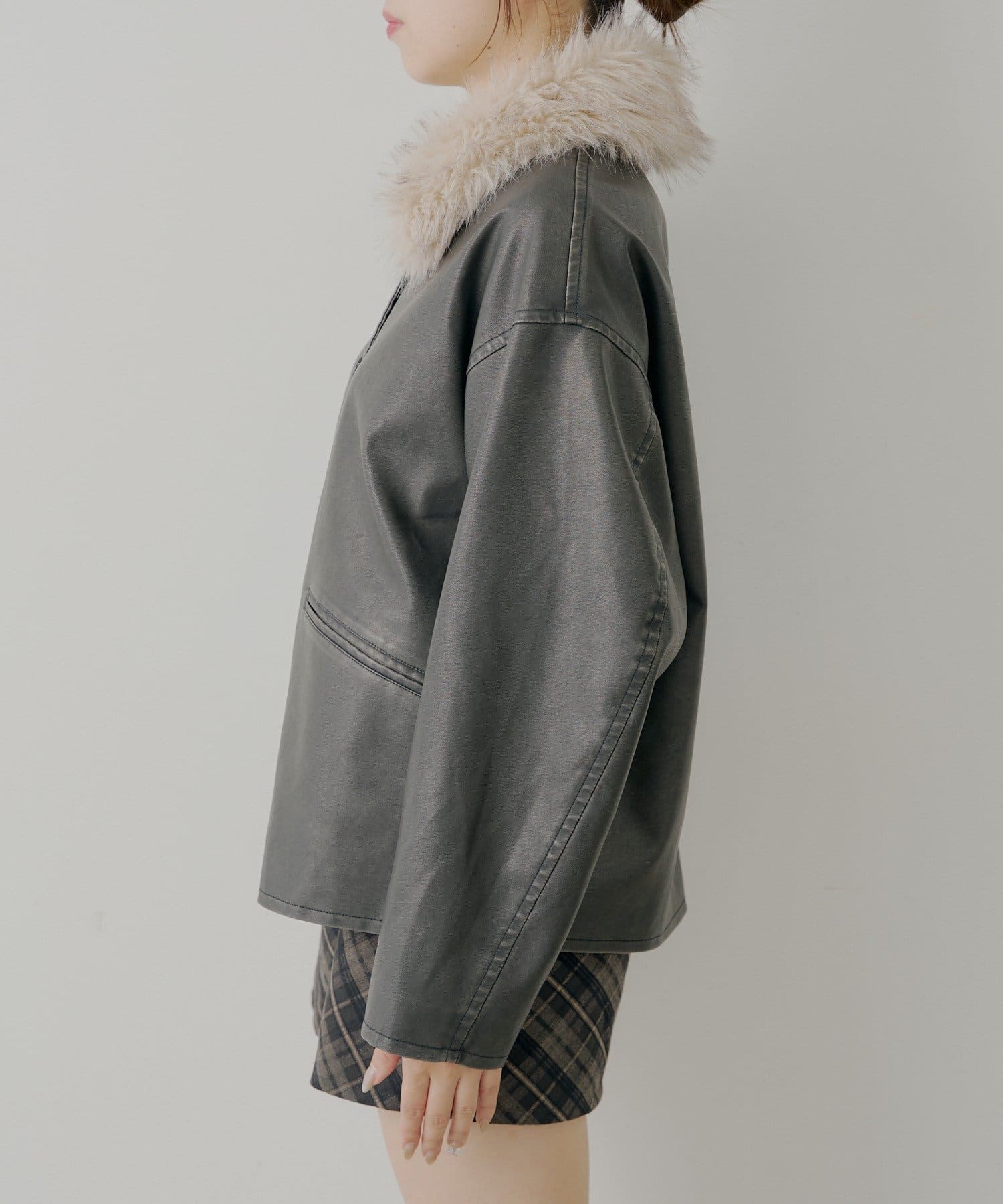 ファー取り外しレザールーズシャツジャケット