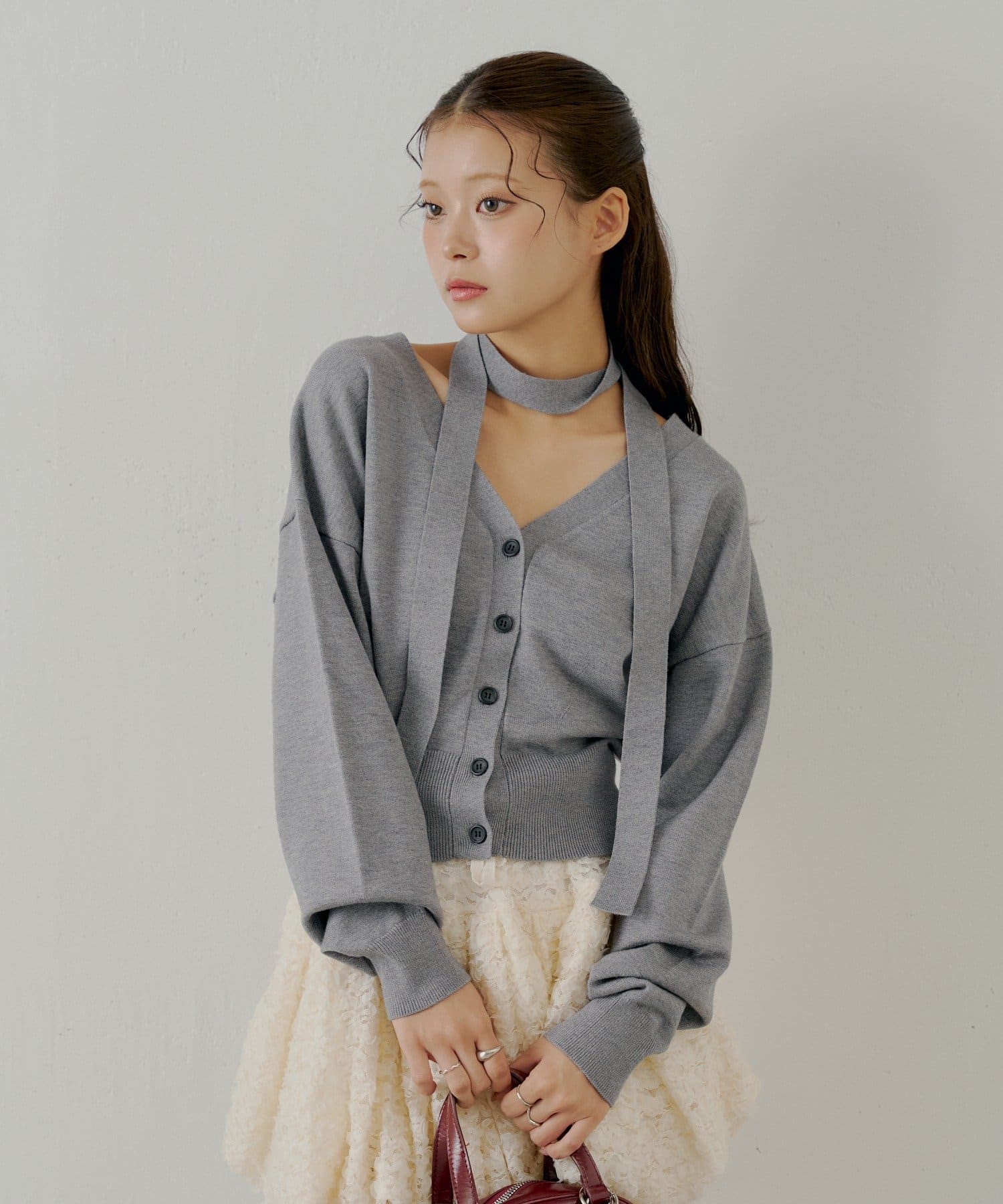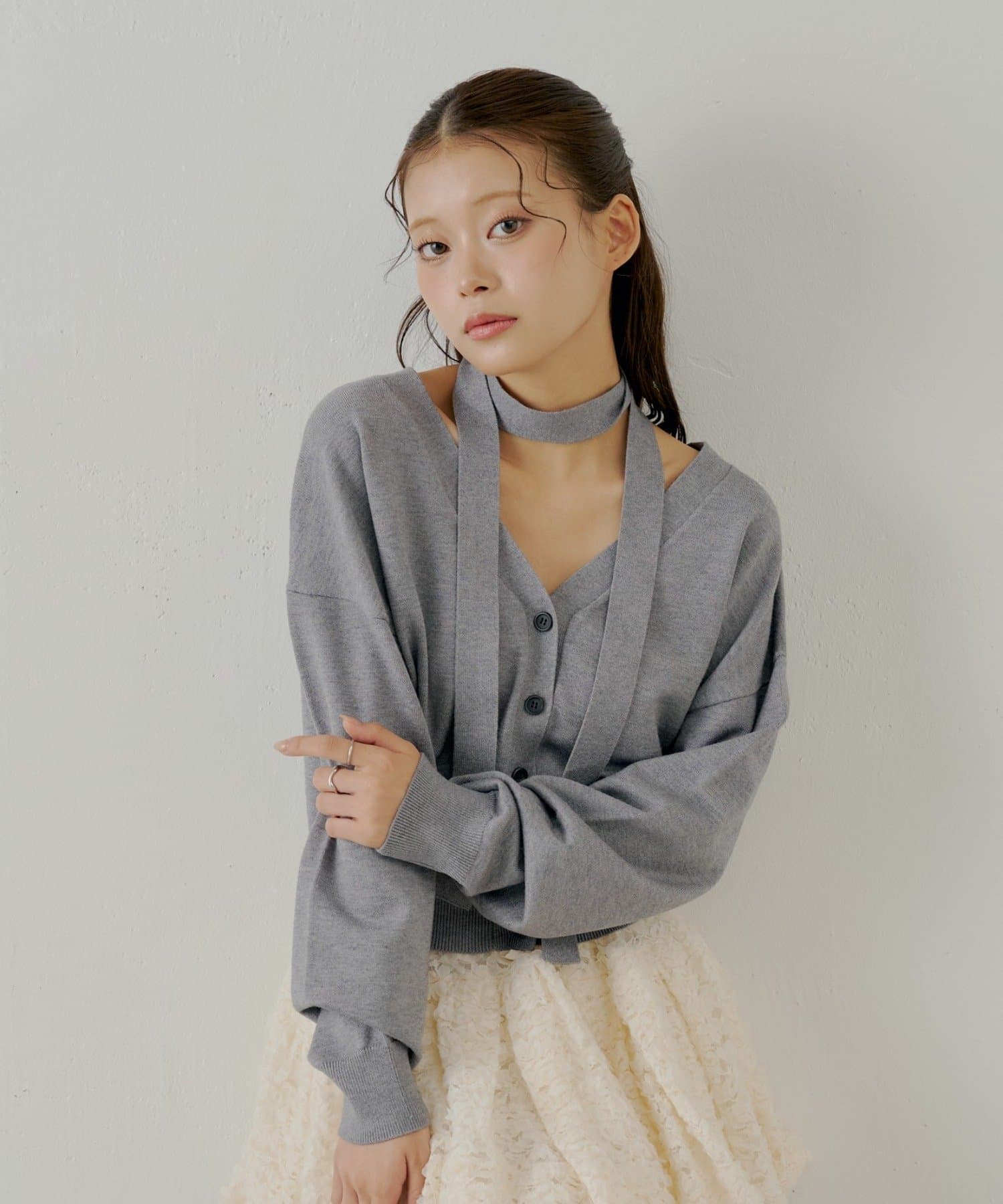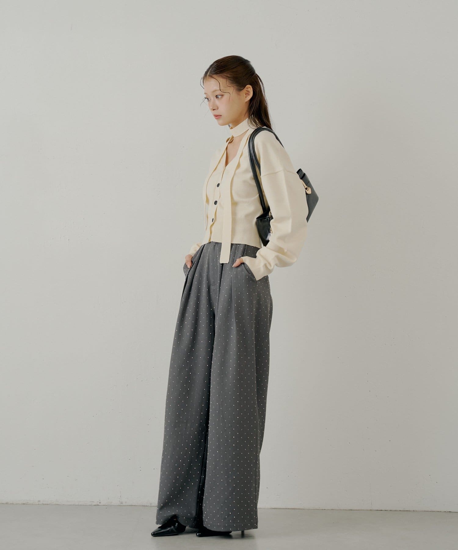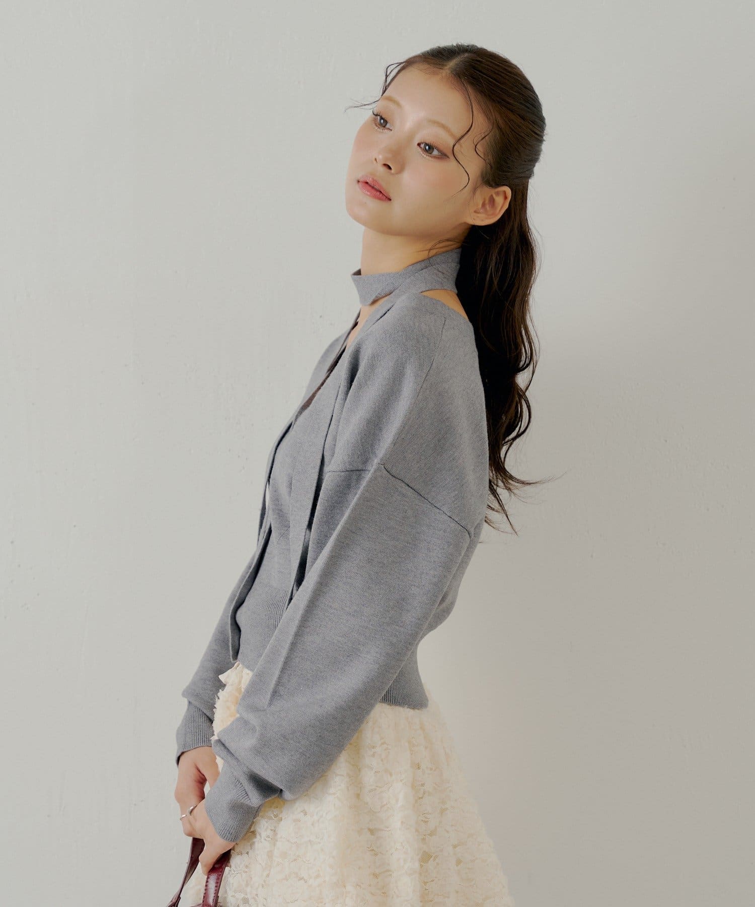 ・取り外し可能なタイは、首元に巻いたり、そのまま垂らしたりと、アレンジ次第で様々な表情を楽しめます。