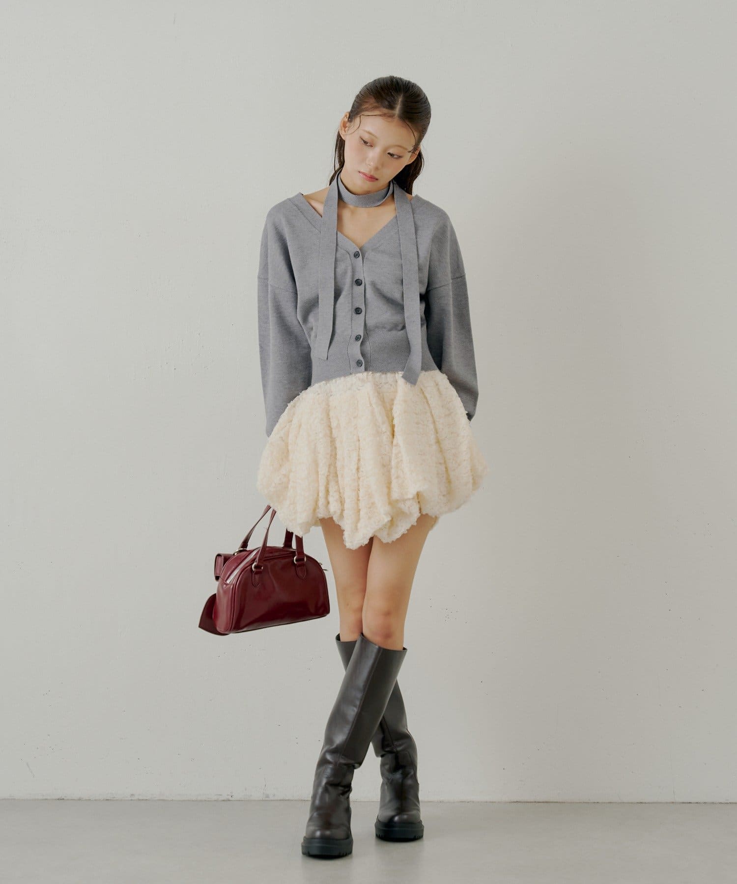 ・ミニボトムと相性抜群で、フェミニンなスタイルに仕上がります。