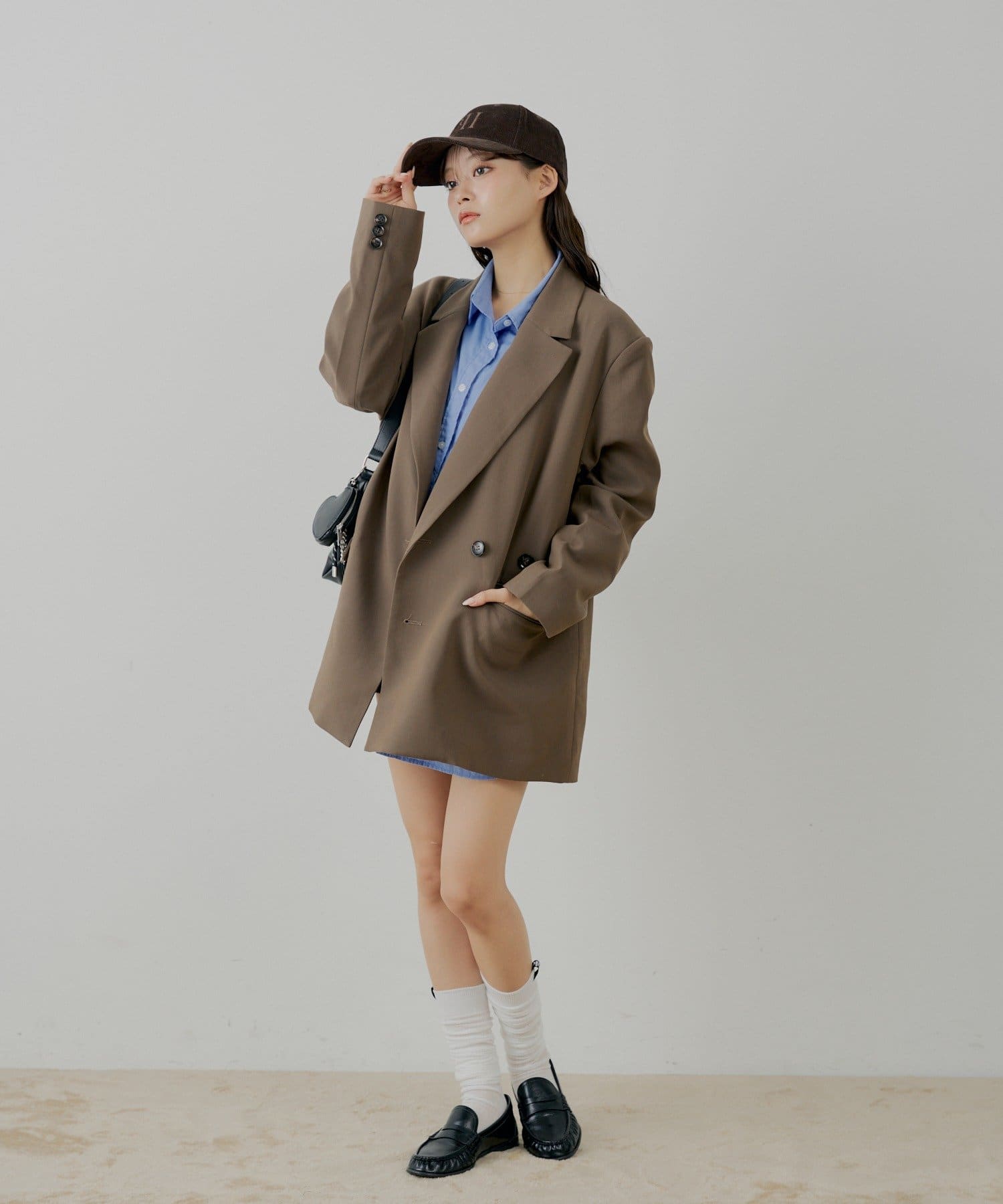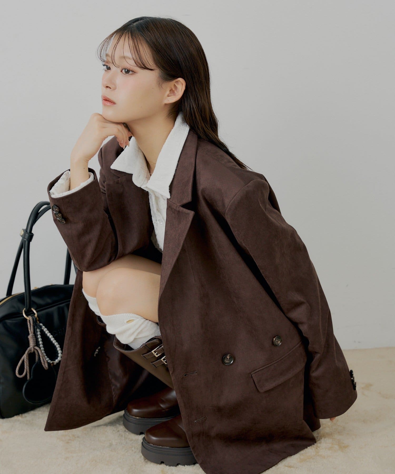・オーバーサイズシルエットがトレンド感をプラスするダブルジャケット。