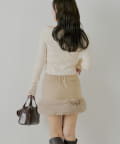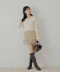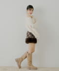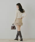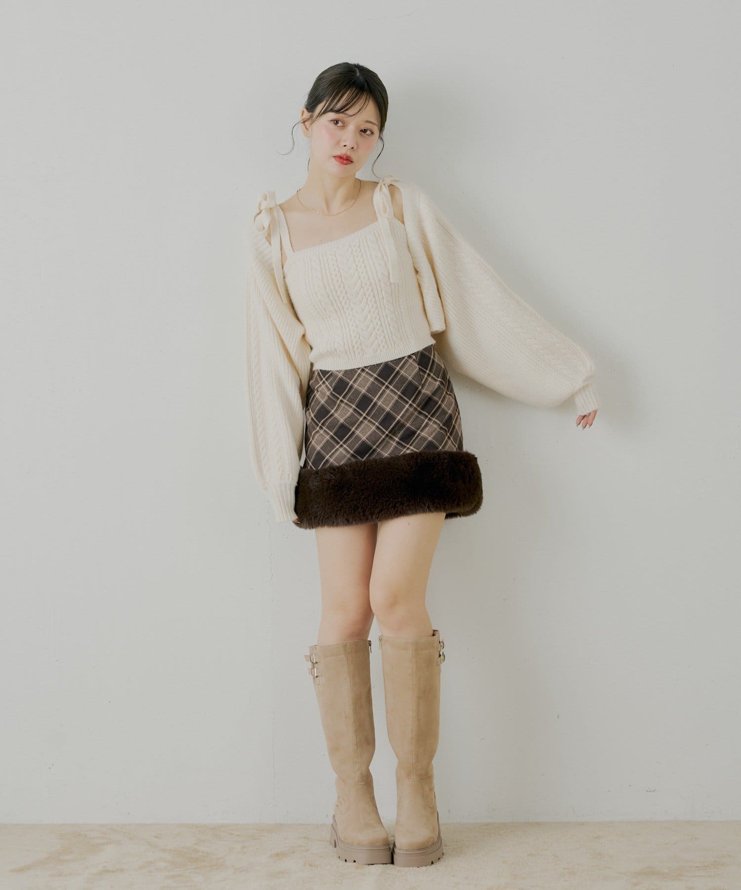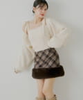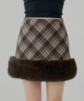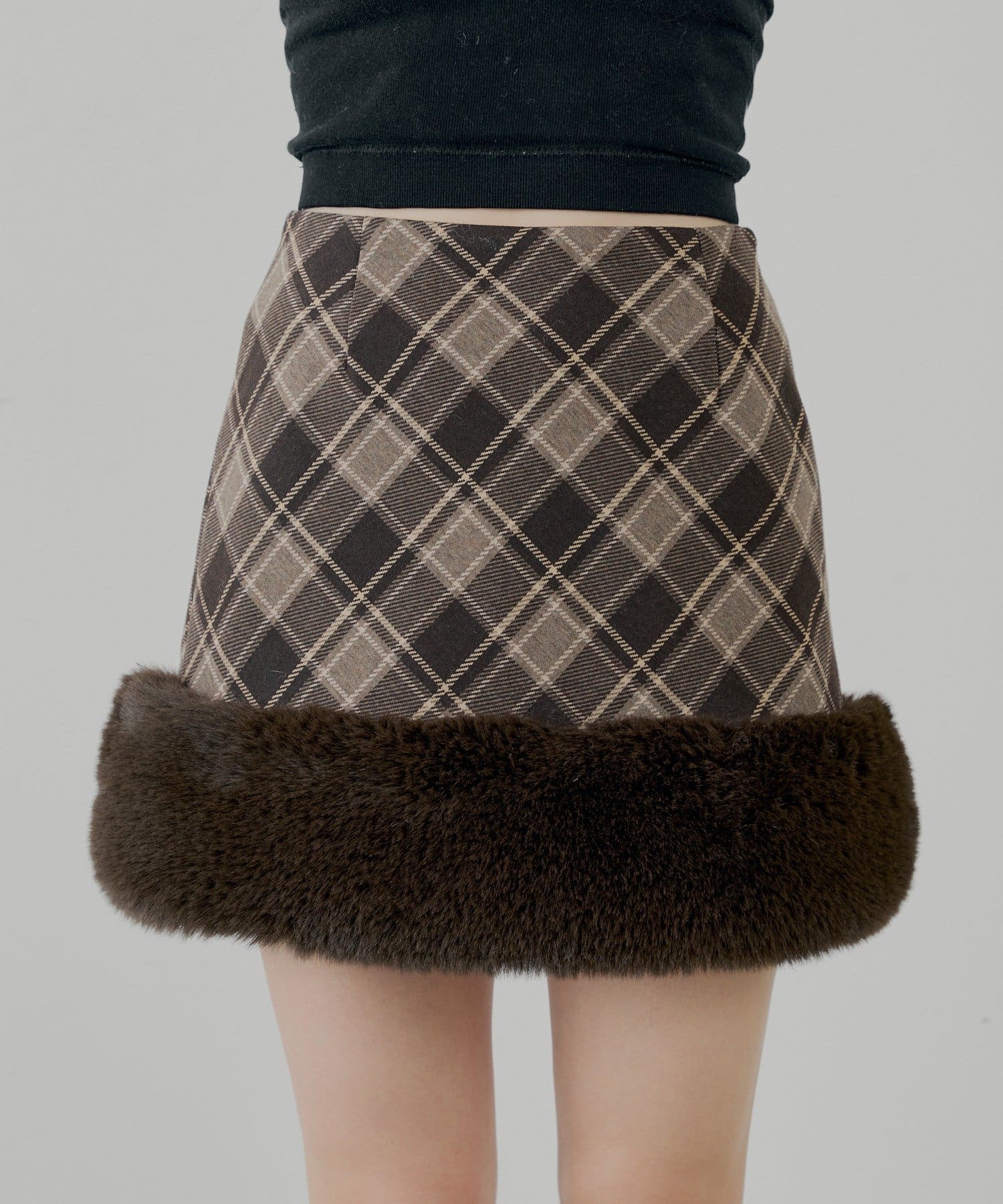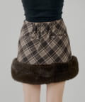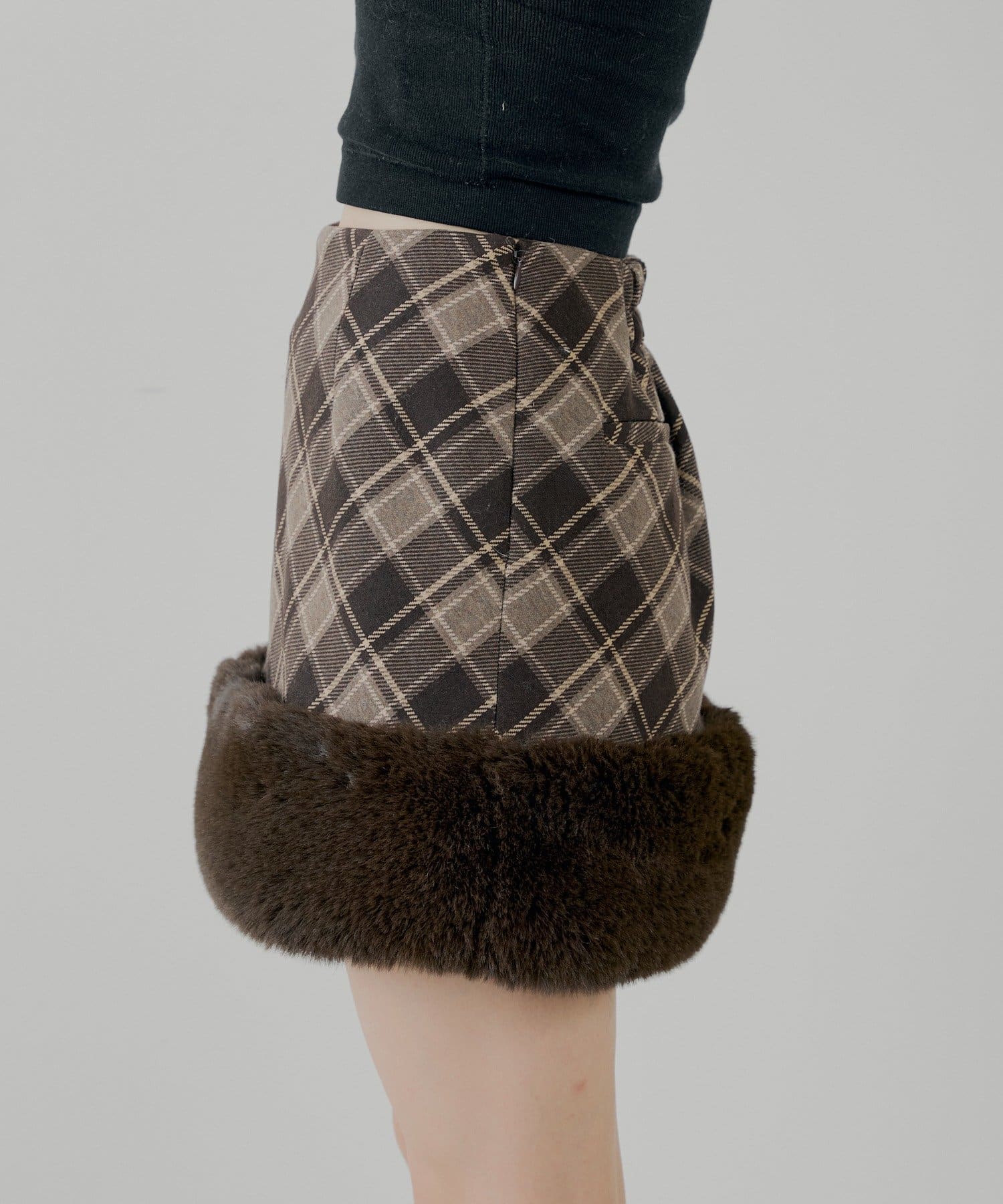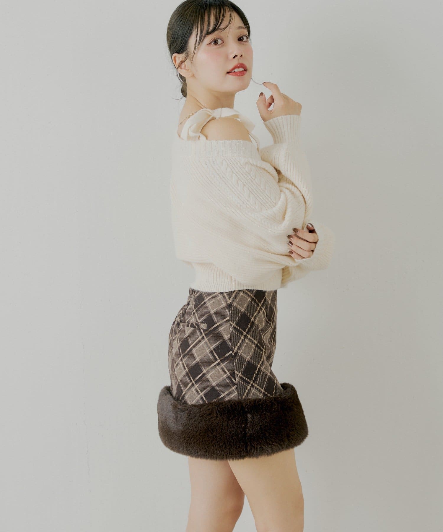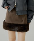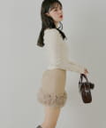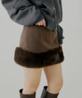 ・足元に視線を集める、ふわふわのファーが特徴的なミニスカート。