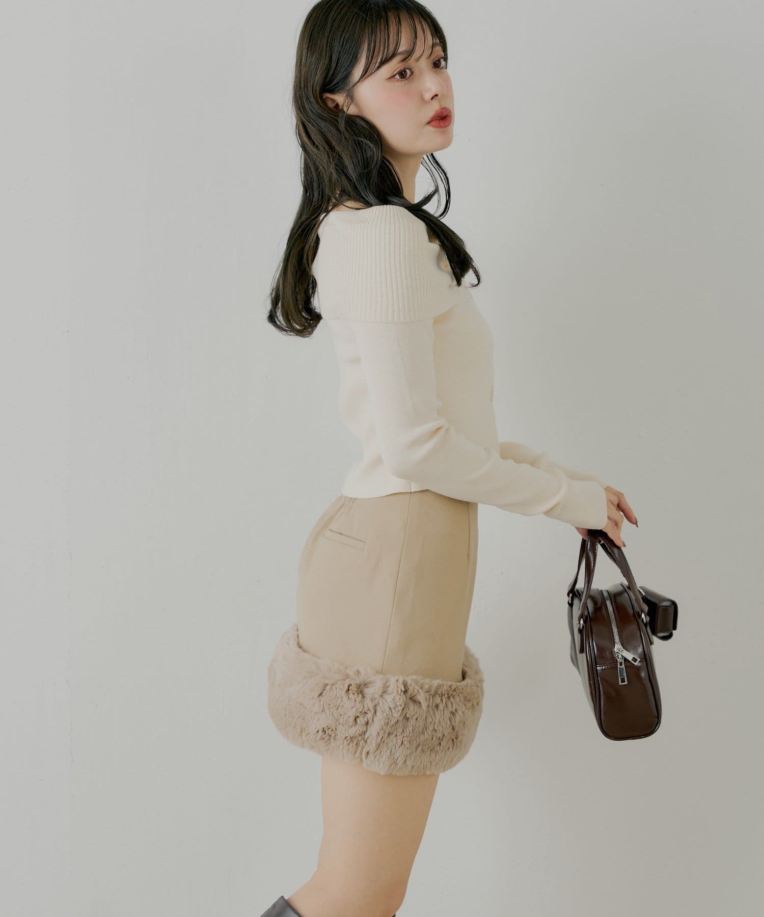 裾のふわふわのファーが目を惹くタイトミニスカート登場!