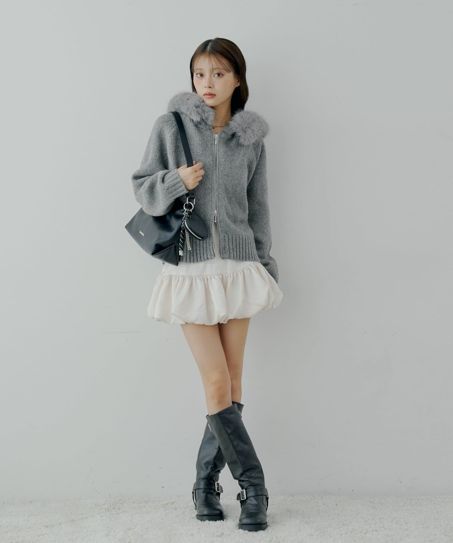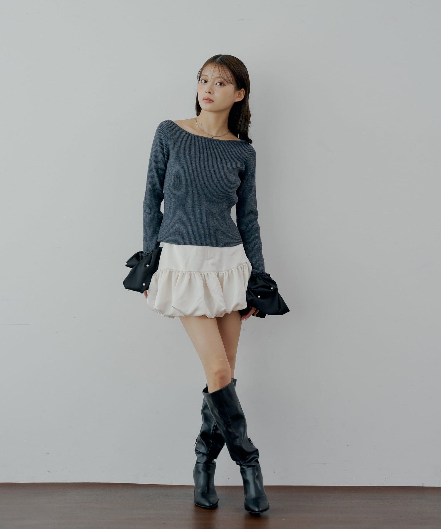 ・ロングブーツを合わせるとスタイルアップも叶い、おすすめです。
