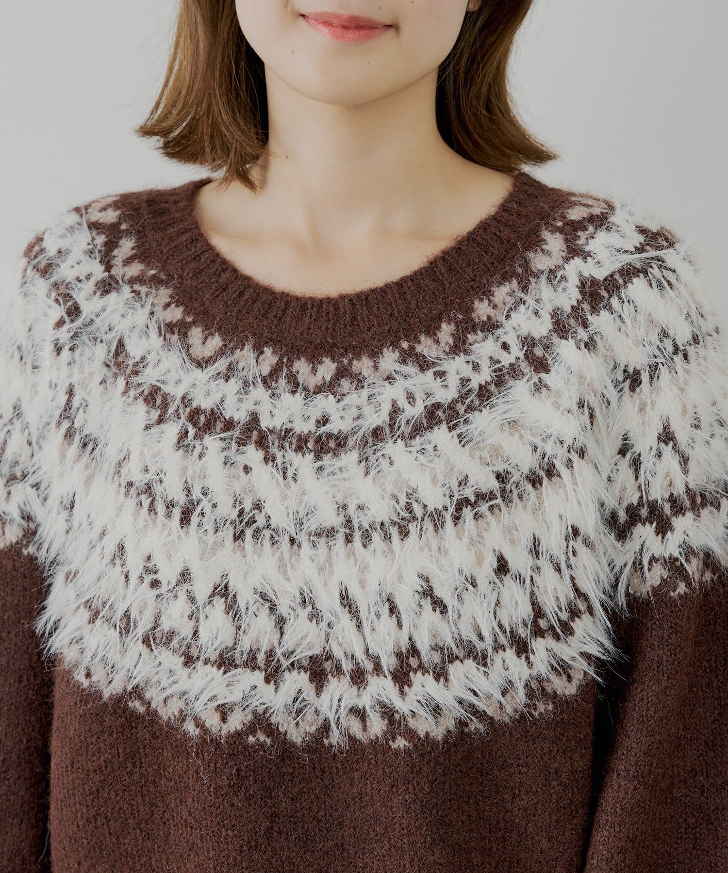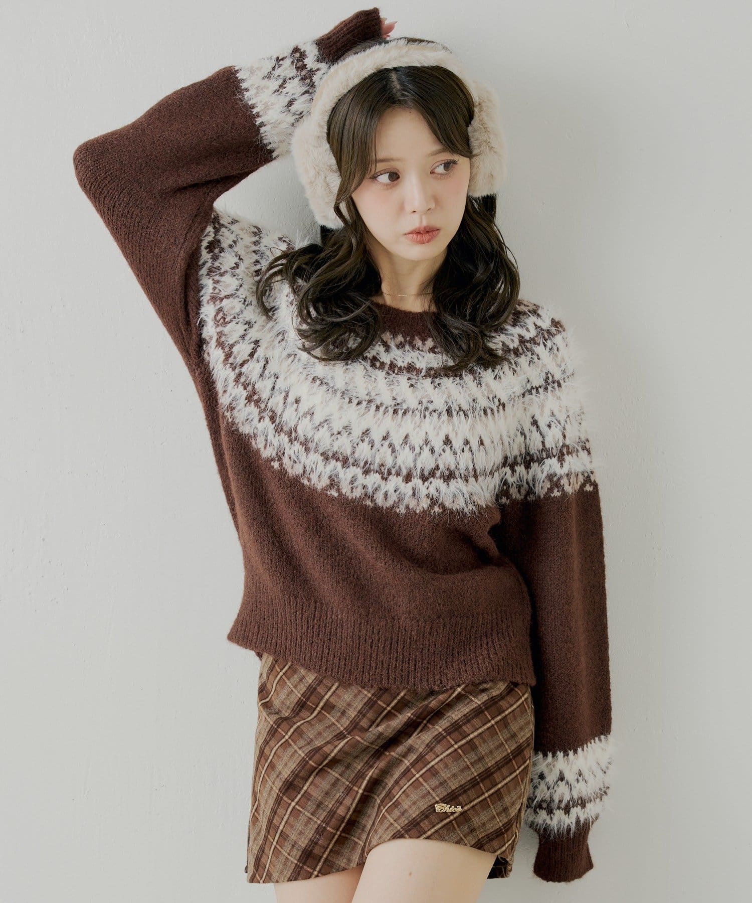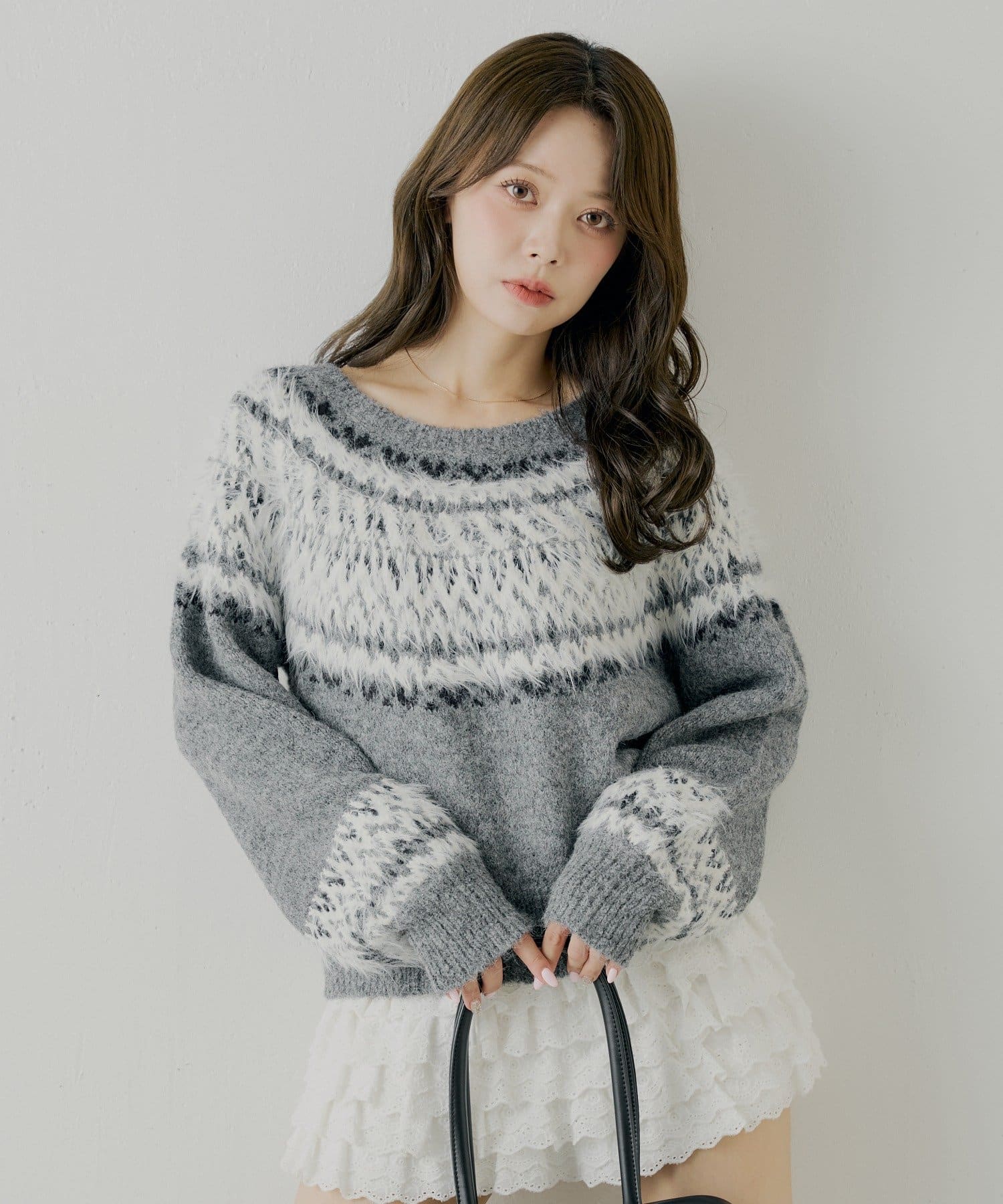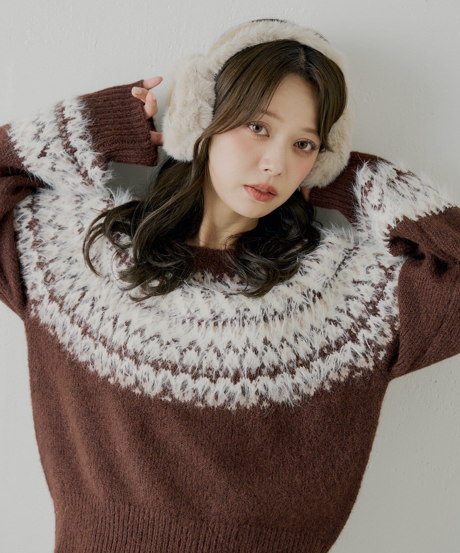 ・ふんわりと暖かな着心地が魅力の、ノルディック柄ルーズニット。