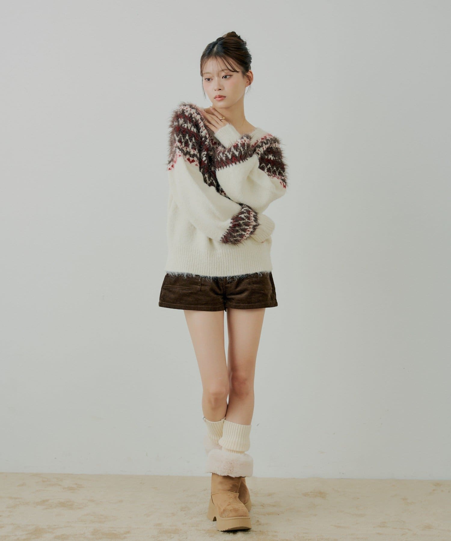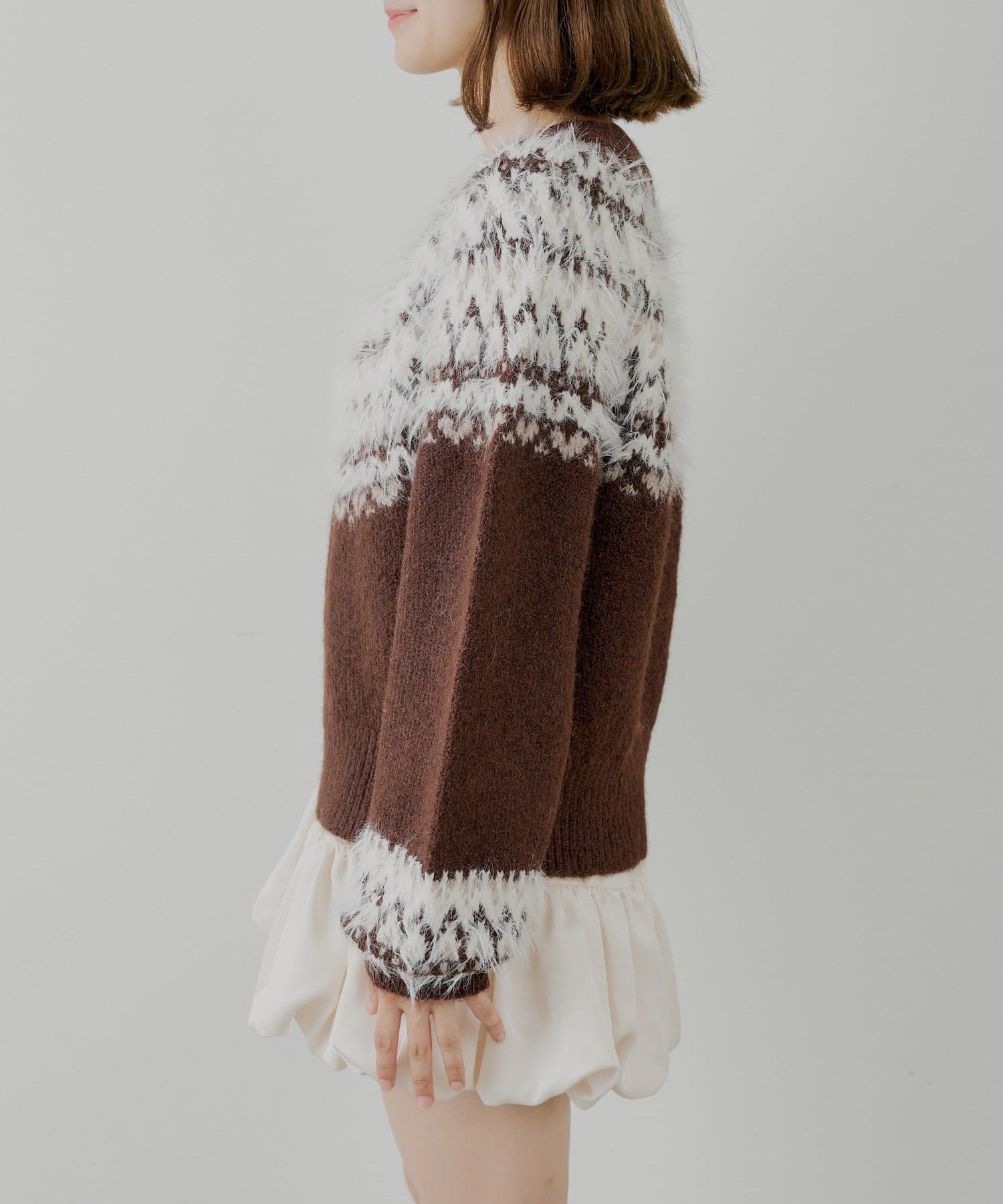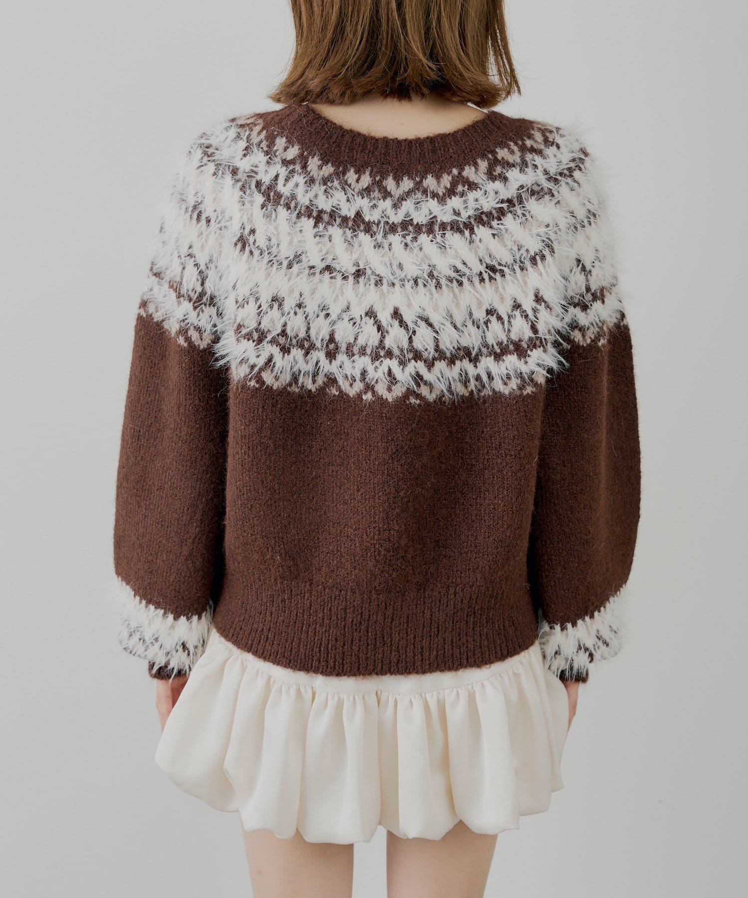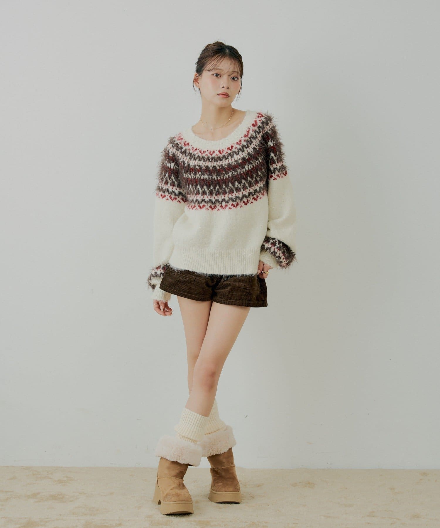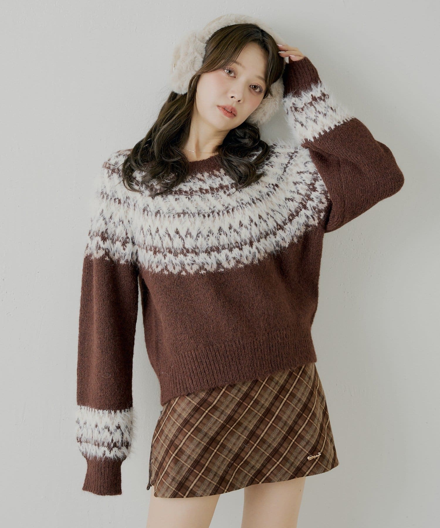 ・ふんわりと暖かな着心地が魅力の、ノルディック柄ルーズニット。