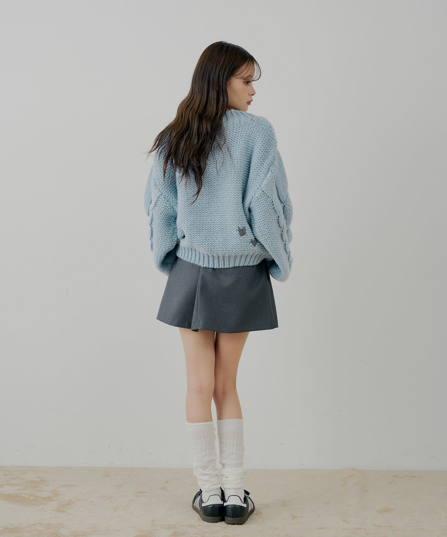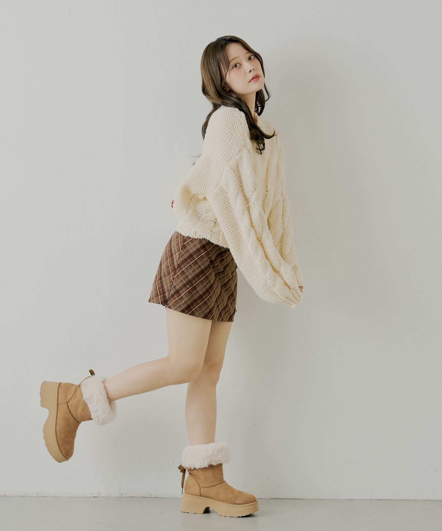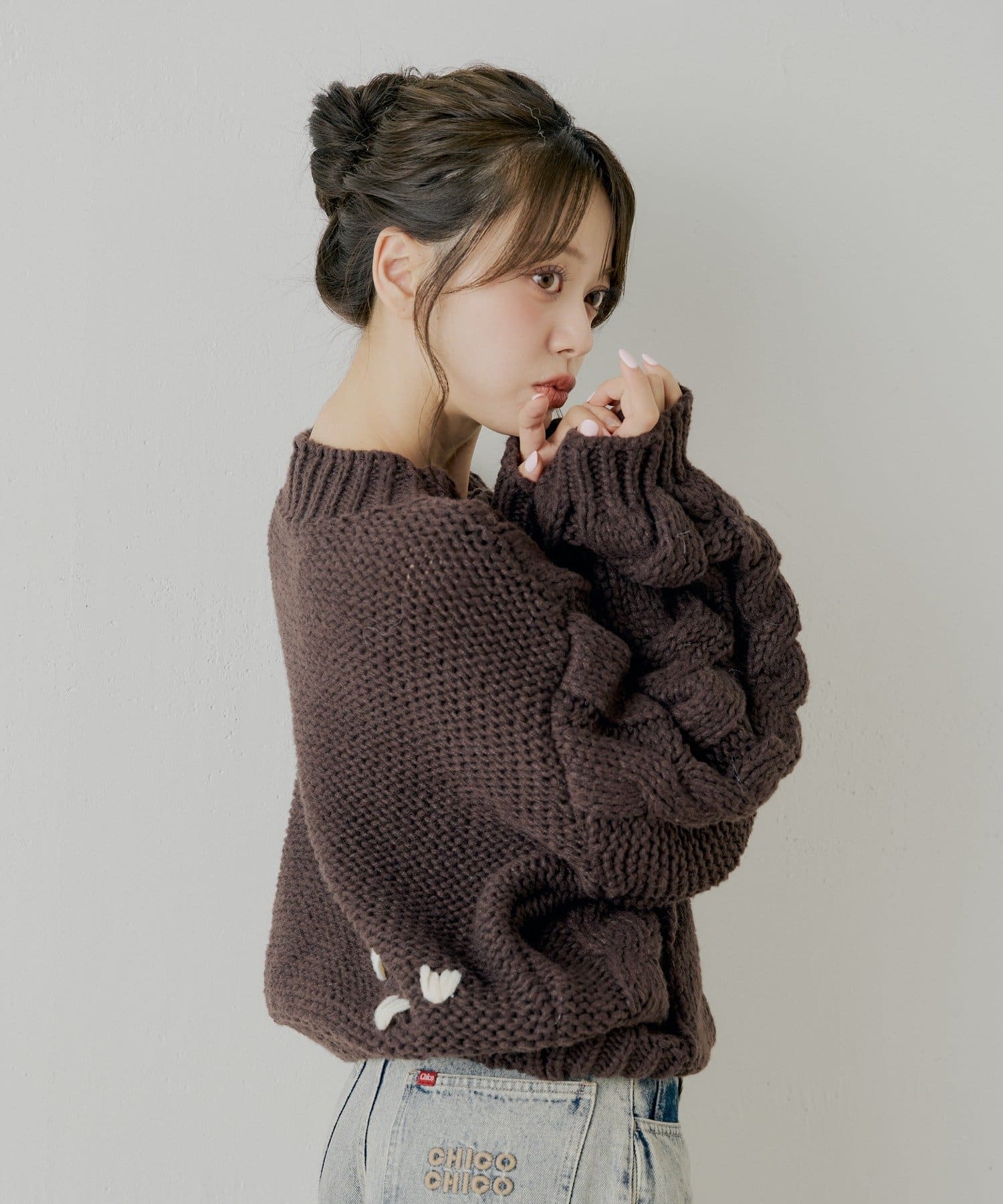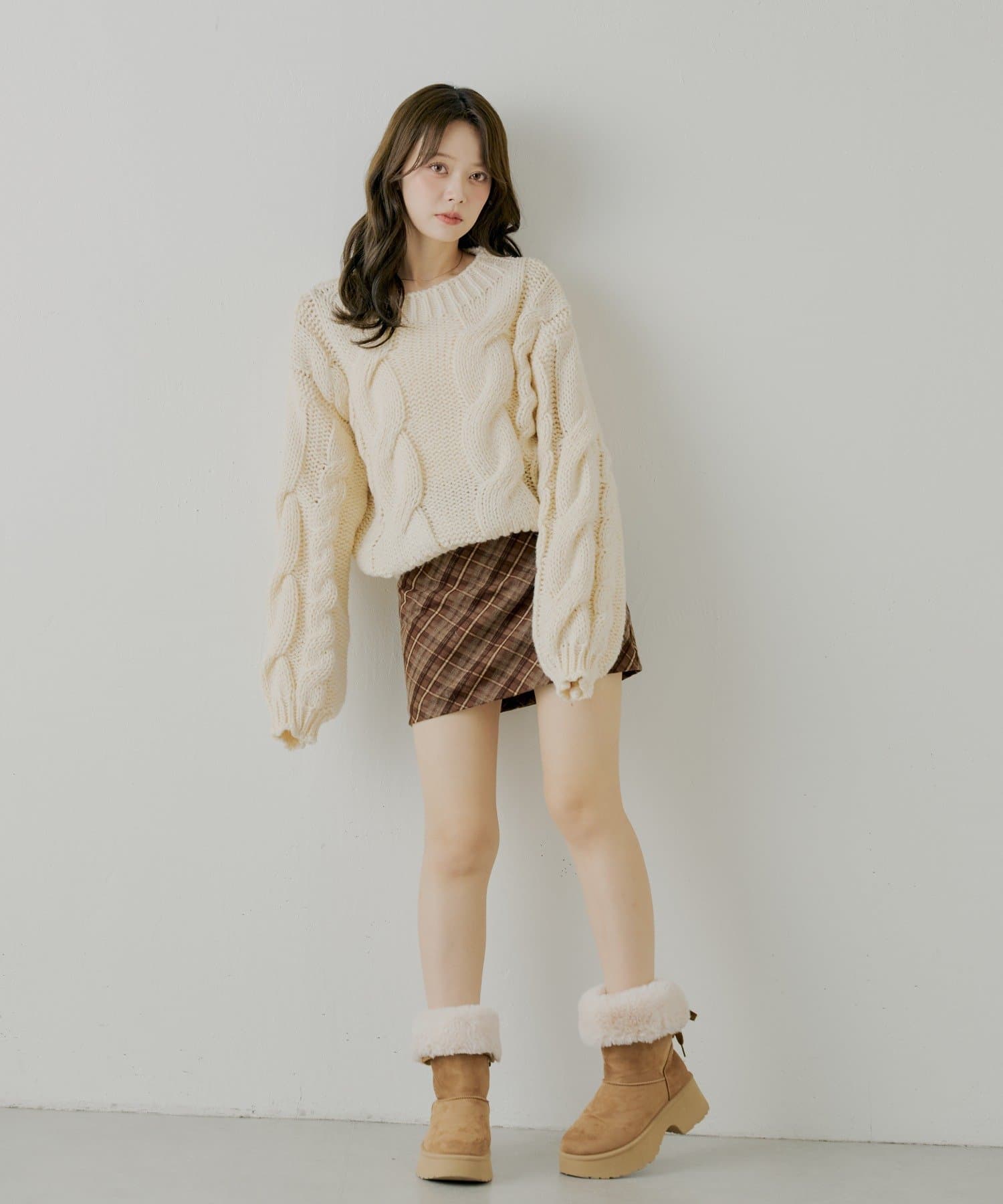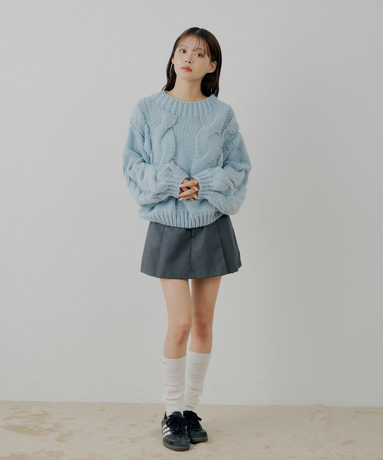 ・ふっくらとしたケーブル編みが目を惹くローゲージニットは、着るだけでトレンド感溢れるスタイリングに。