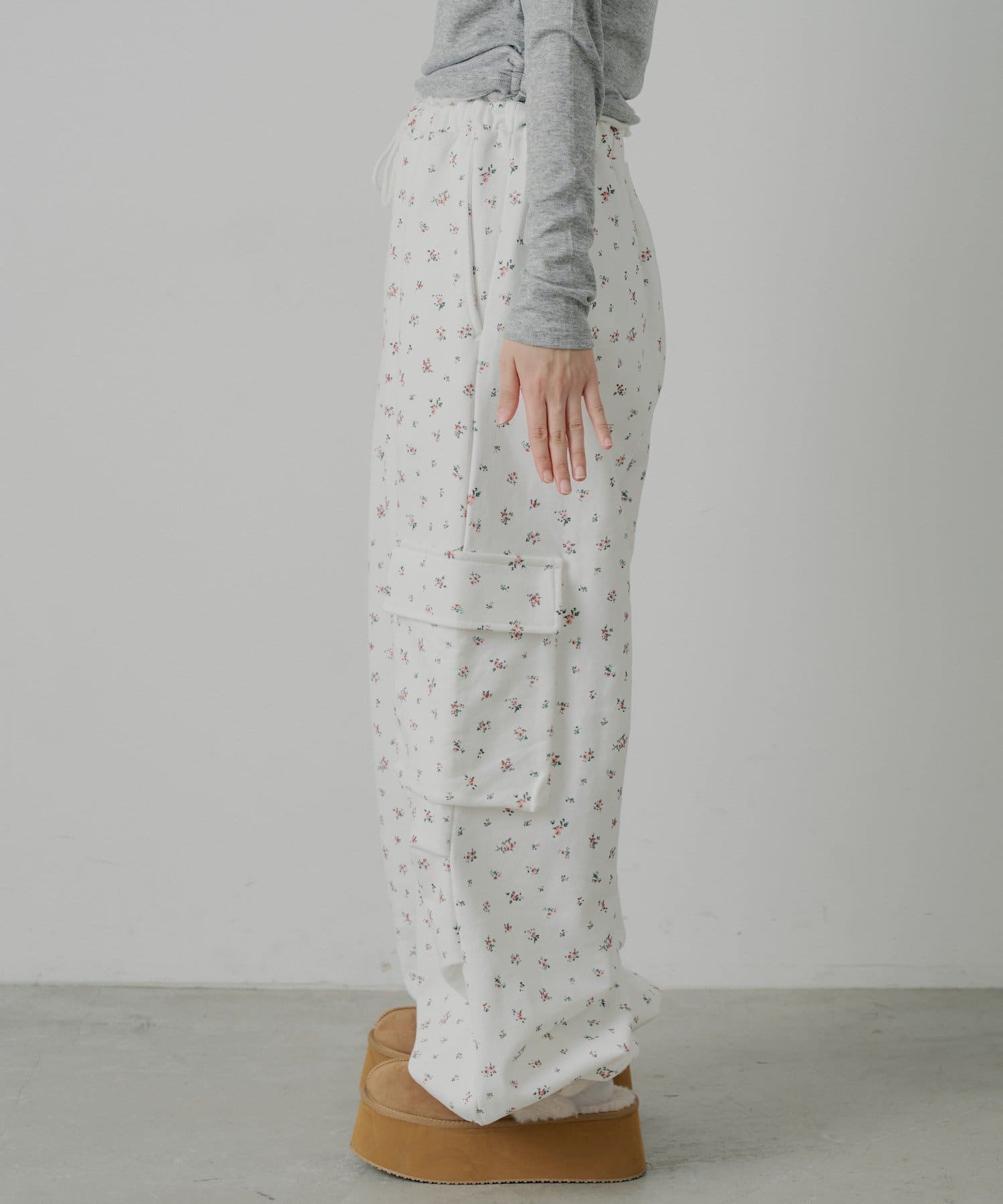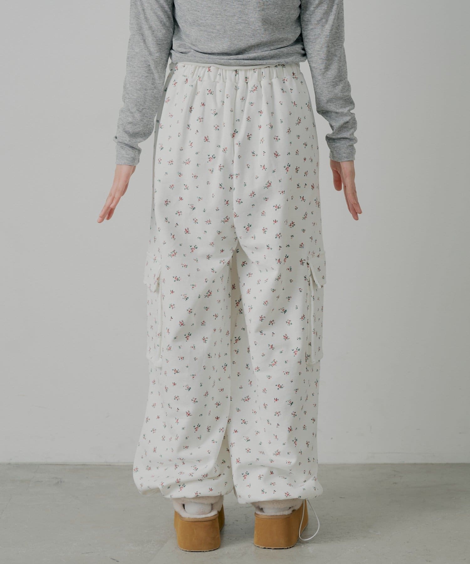 ・繊細なレースをあしらった花柄デザインは、カジュアルなカーゴパンツにフェミニンなエッセンスをプラス。