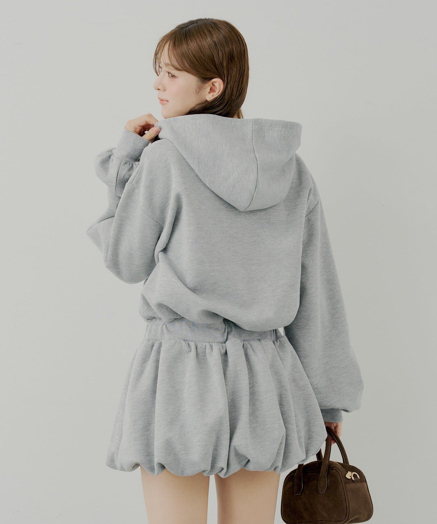 ゆったりとしたシルエットと、裾のバルーンデザインが魅力のスウェットワンピース