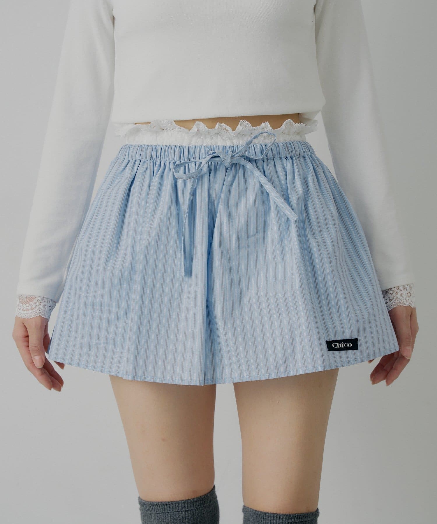 TOP > Chico > レディース > スカート > スカート > 【セットアップ対応】レースレイヤードフレアミニスカート