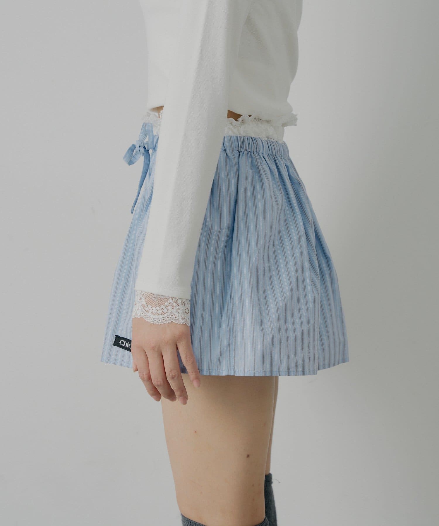 ・ウエストはゴム仕様で、ストレスフリーな着心地です。リボンで調節も可能です。
