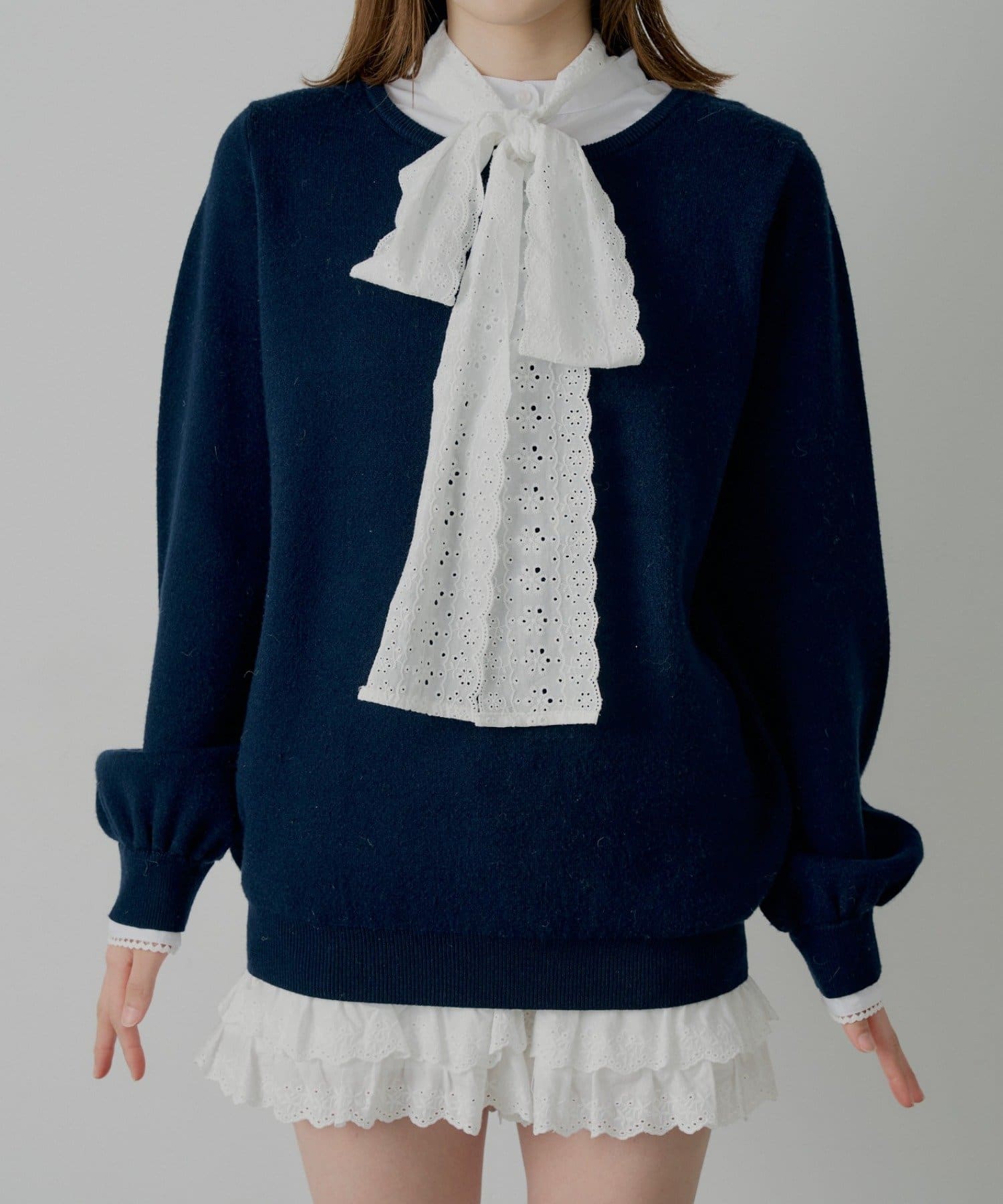 ボウタイブラウスドッキングニット