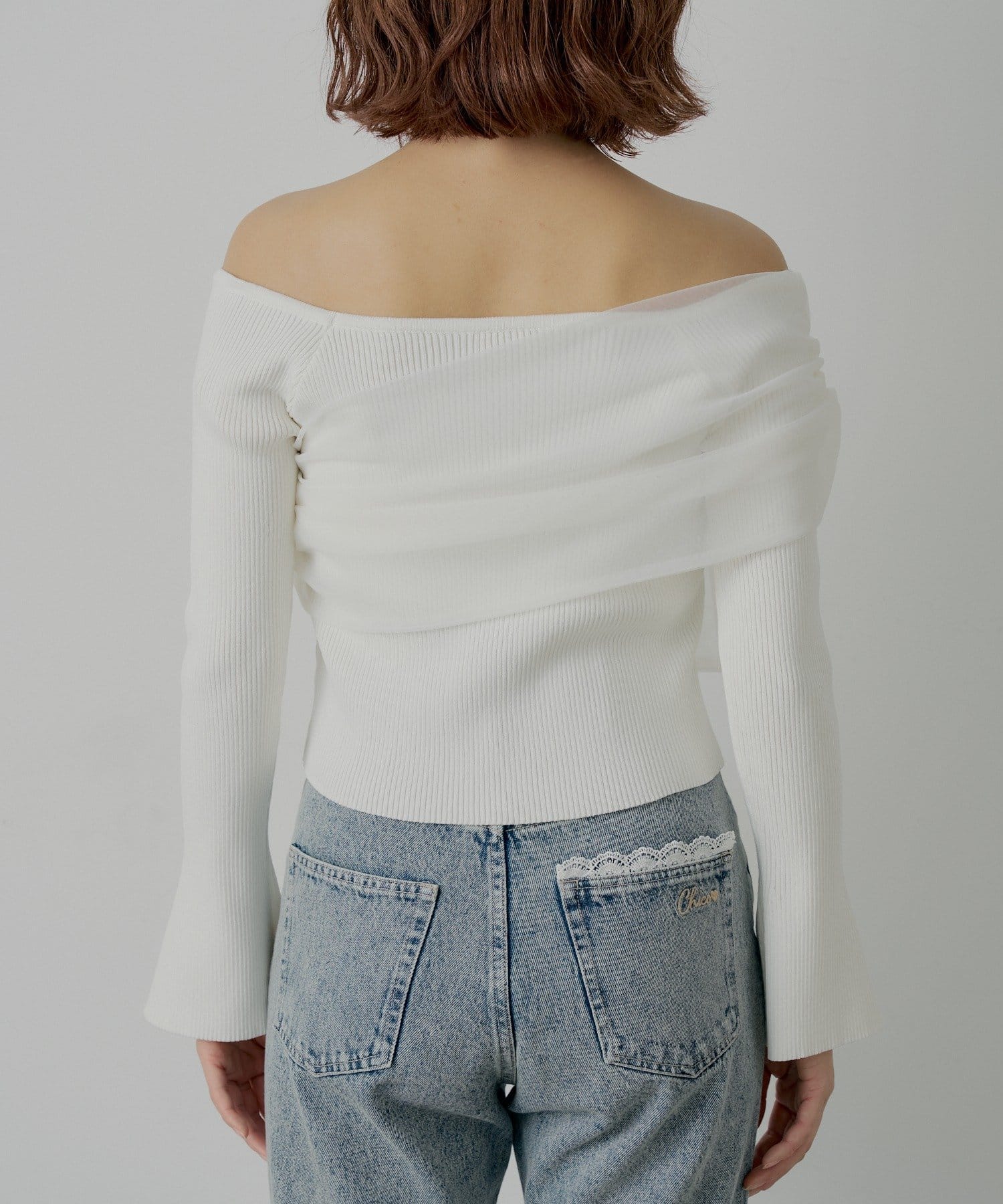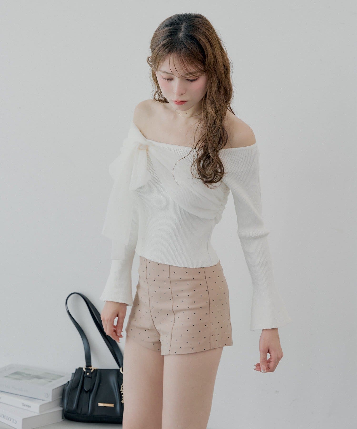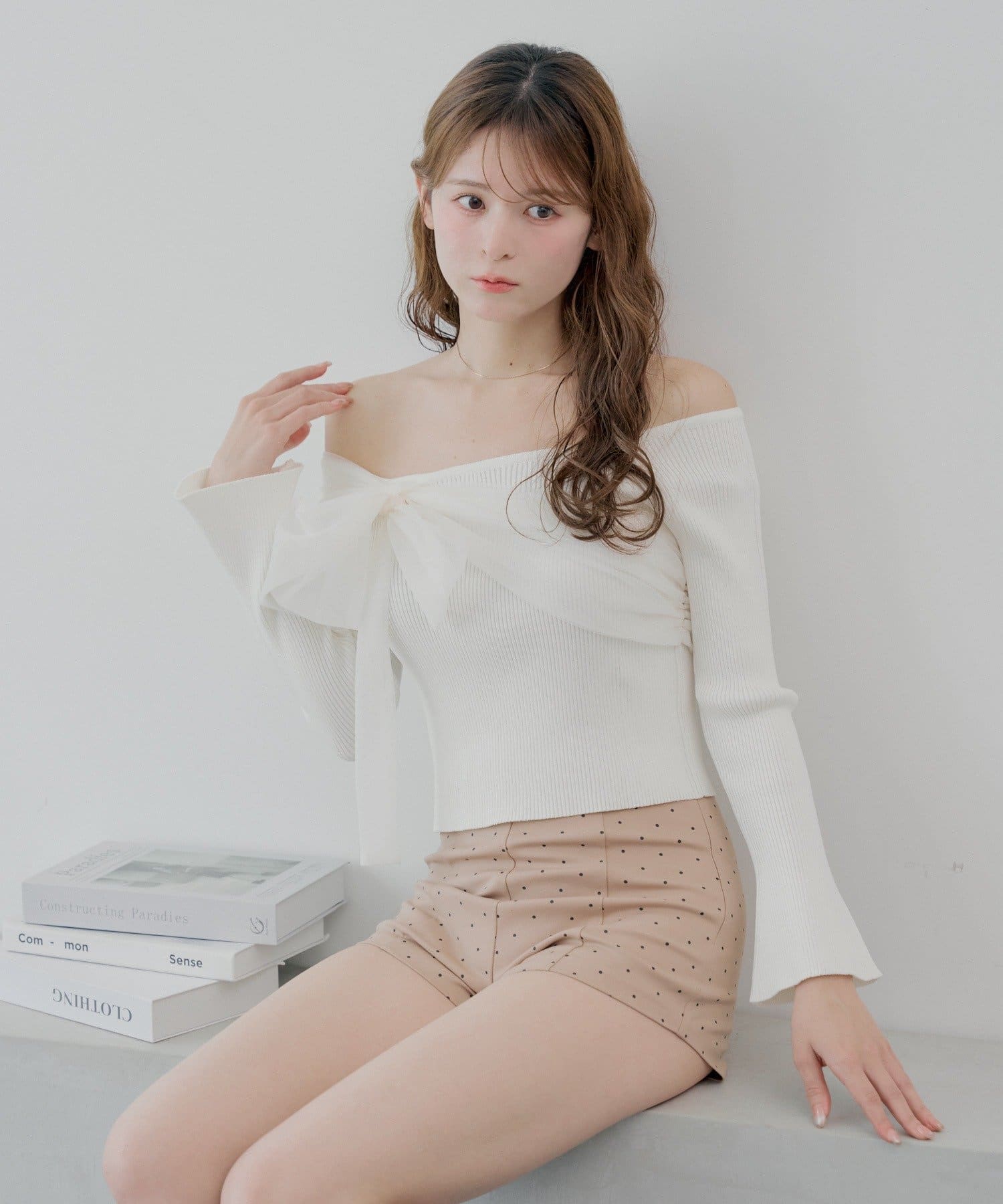 ・オフショルダーデザインがデコルテを美しく見せ、女性らしさを引き立てます。