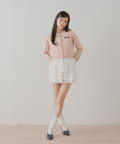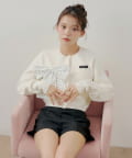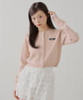 ・胸元のロゴとリボンが目を惹く、コンパクトニットカーディガン。